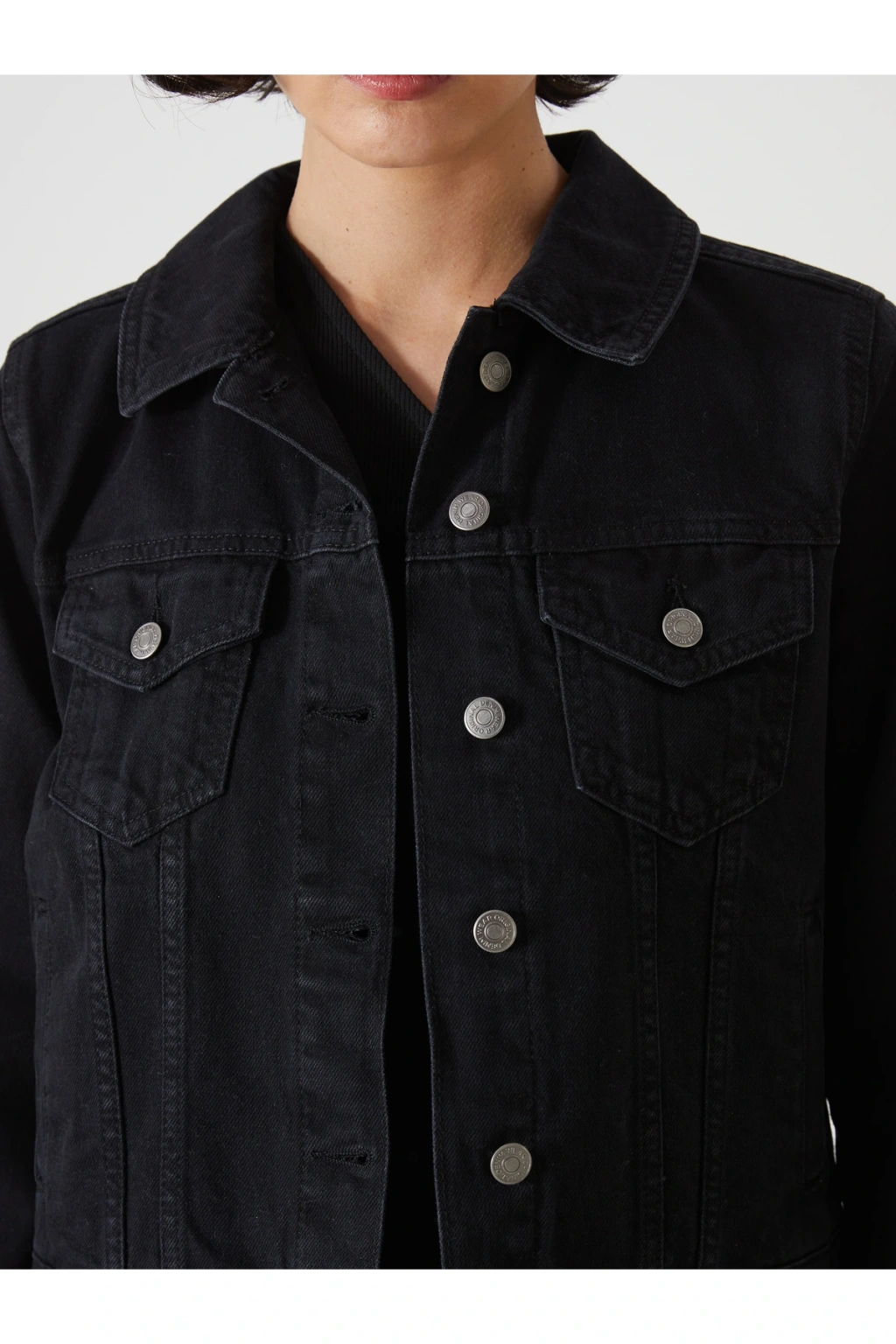 Gömlek yaka düz uzun kollu jean ceket, önden düğme kapamalıdır.; Kapaklı çift cepli tasarımı kullanışlı bir detay sunar.; Dayanıklı denim kumaştan üretilen jean ceket zor kırışan yapısı sayesinde ütü işlemi gerektirmez.; , Denim giysilerinizin ömrünü uzatmak için daima düşük sıcaklıkta ters çevirerek ve benzer renklerle yıkayın; bu sayede rengini ve kumaşın yapısını korurken enerji tüketimini de azaltmaya yardımcı olabiliriz.