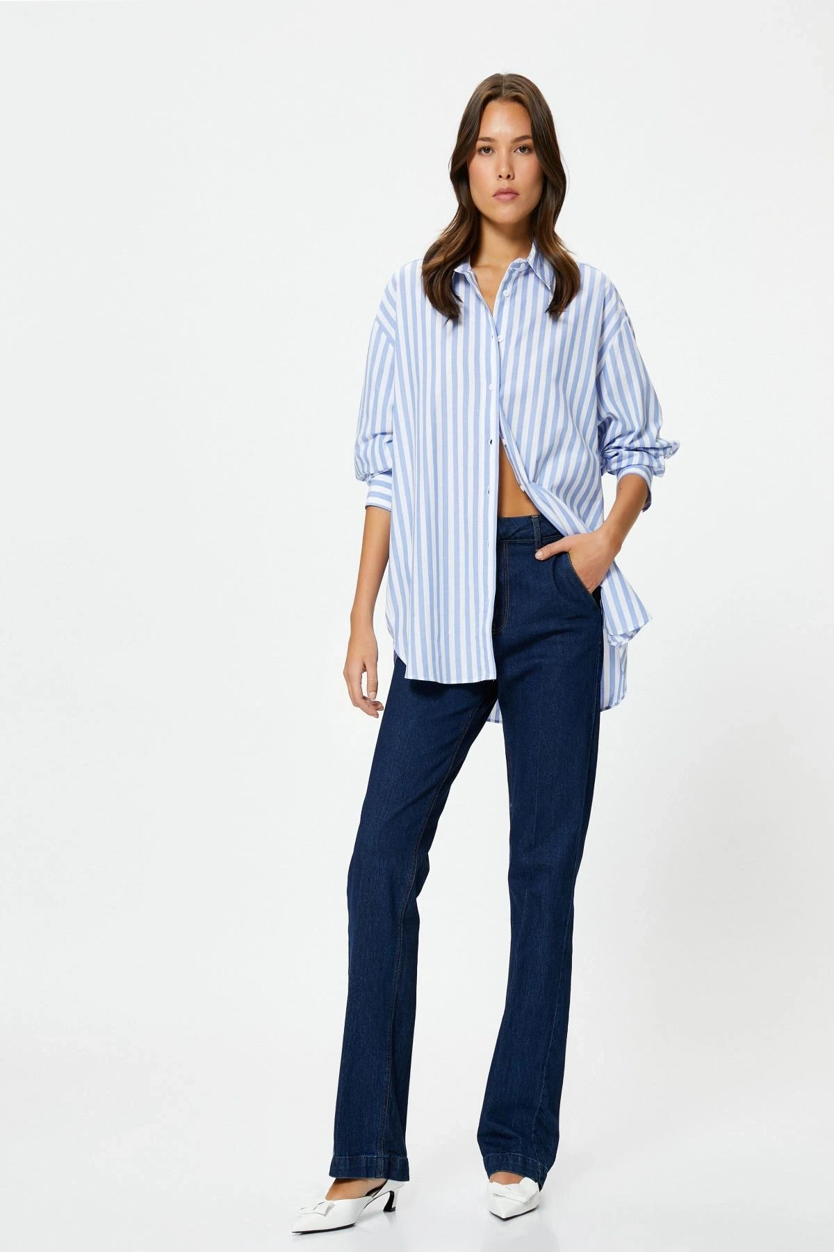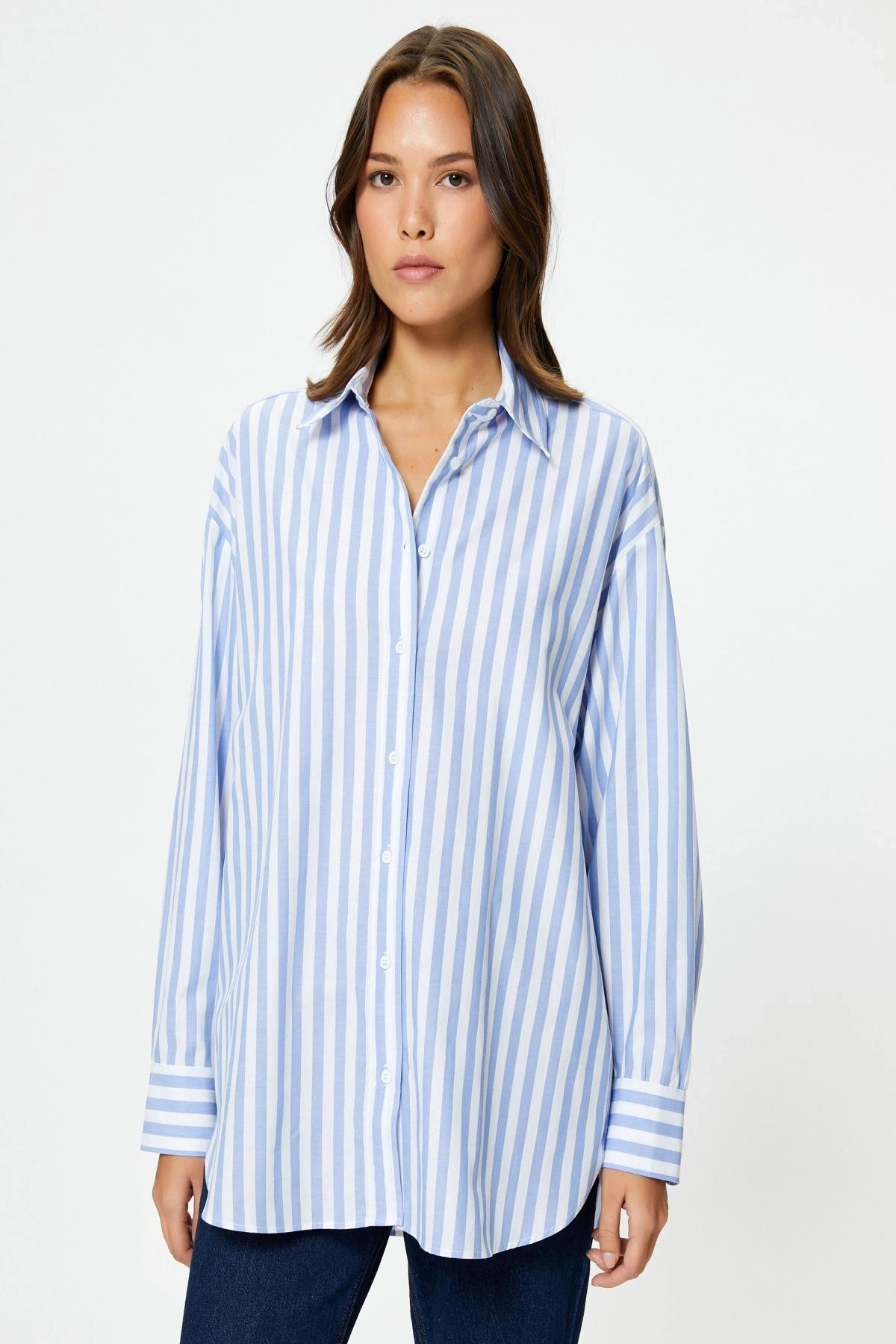 Kadın Mavi Çizgili Gömlek