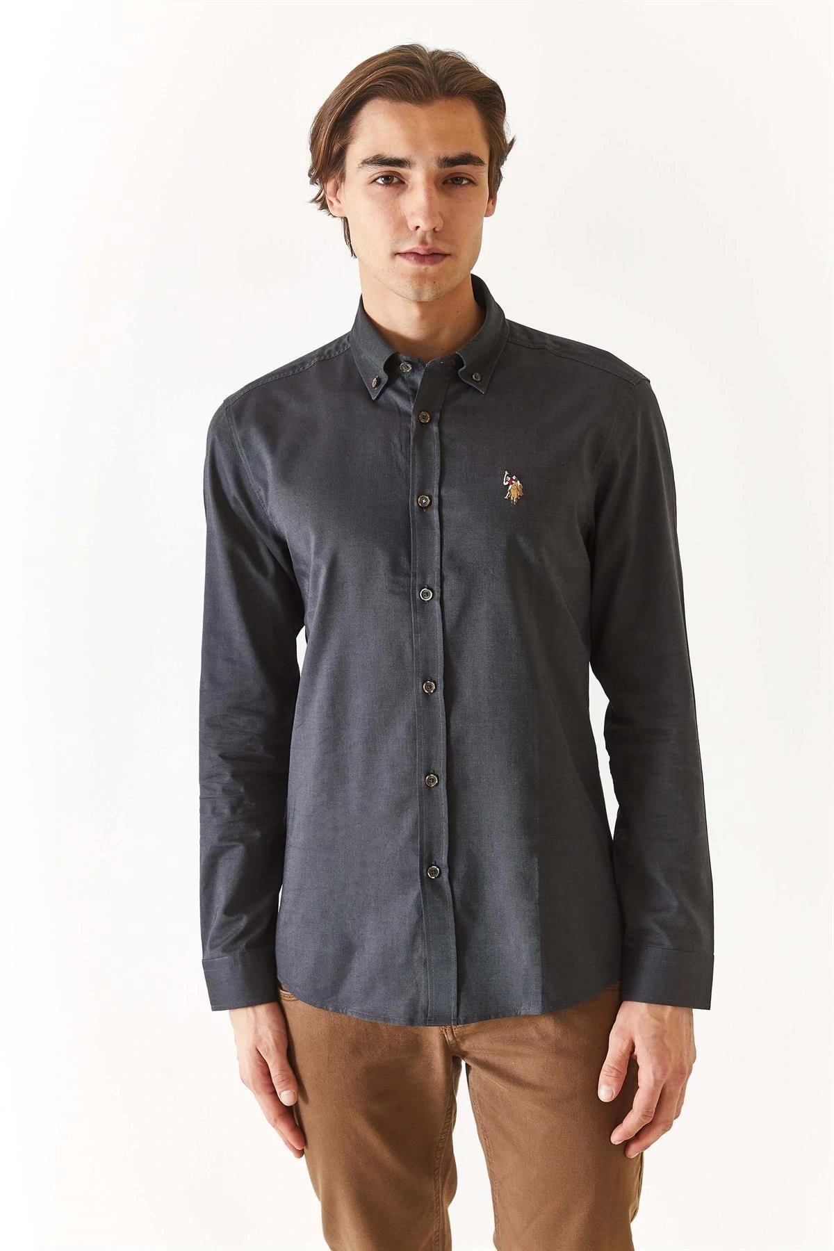 U.S. Polo Assn. Comfort Fit Düğmeli Yaka Lacivert Erkek Gömlek REGGAR