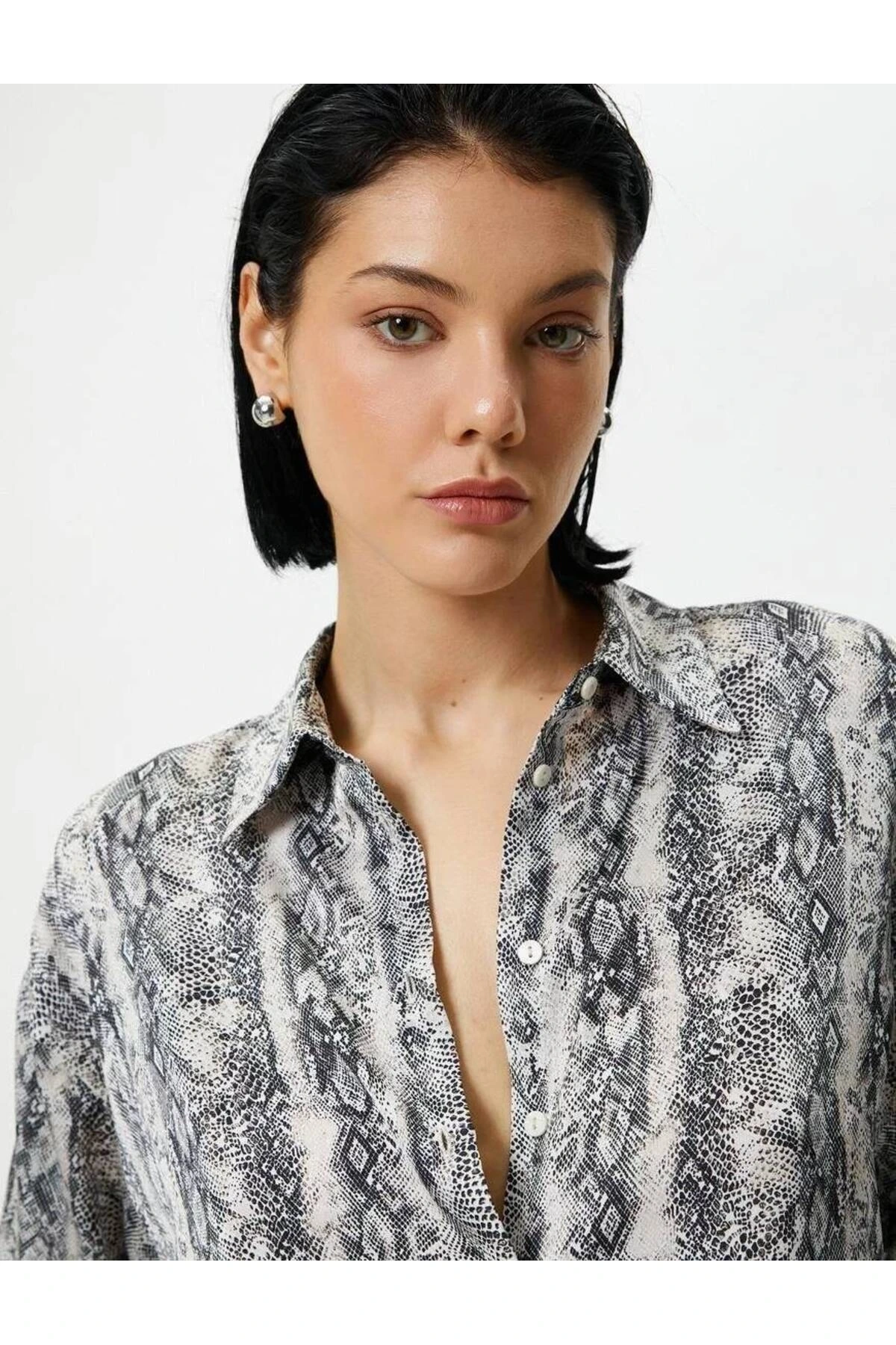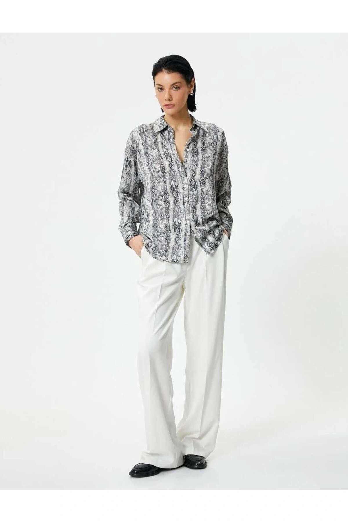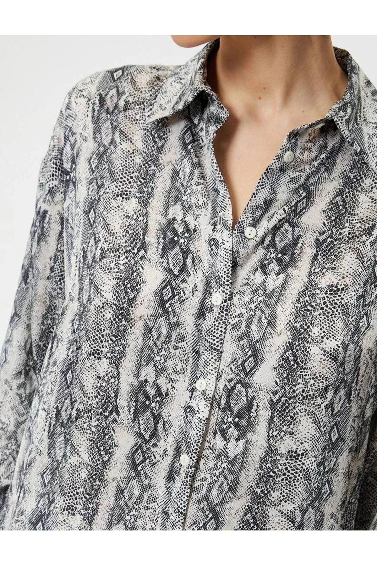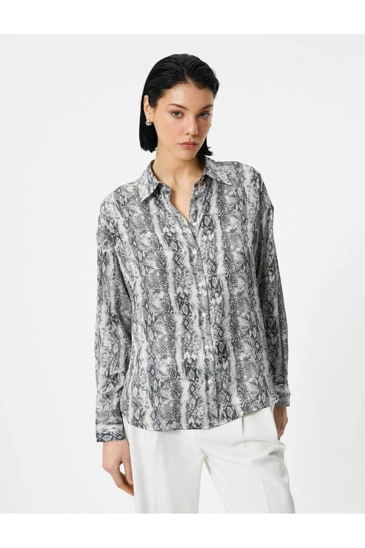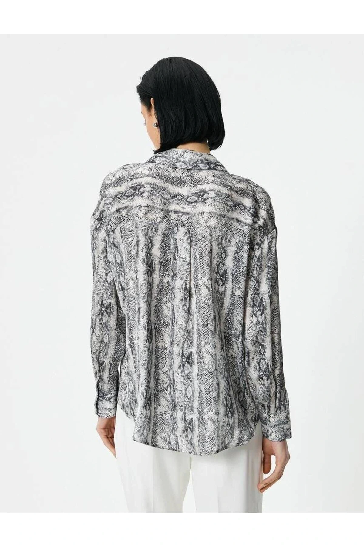 4sak60243uw Kadın Uzun Kol Gömlek Siyah Desenli