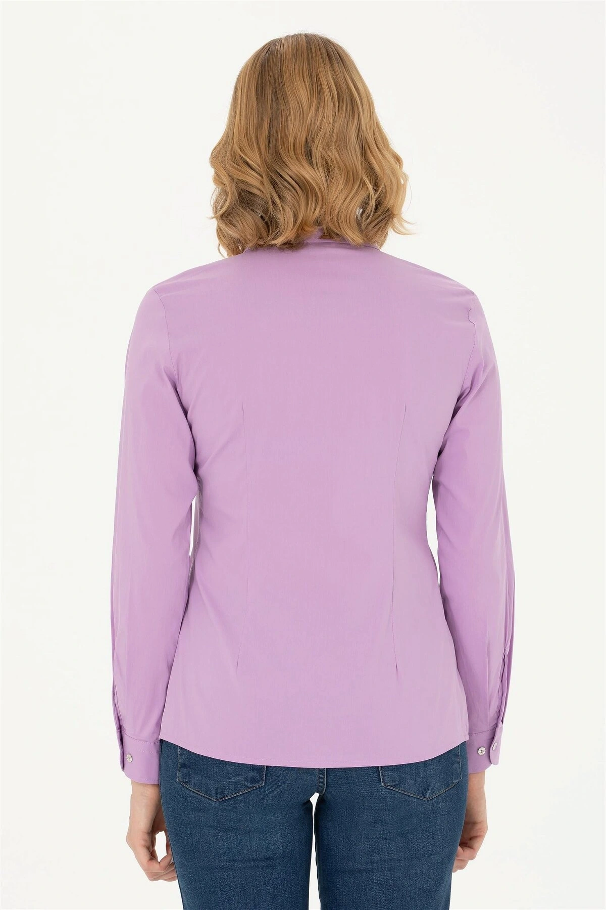 Kadın Lila Uzun Kollu Basic Gömlek
