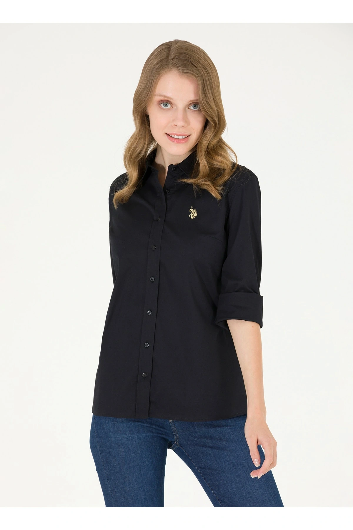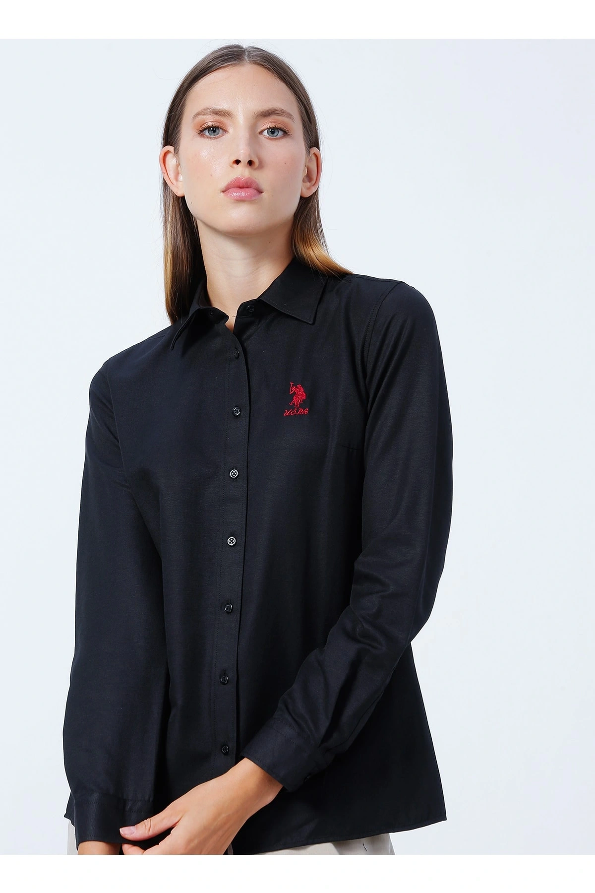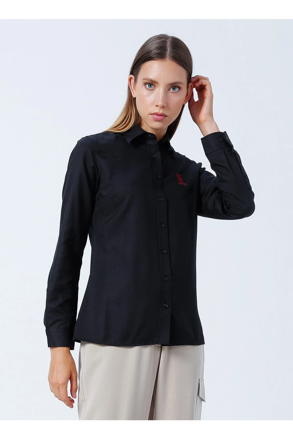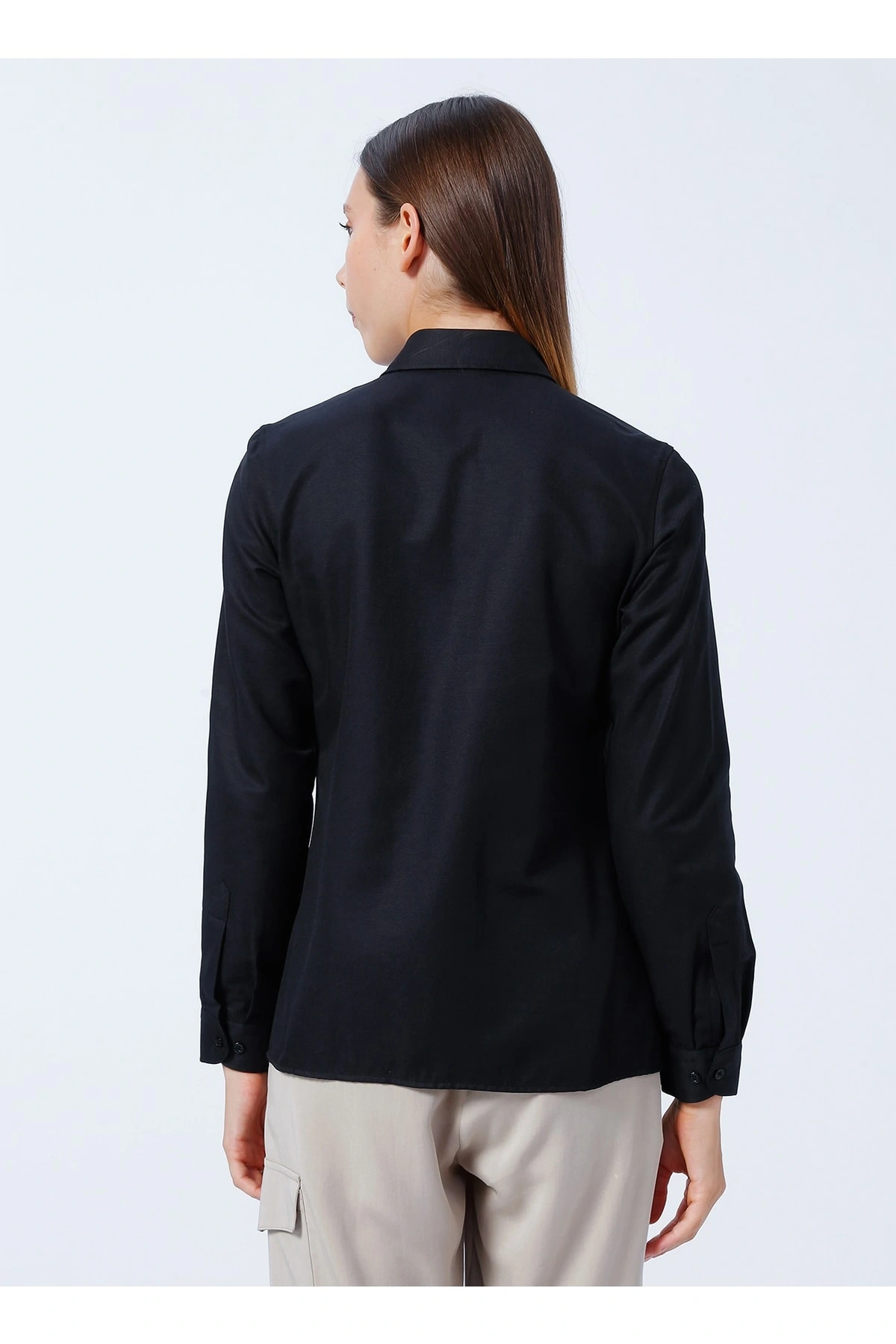 Gömlek Yaka Düz Siyah Kadın Gömlek Wox022k