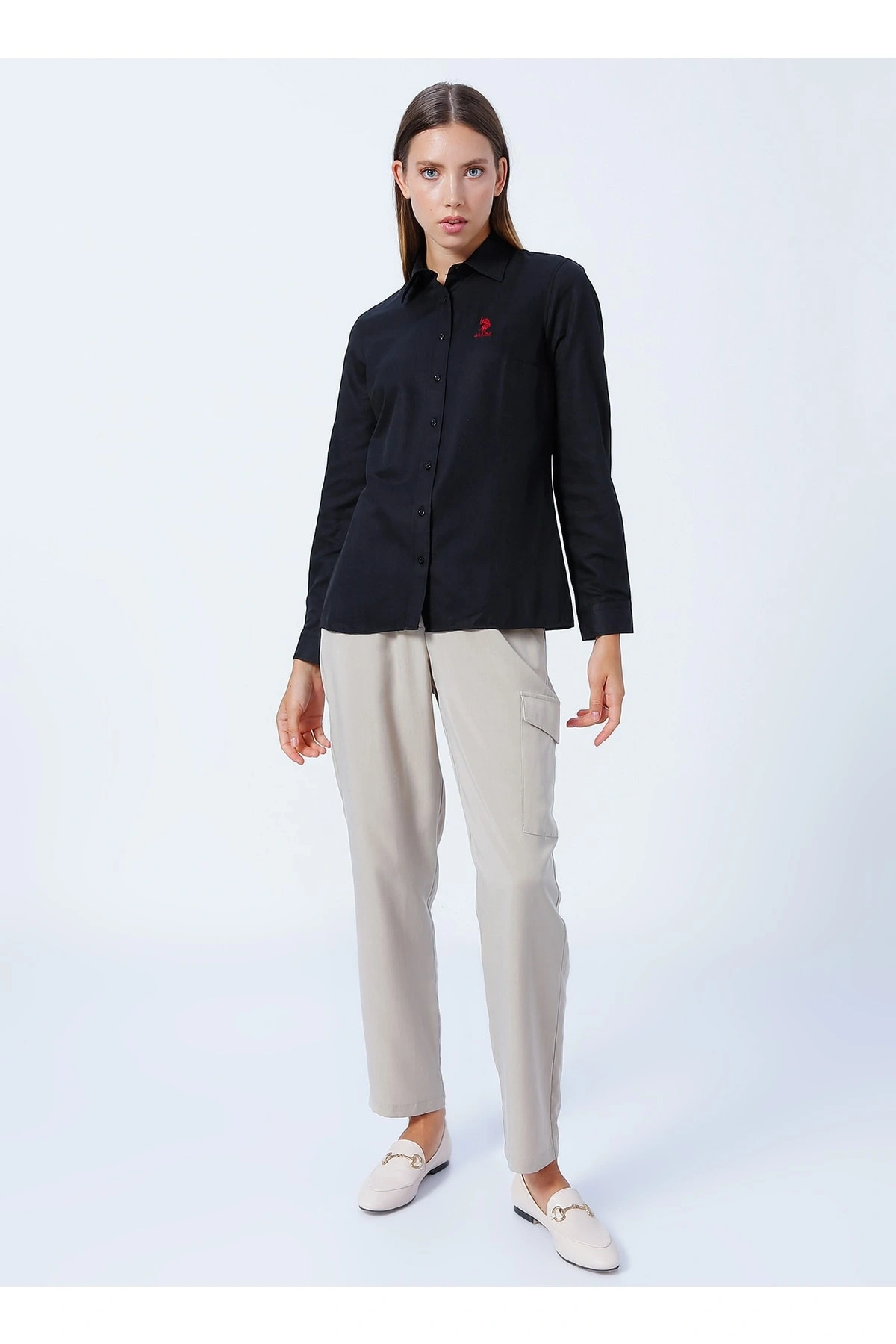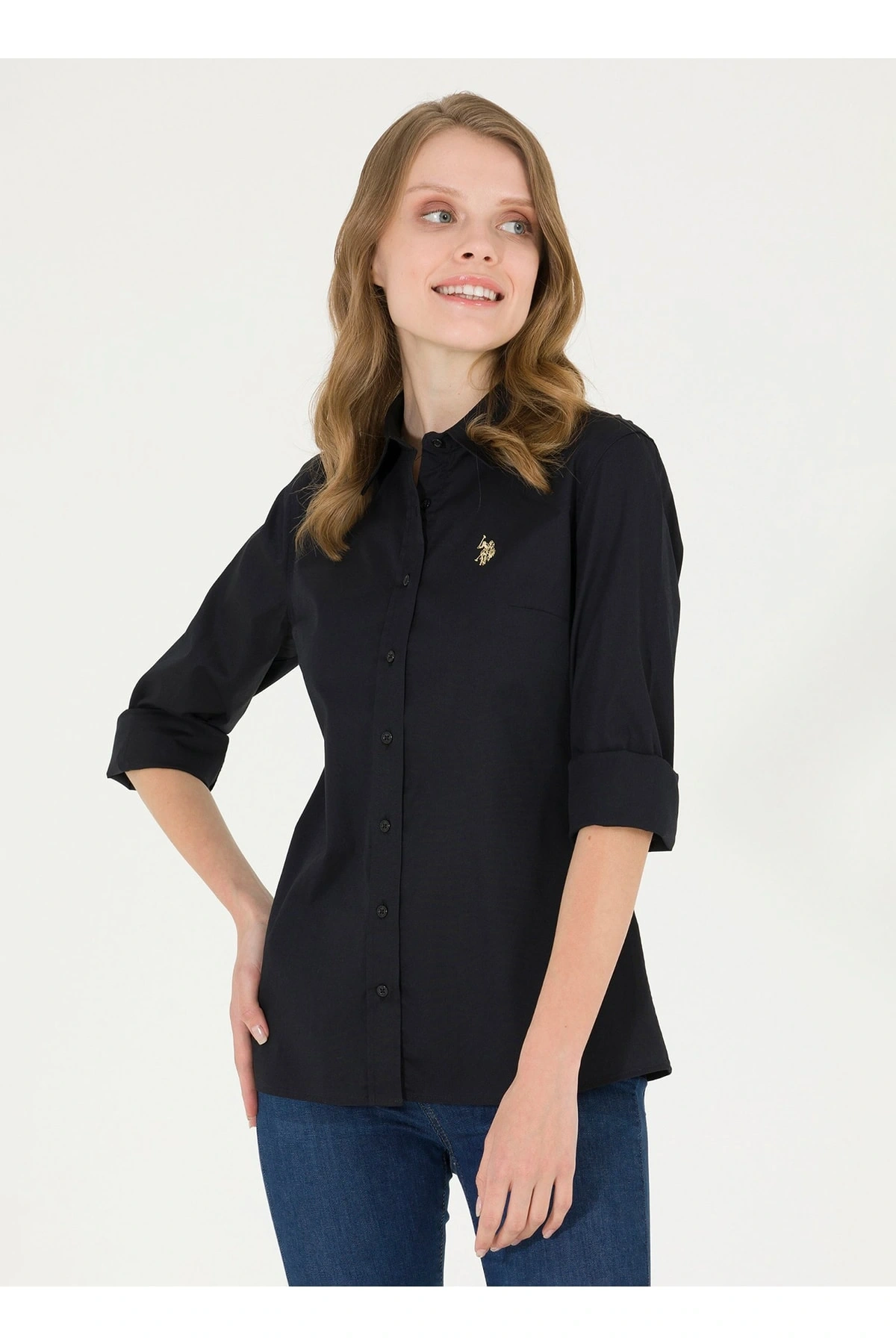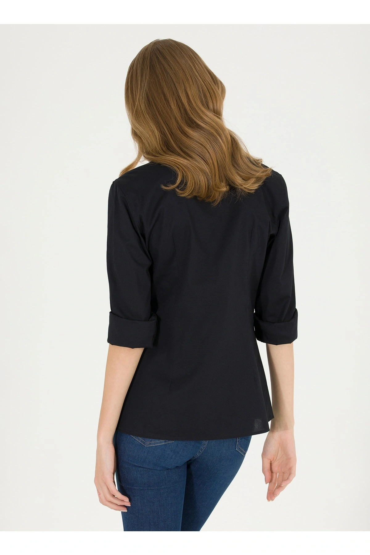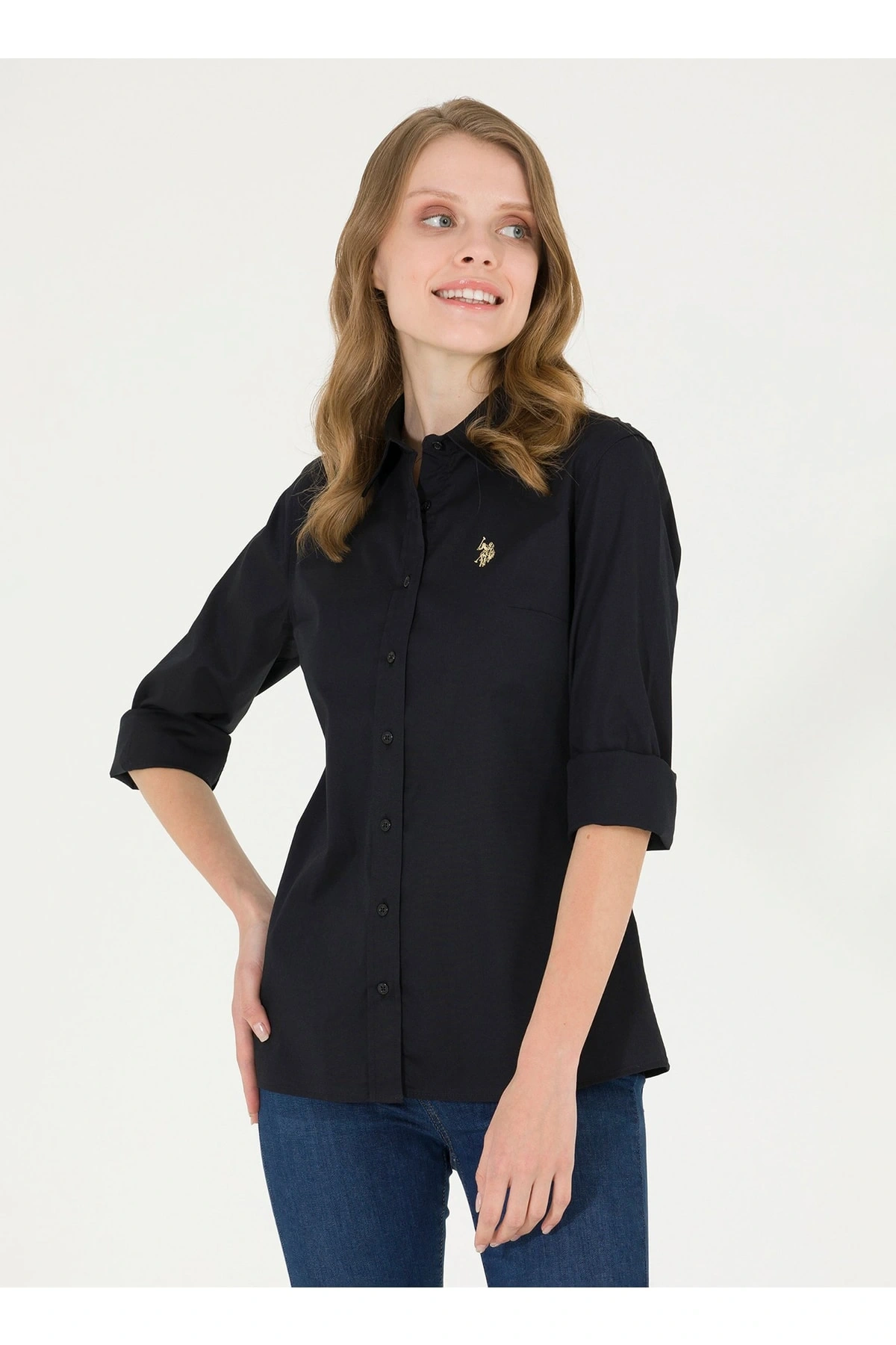 Gömlek Yaka Düz Siyah Kadın Gömlek Wox022k
