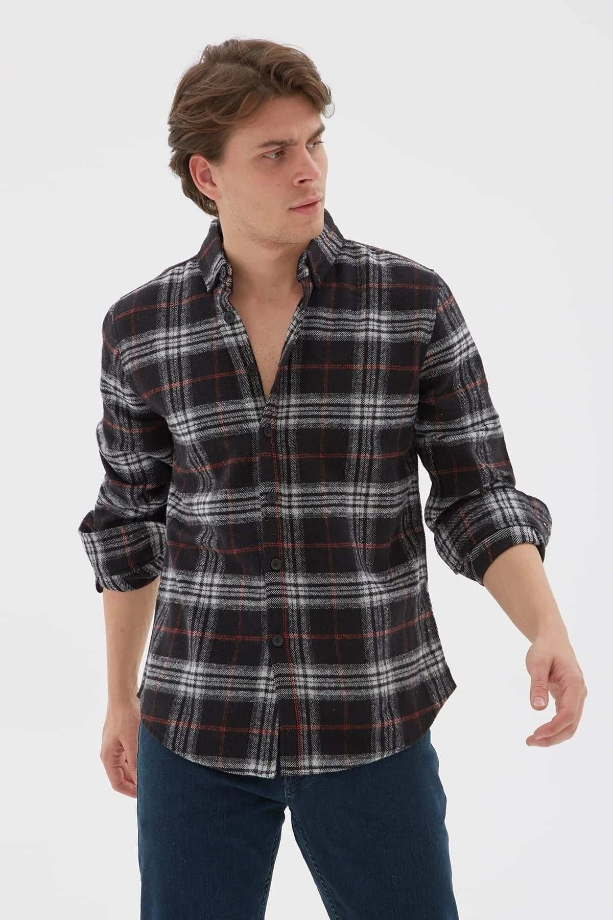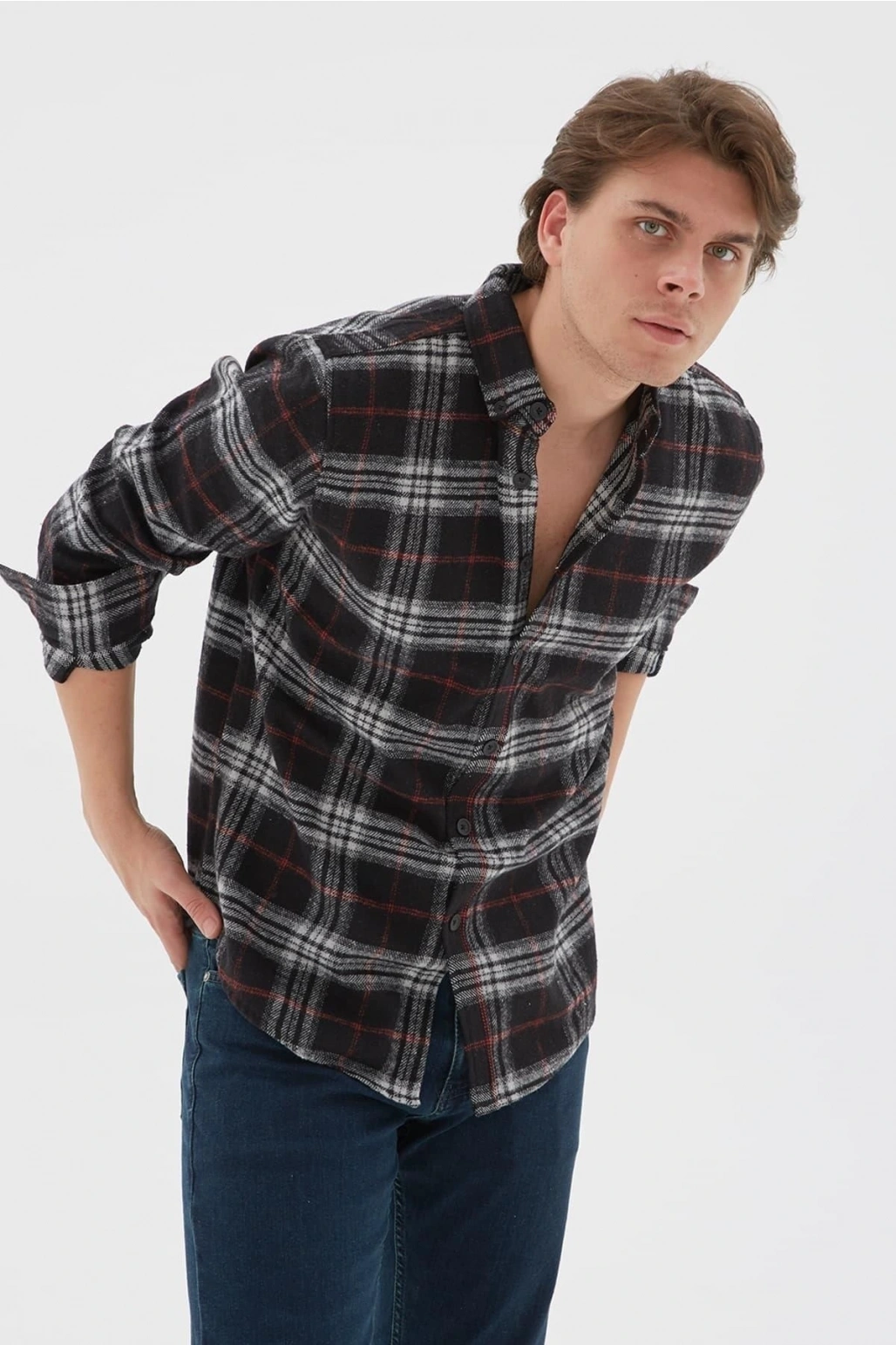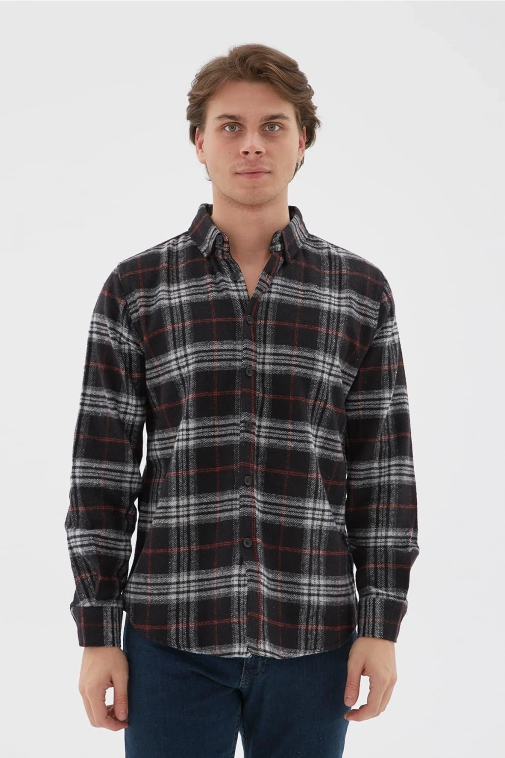 Ekose Desenli Gömlek Gri