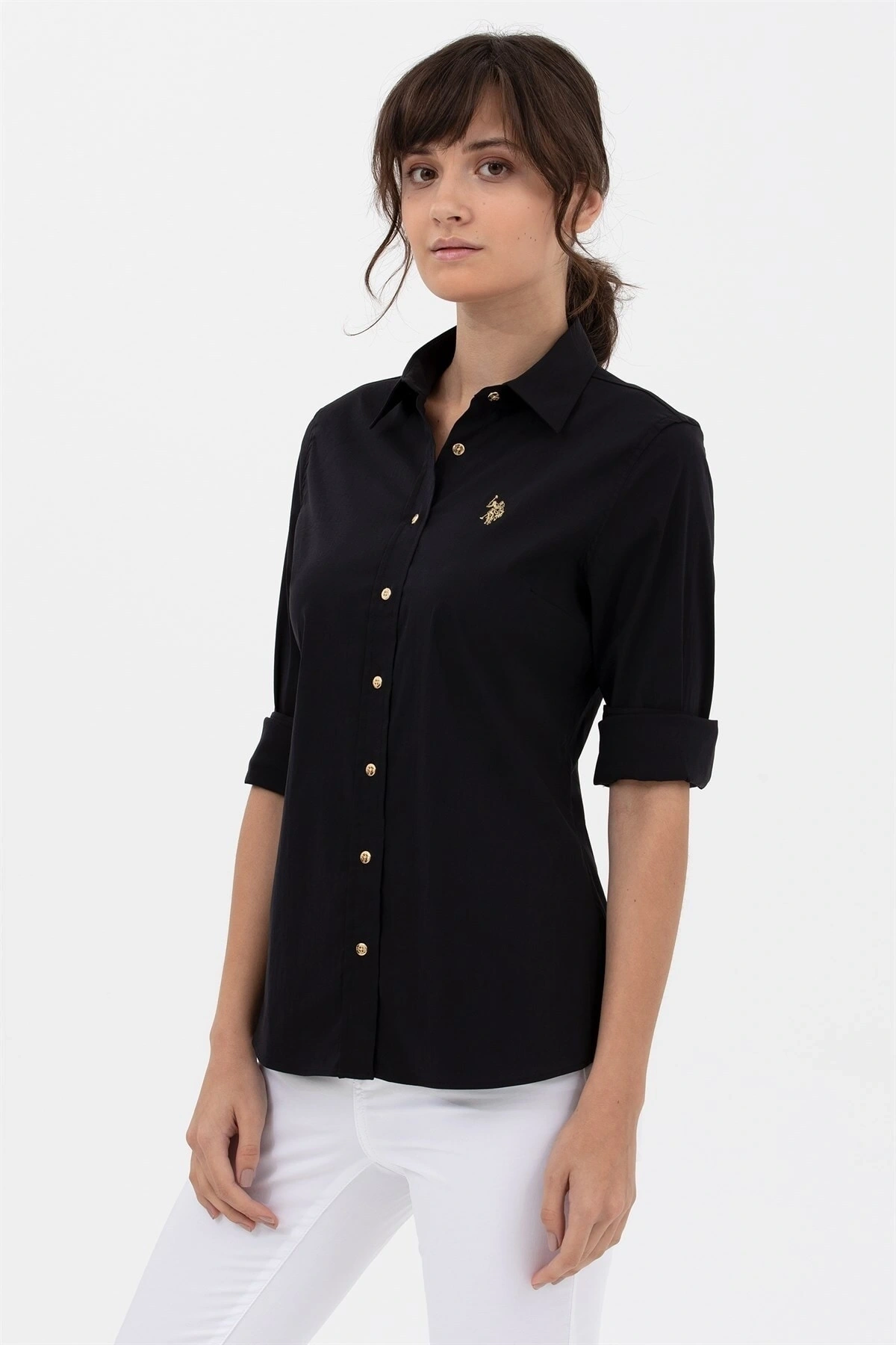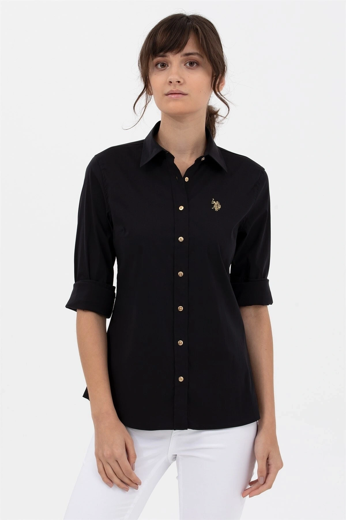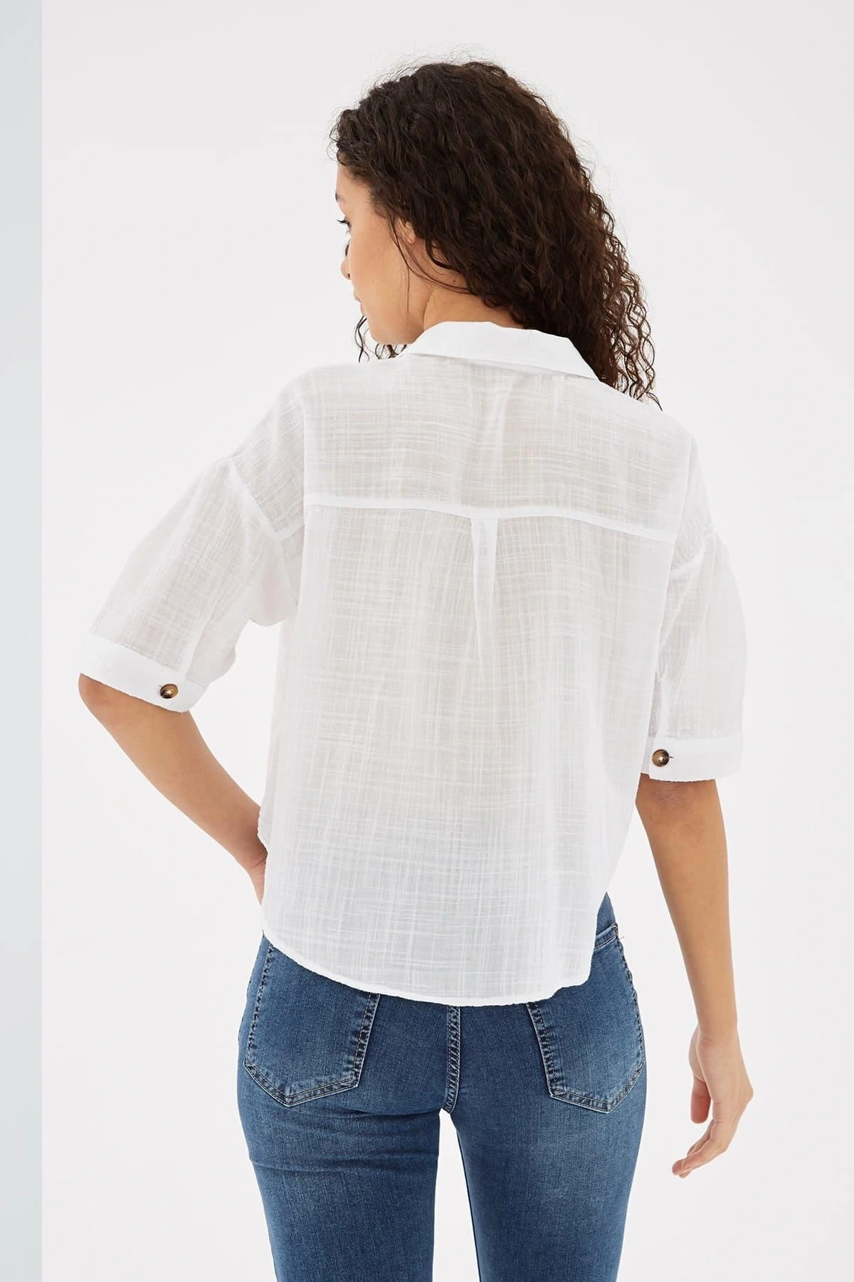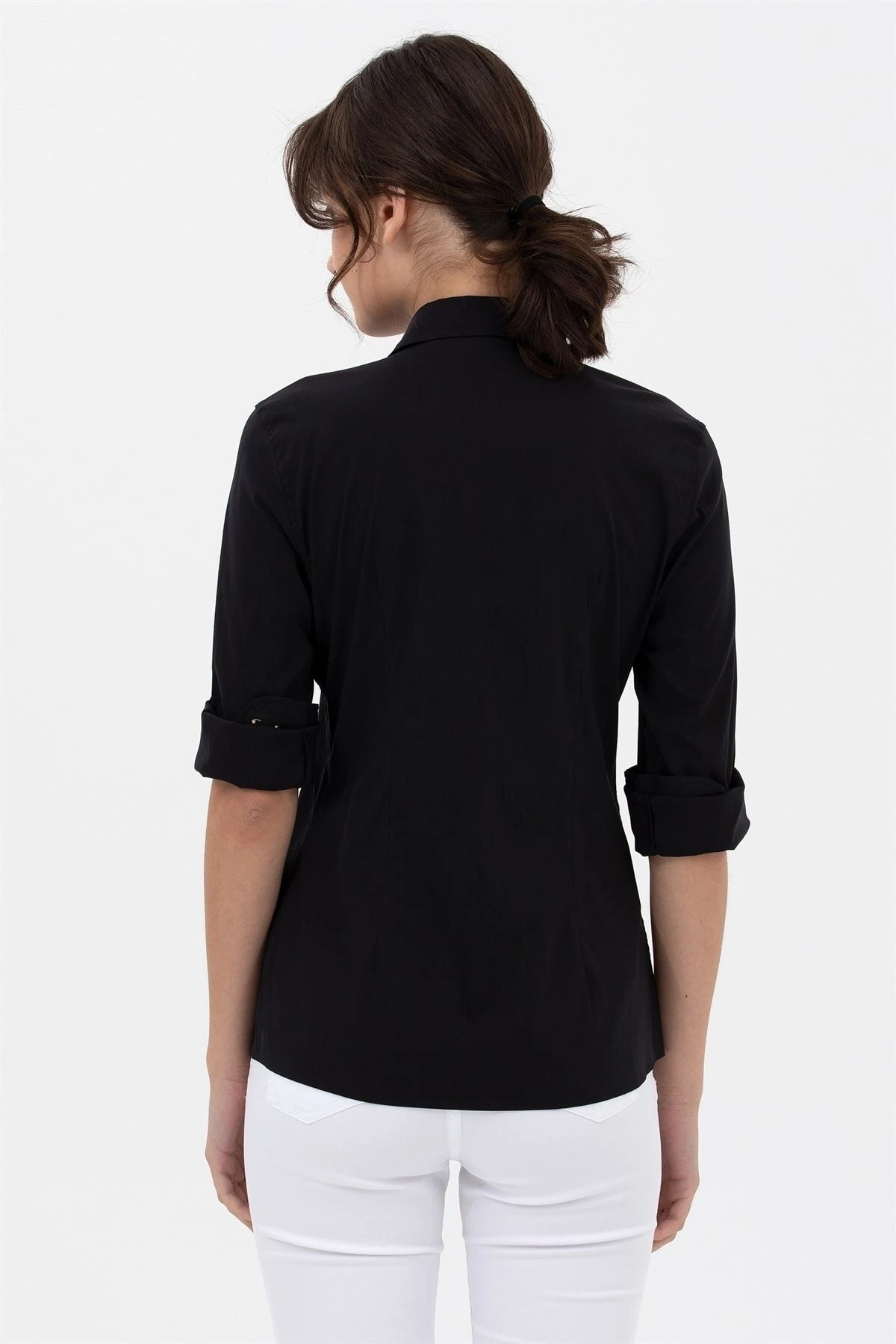 Kadın Metal Düğmeli Kol Kıvırmalı Gömlek