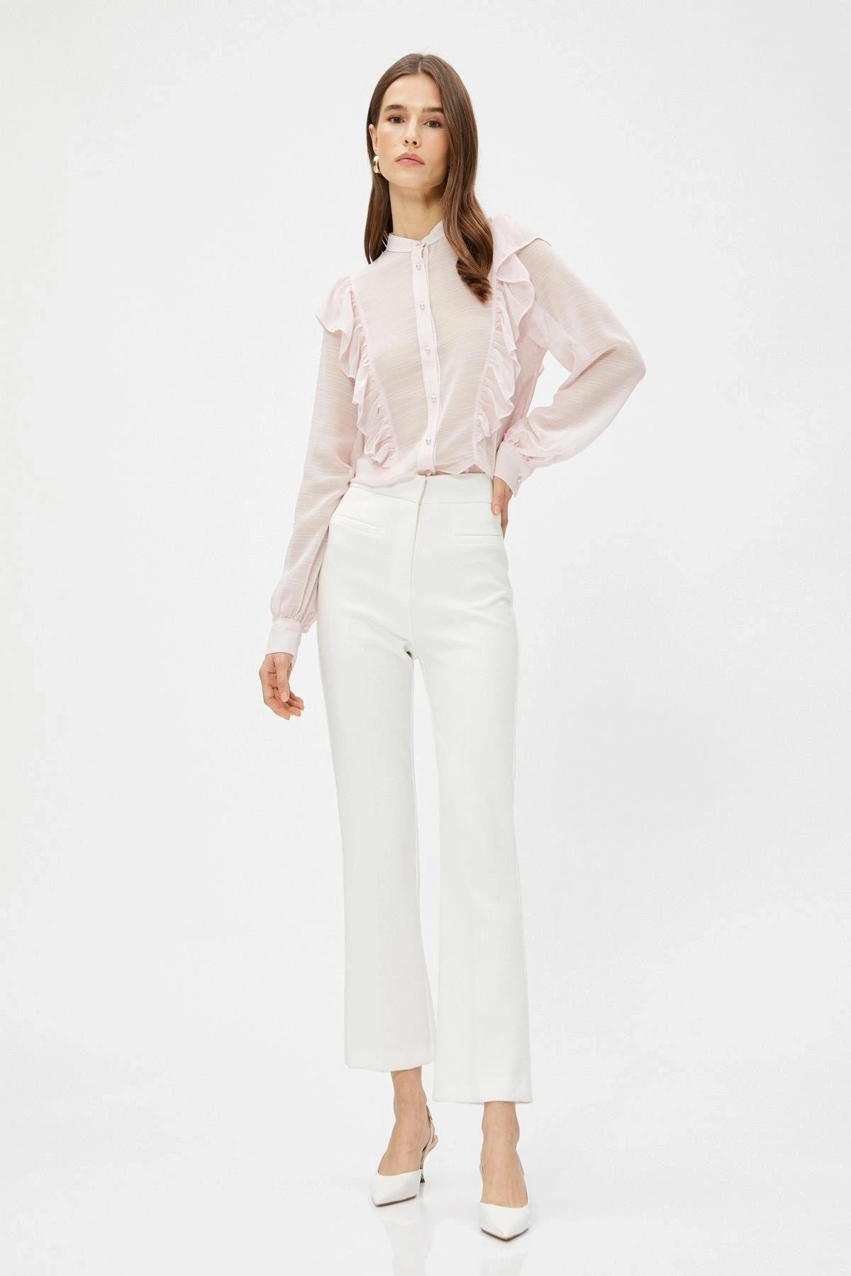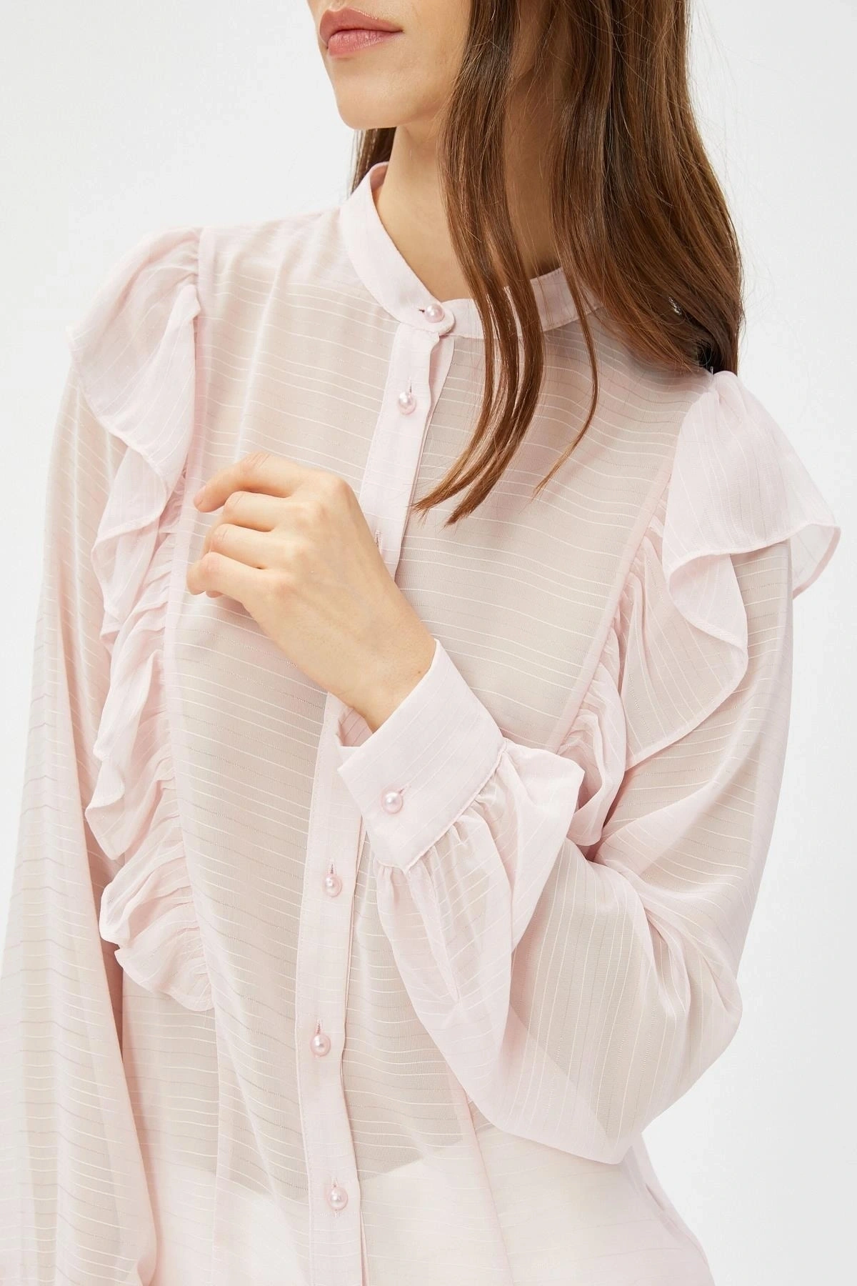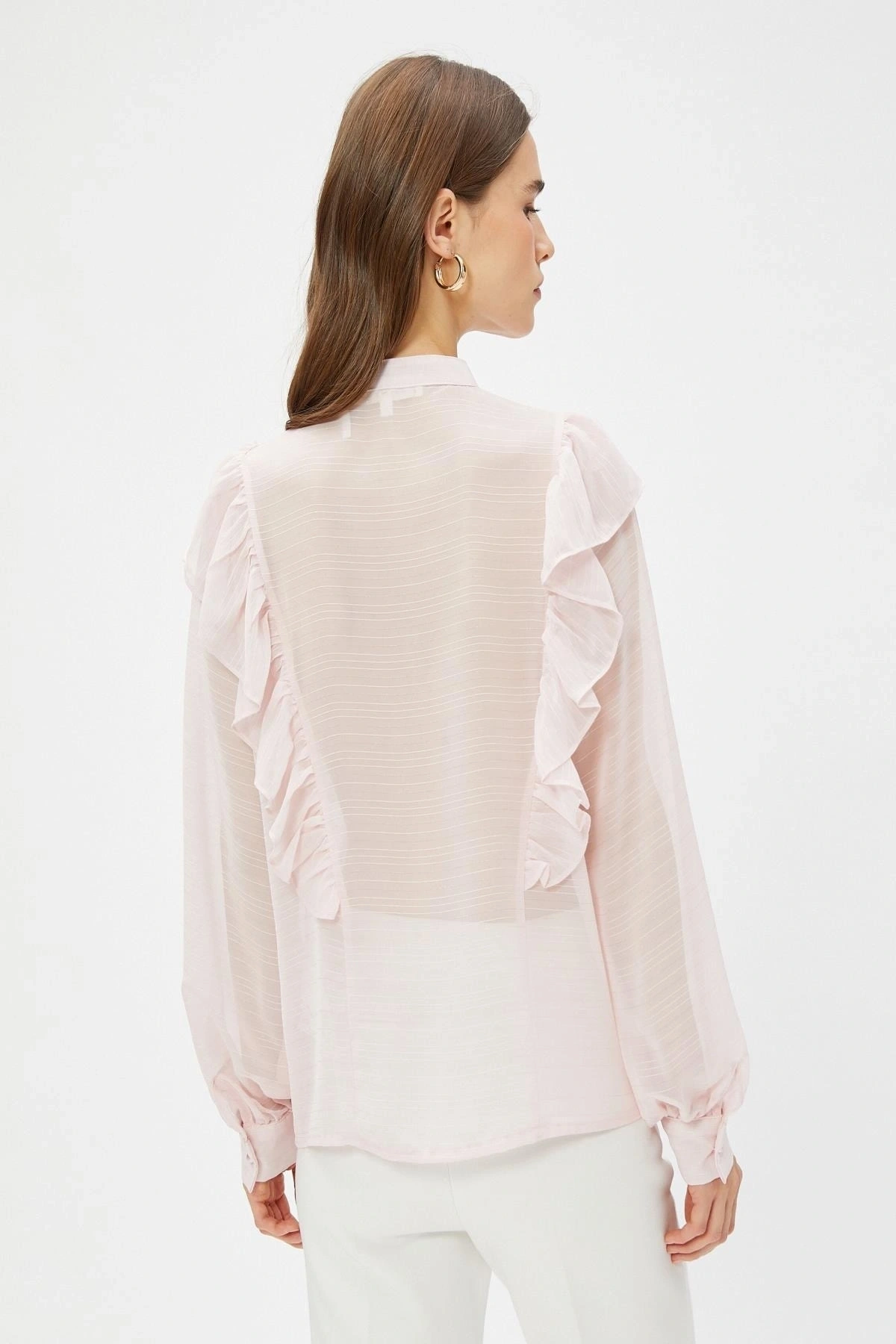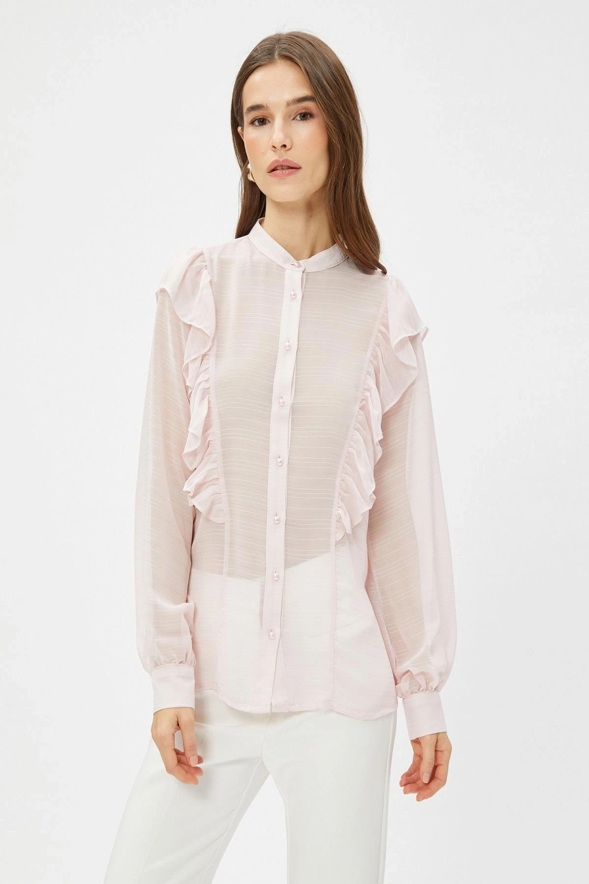 Kadın Metal Düğmeli Kol Kıvırmalı Gömlek