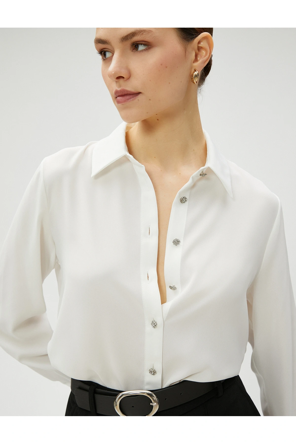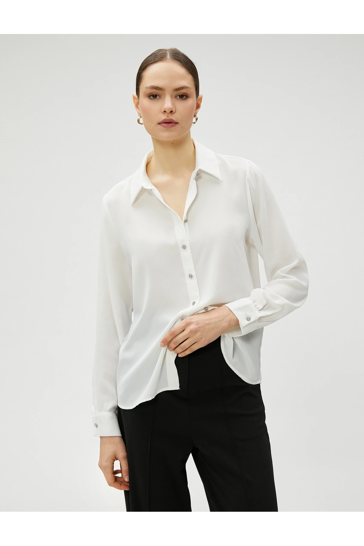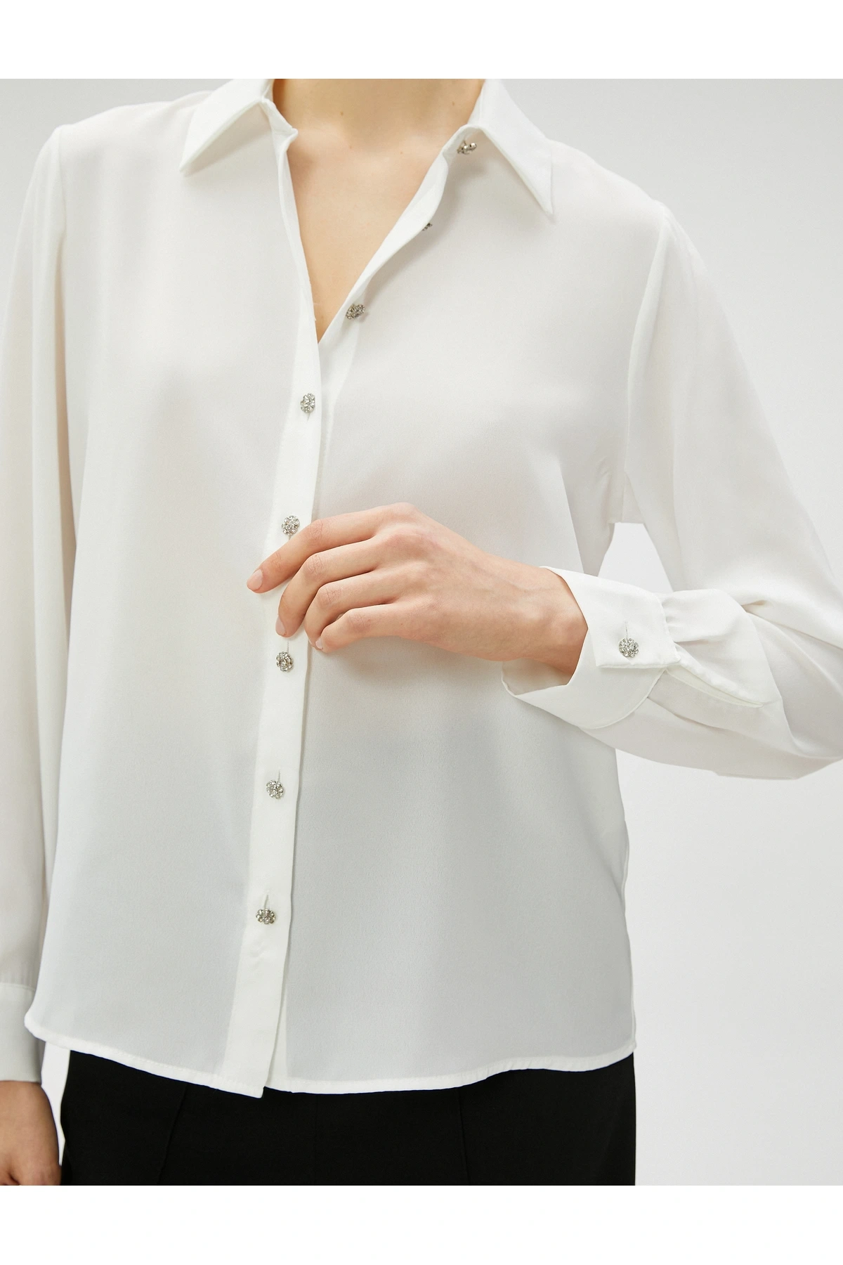 Taşlı Gömlek Düğmeli Uzun Kollu