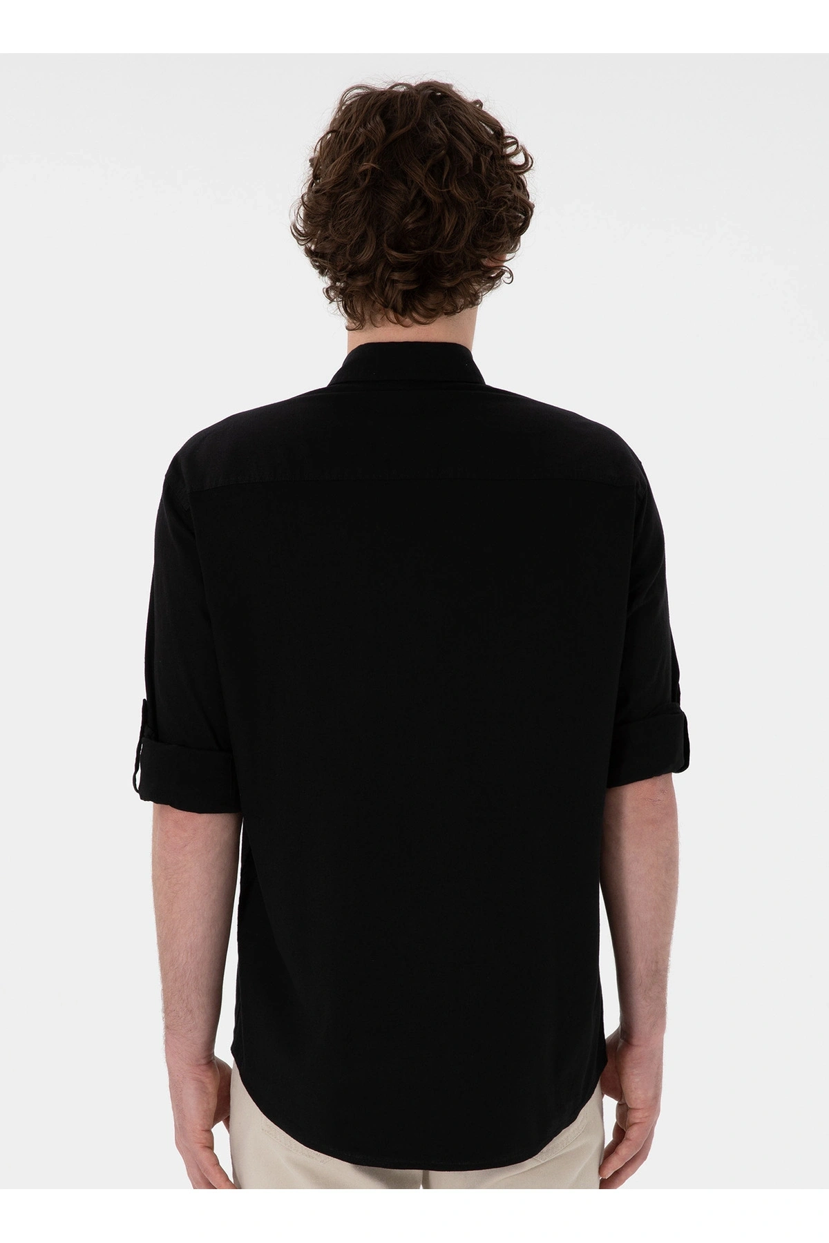 U.S. Polo Assn. U.S. Polo Assn. Comfort Fit Gömlek Yaka Siyah Erkek Gömlek ENZO