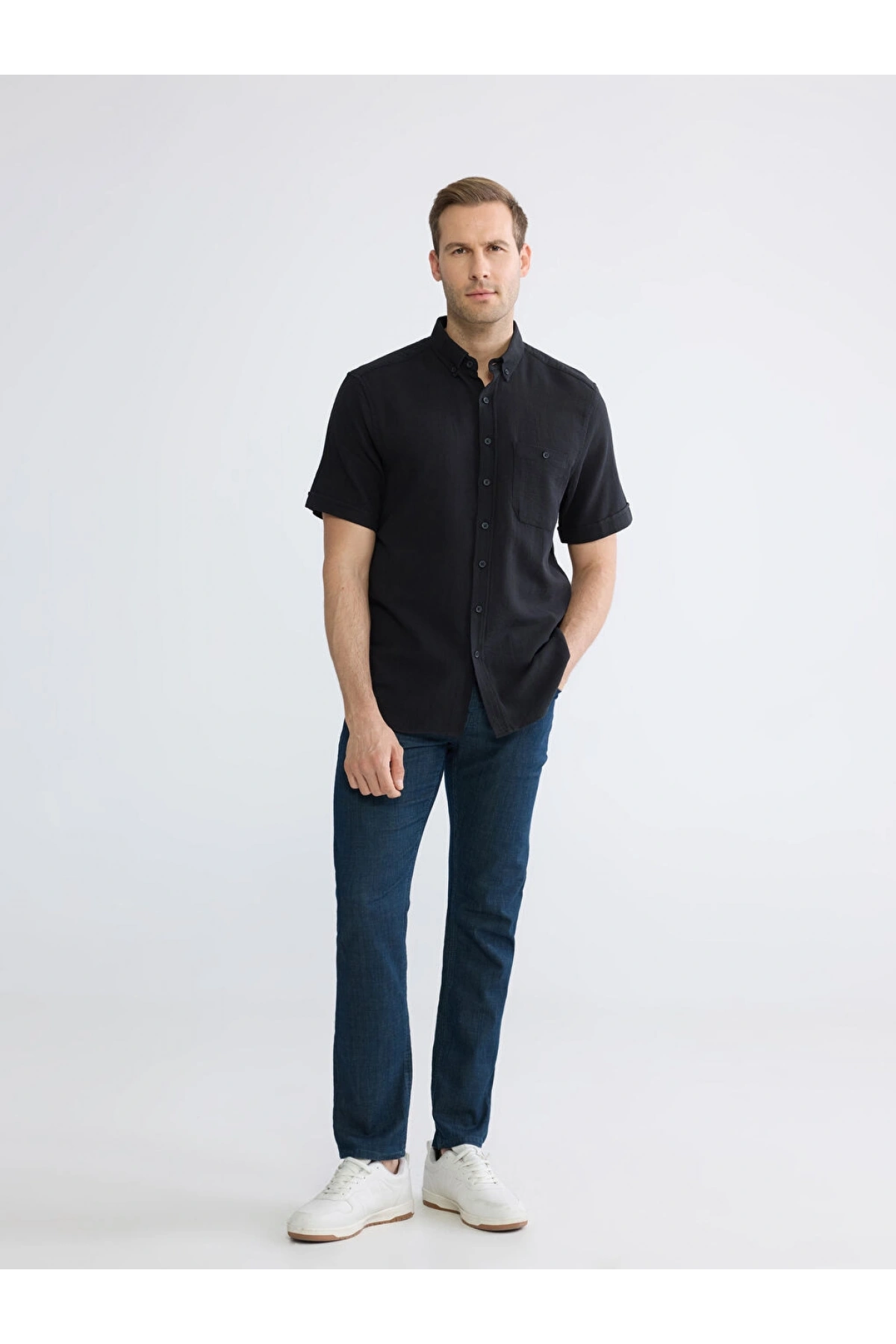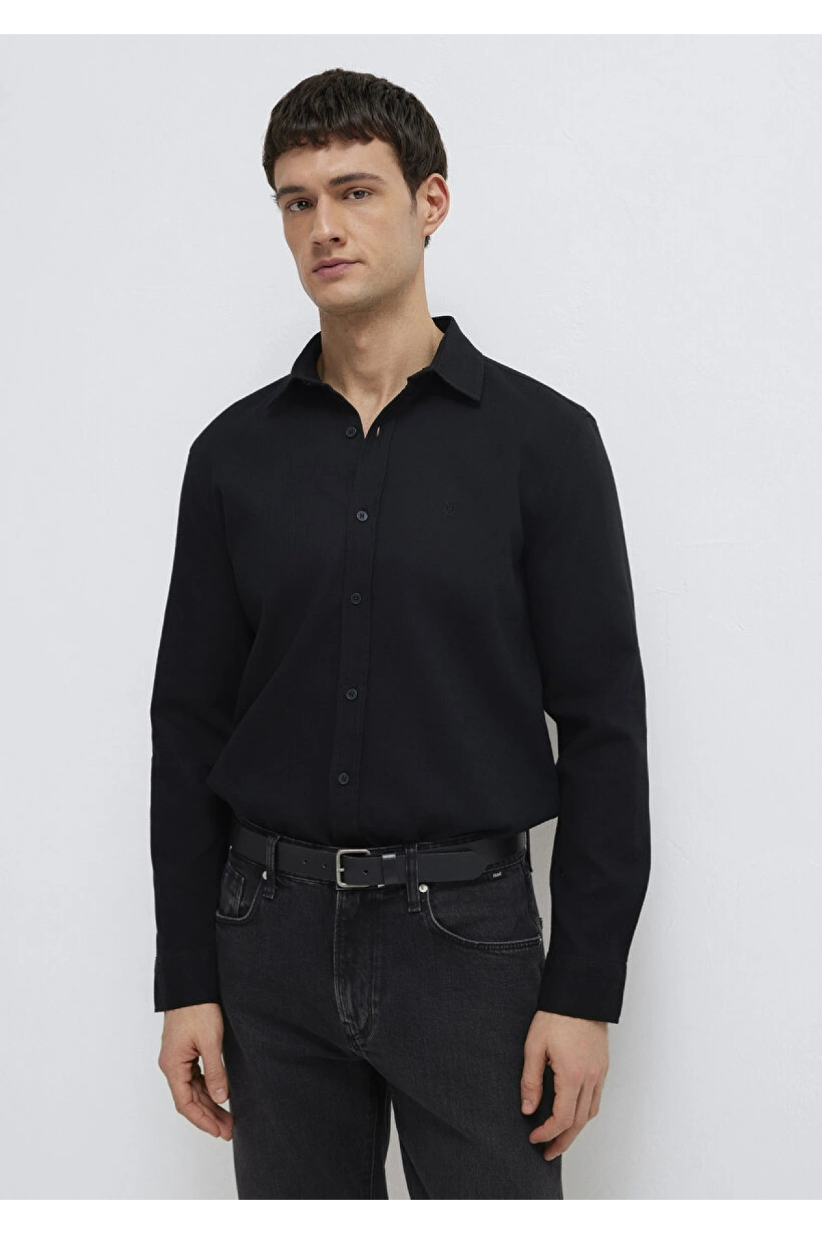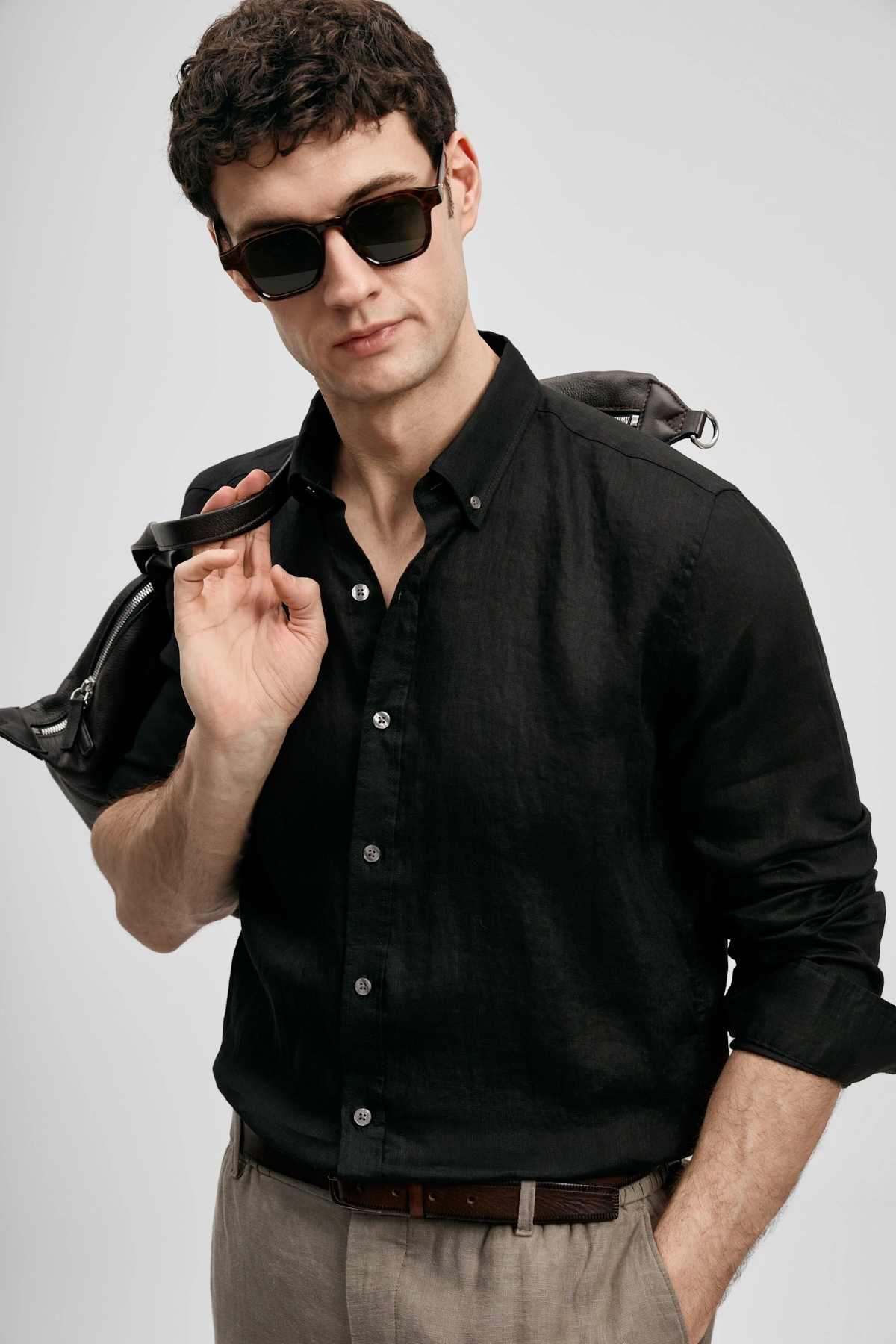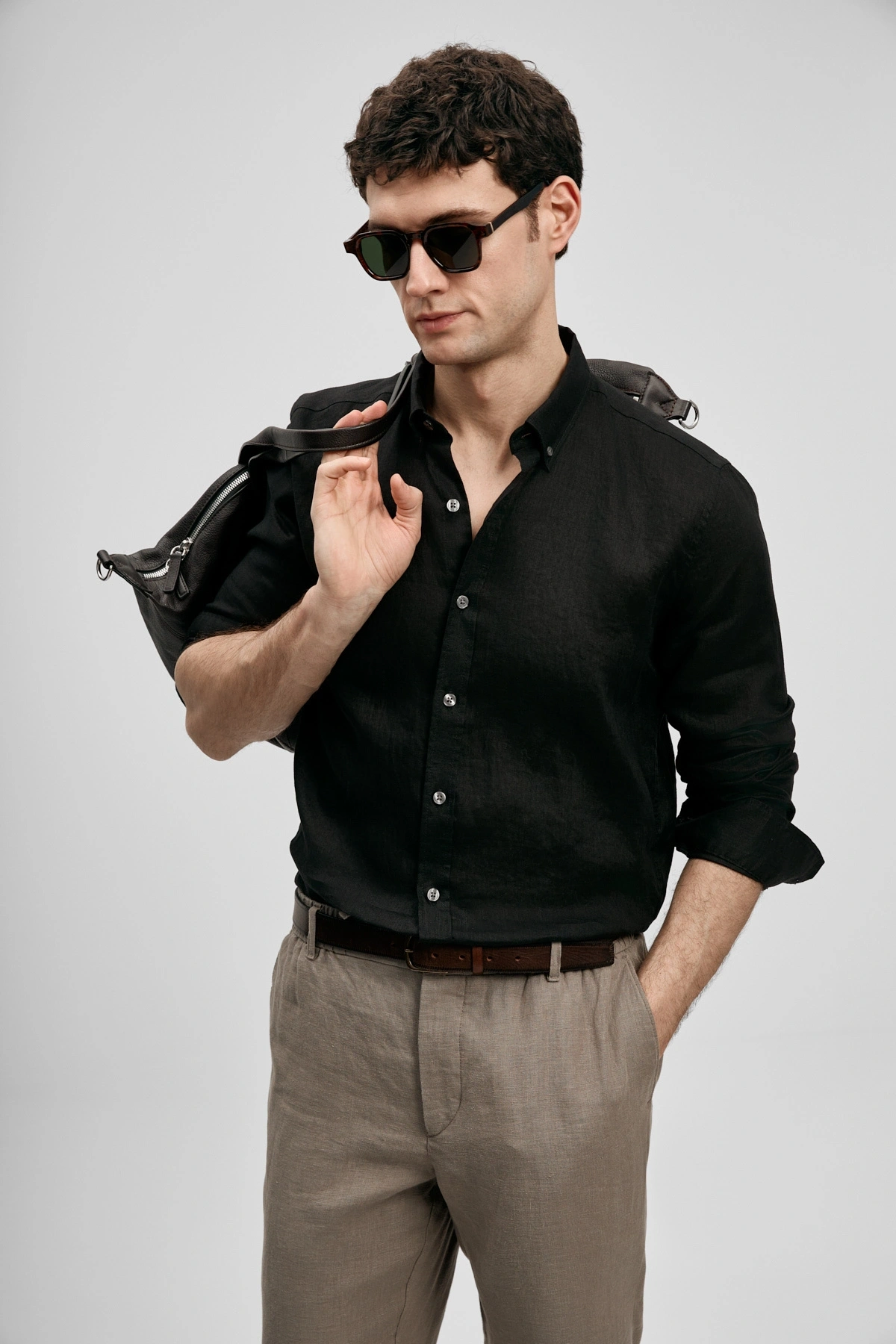 Lufian Pitaya Erkek Keten Gömlek Comfort Fit Siyah