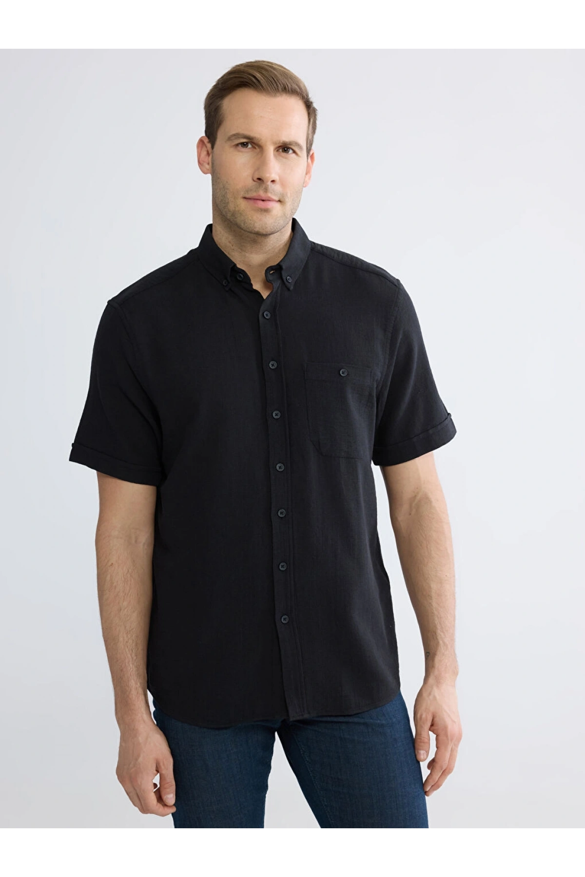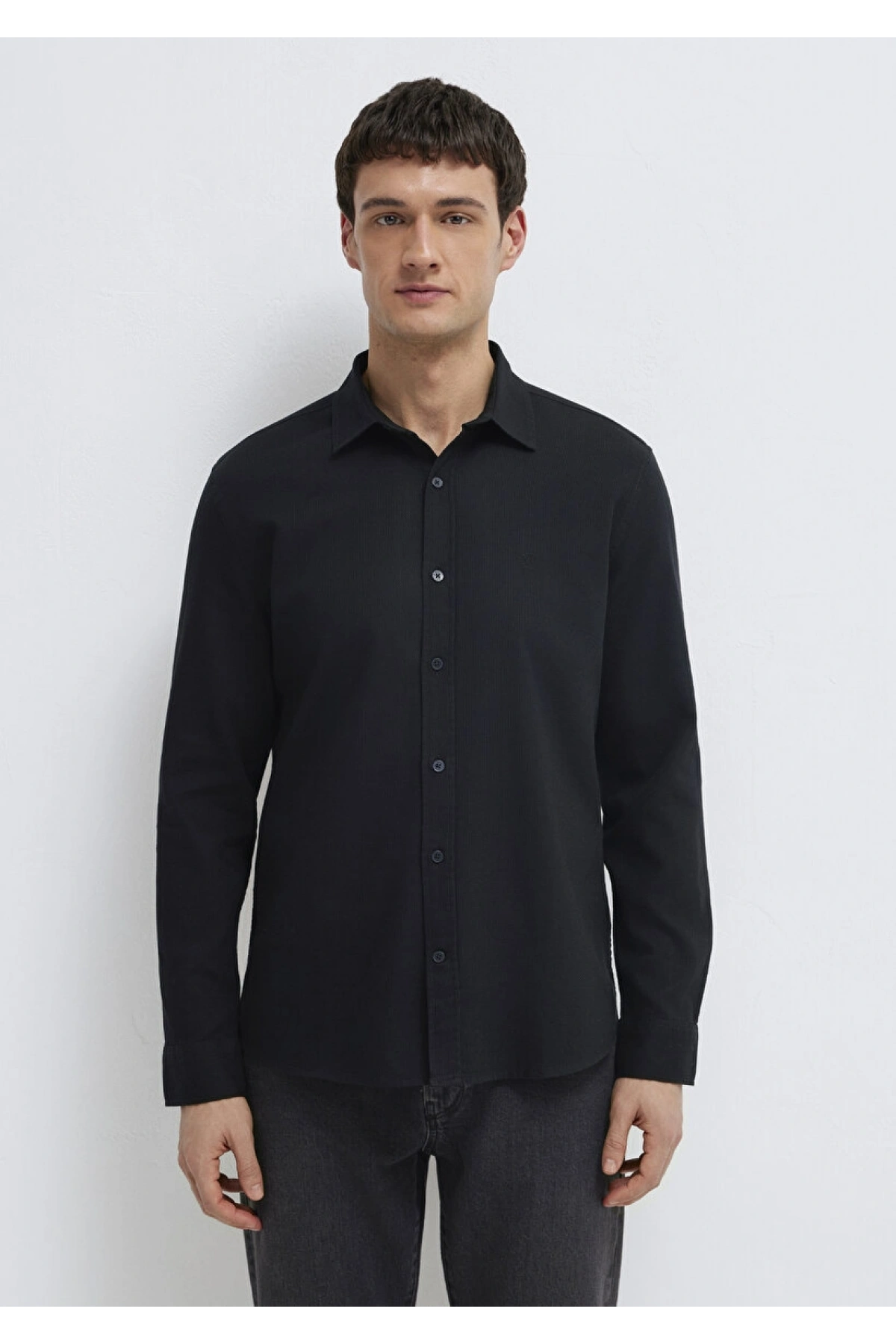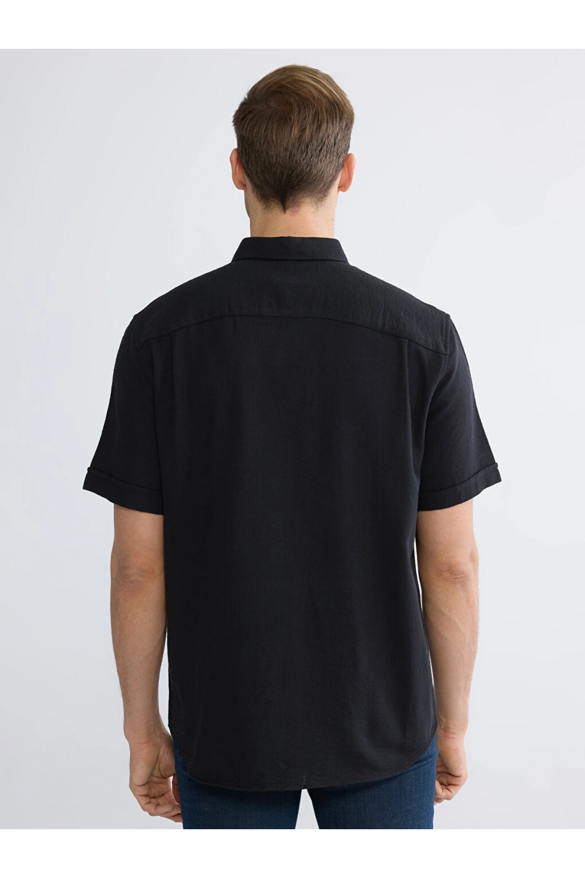 Lufian Pitaya Erkek Keten Gömlek Comfort Fit Siyah