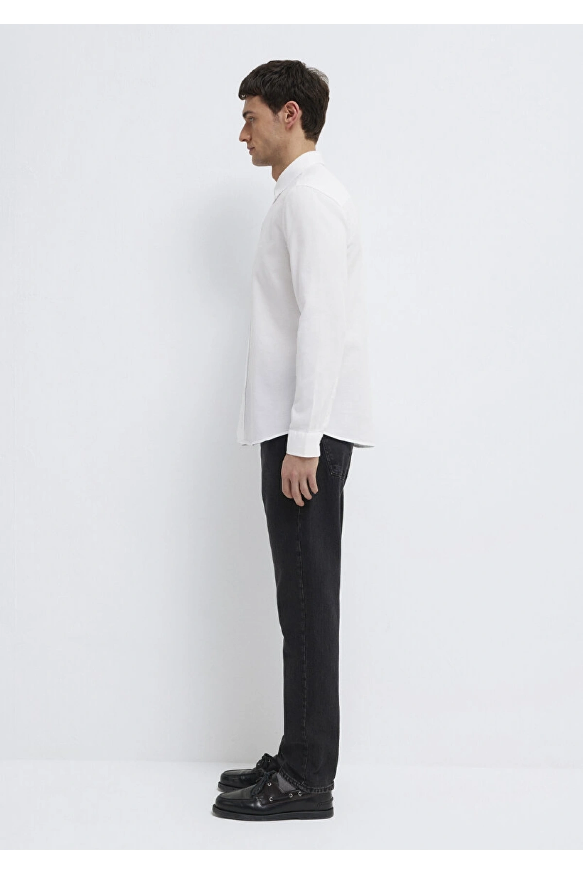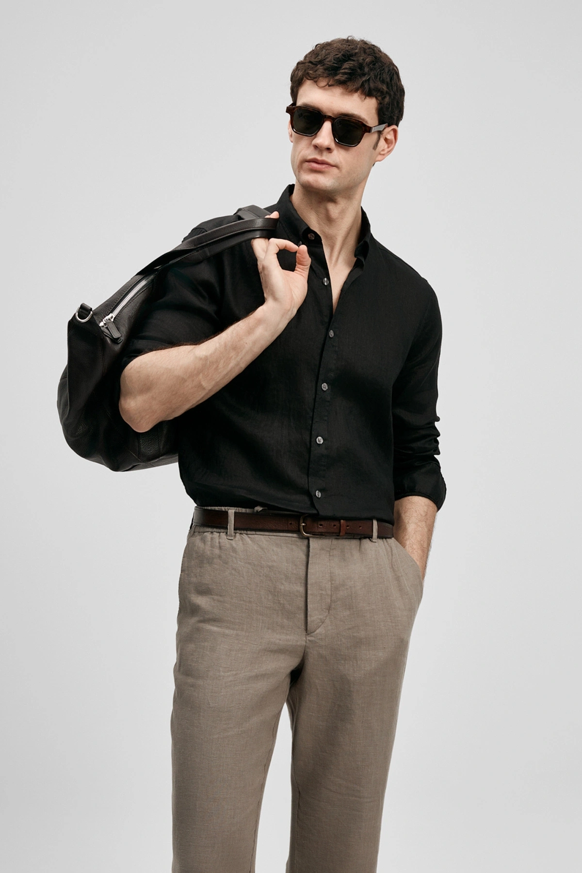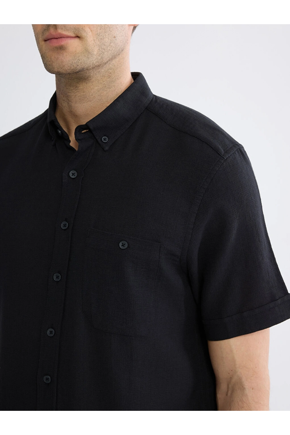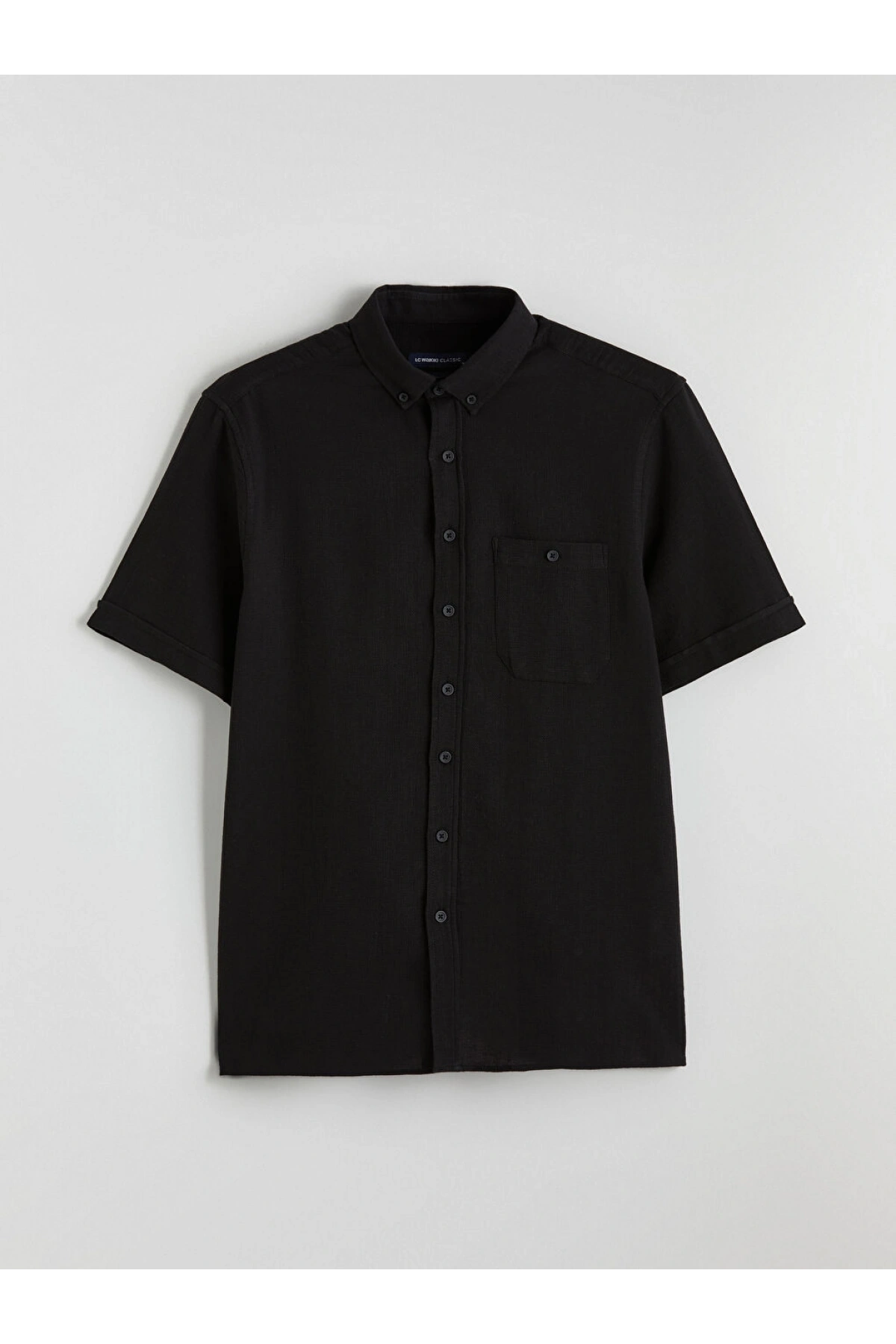 Lufian Pitaya Erkek Keten Gömlek Comfort Fit Siyah
