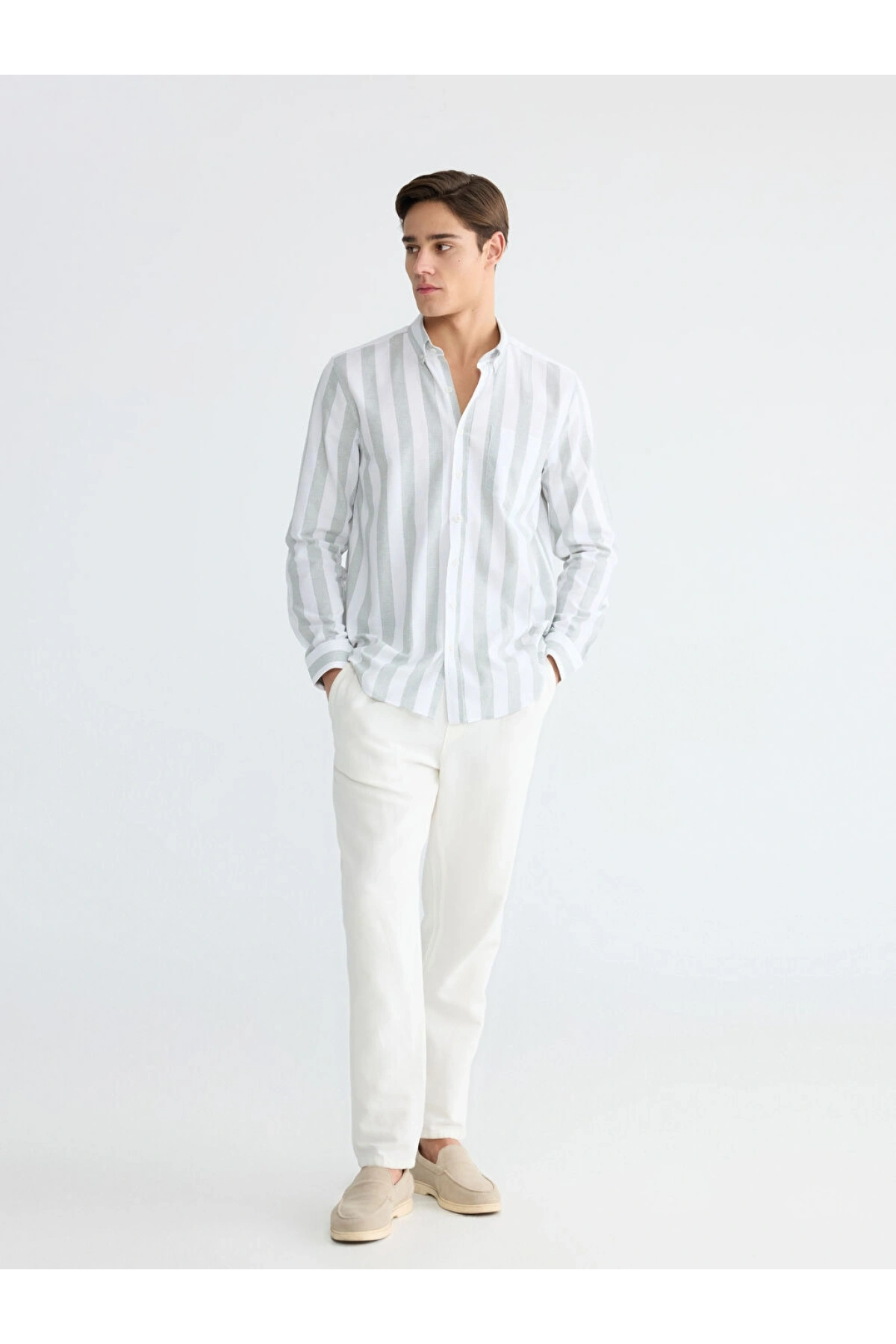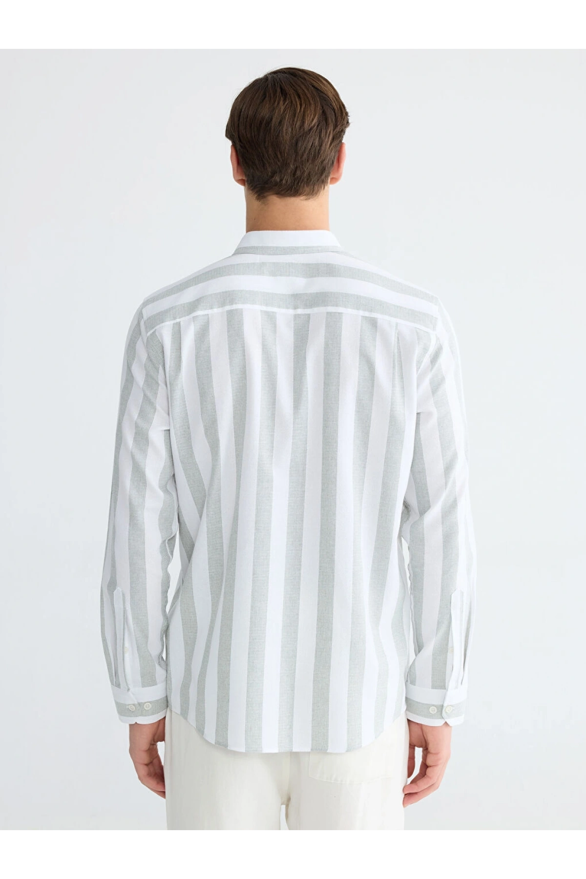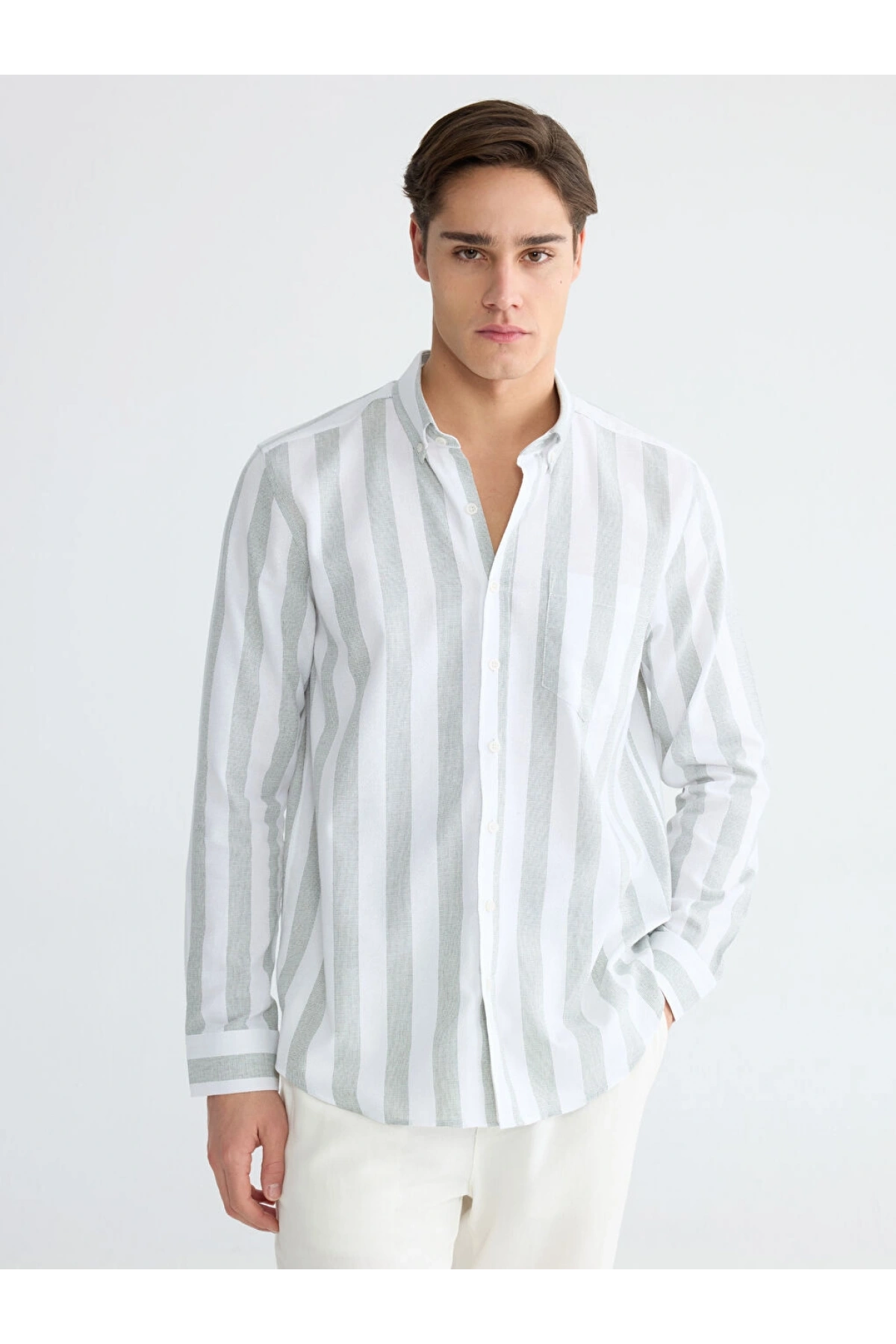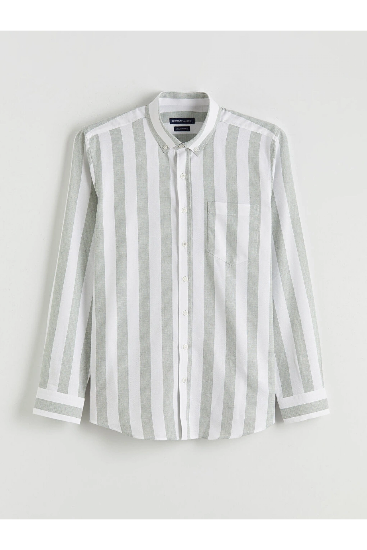 LCWAIKIKI Classic Yeşil Regular Fit Çizgili Armürlü Erkek Gömlek