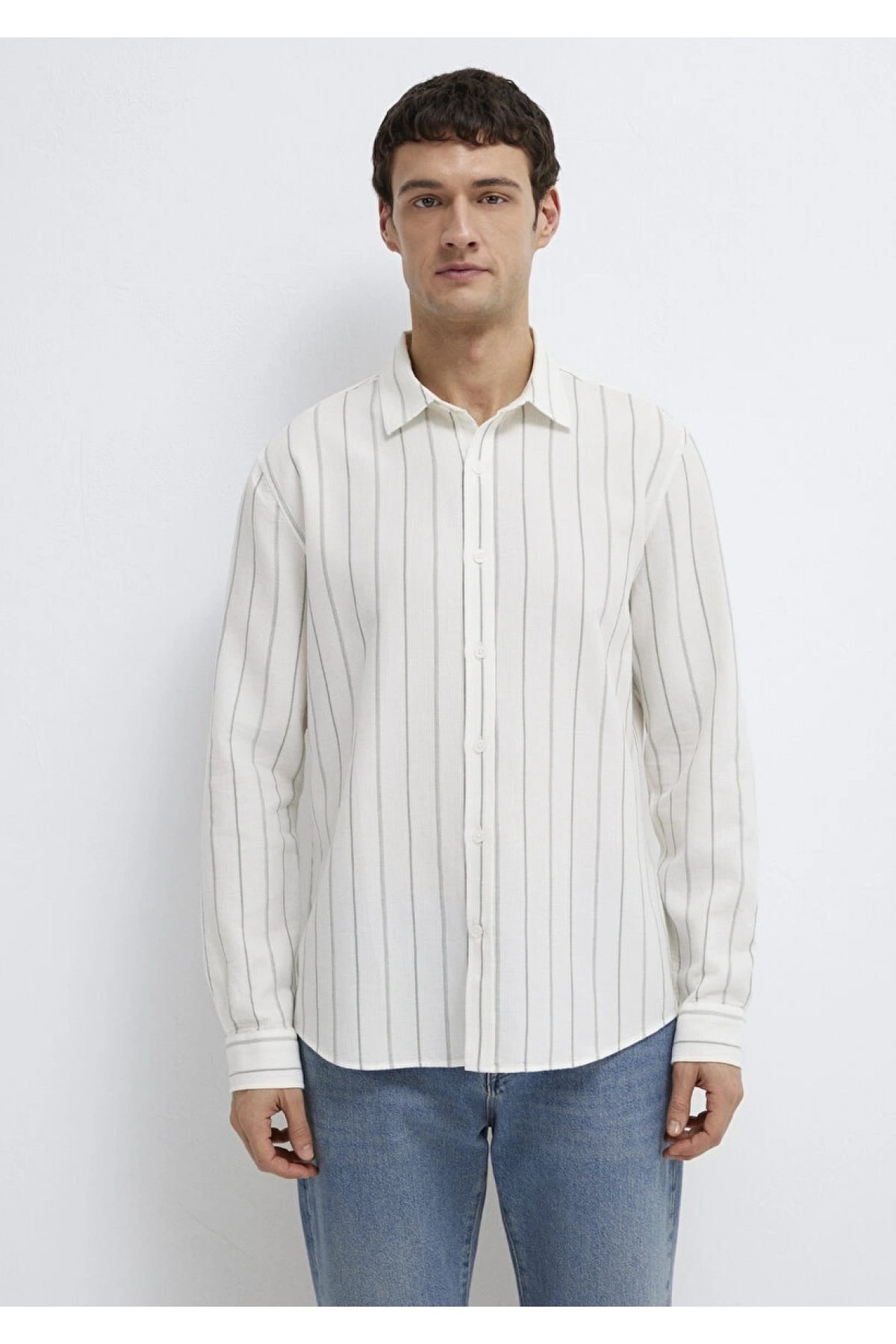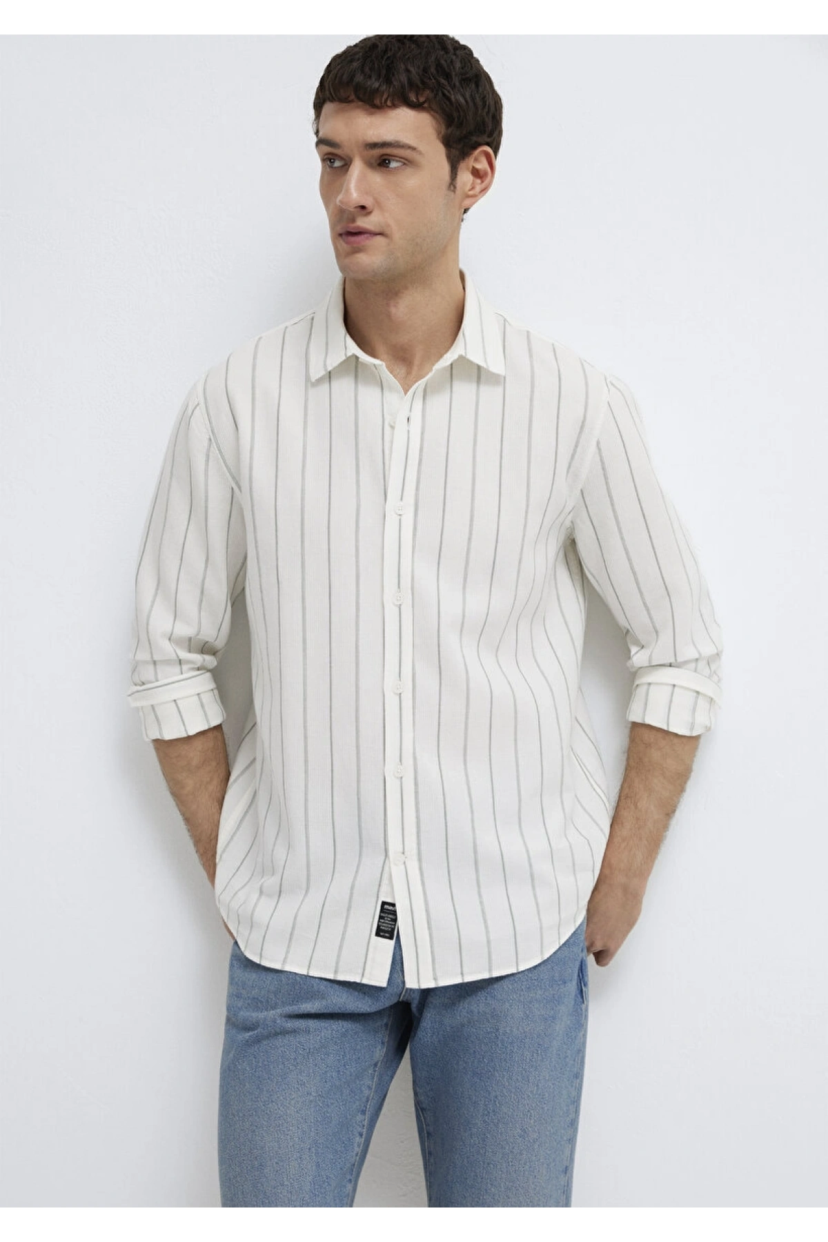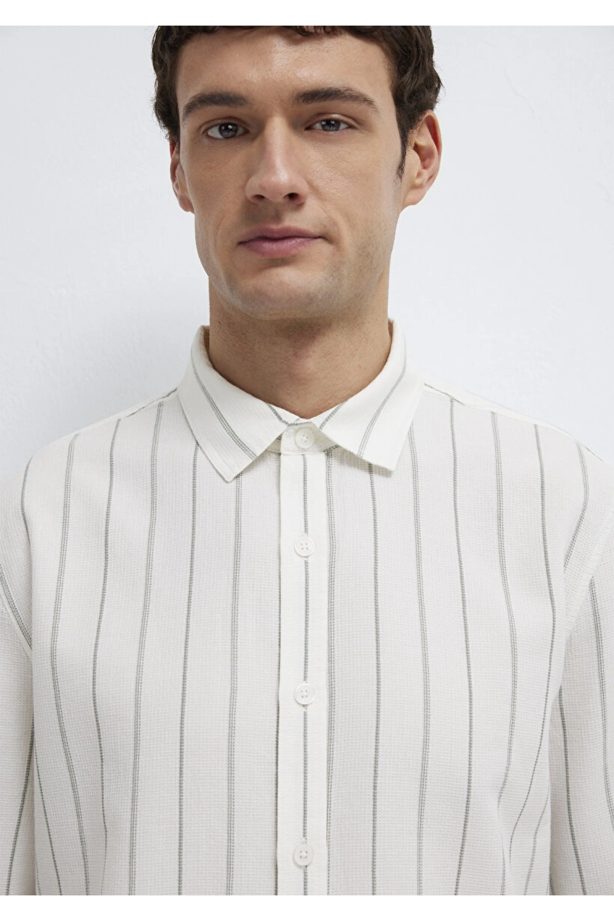 LCWAIKIKI Classic Yeşil Regular Fit Çizgili Armürlü Erkek Gömlek