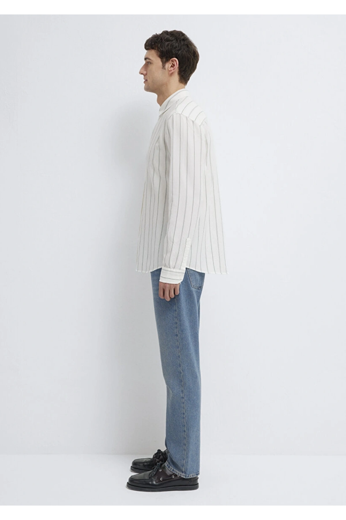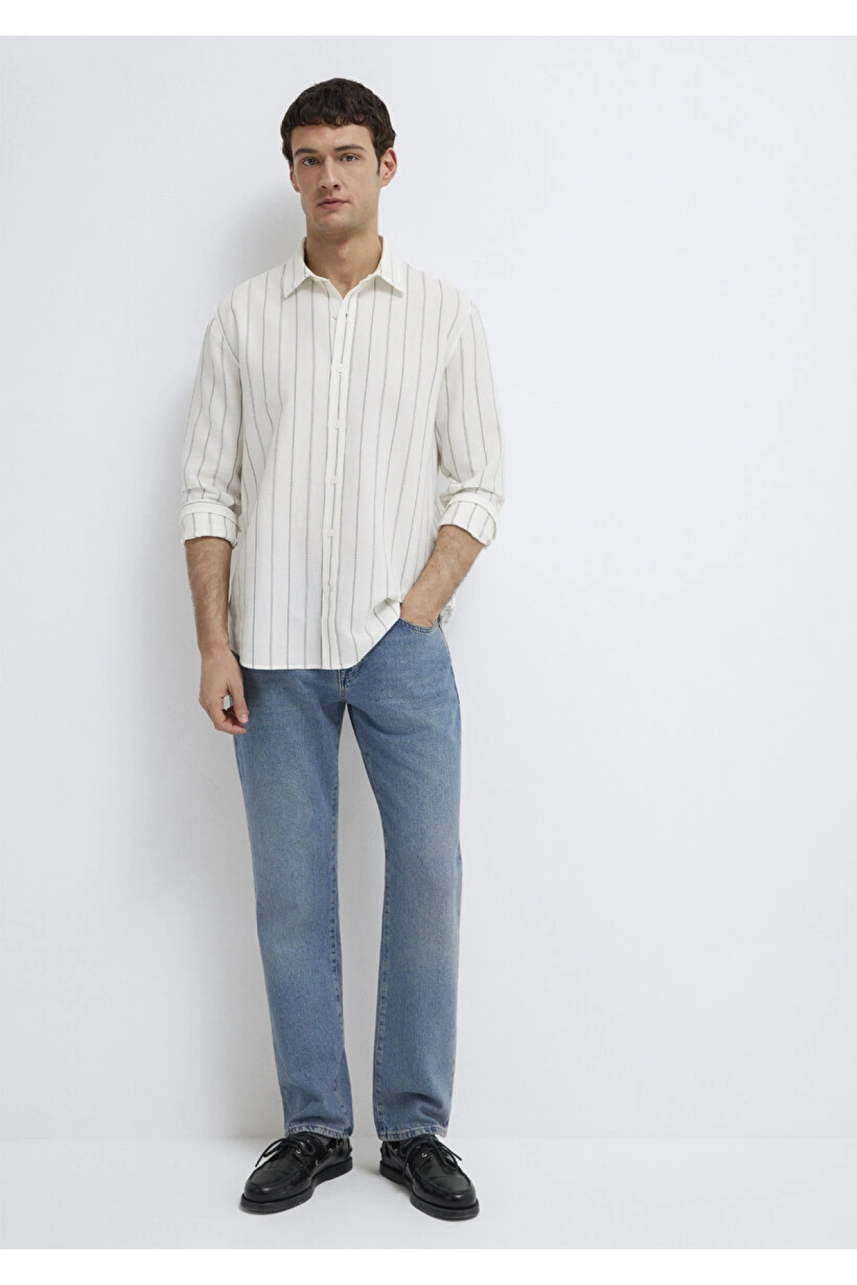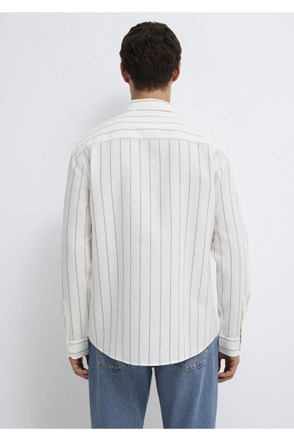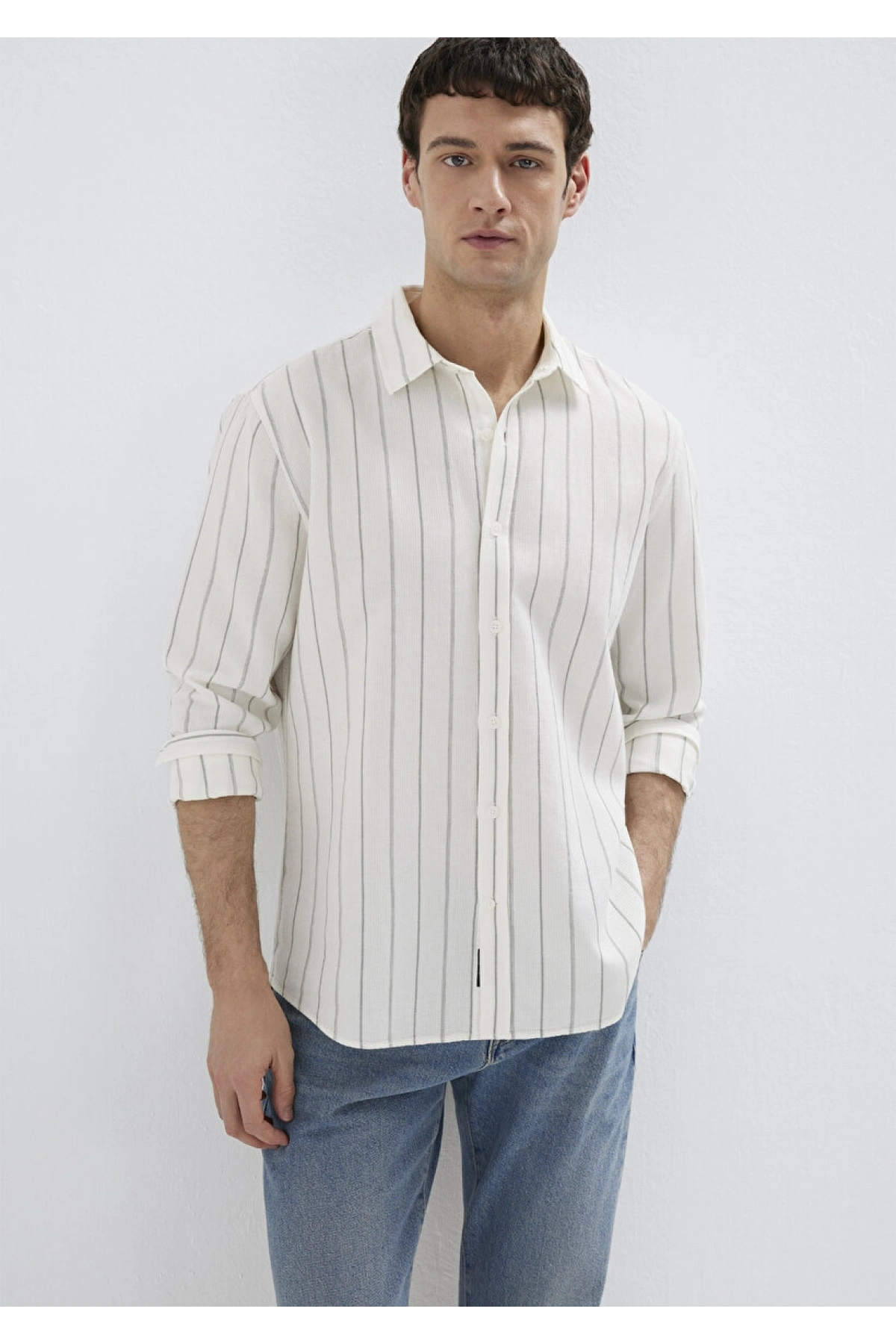 LCWAIKIKI Classic Yeşil Regular Fit Çizgili Armürlü Erkek Gömlek