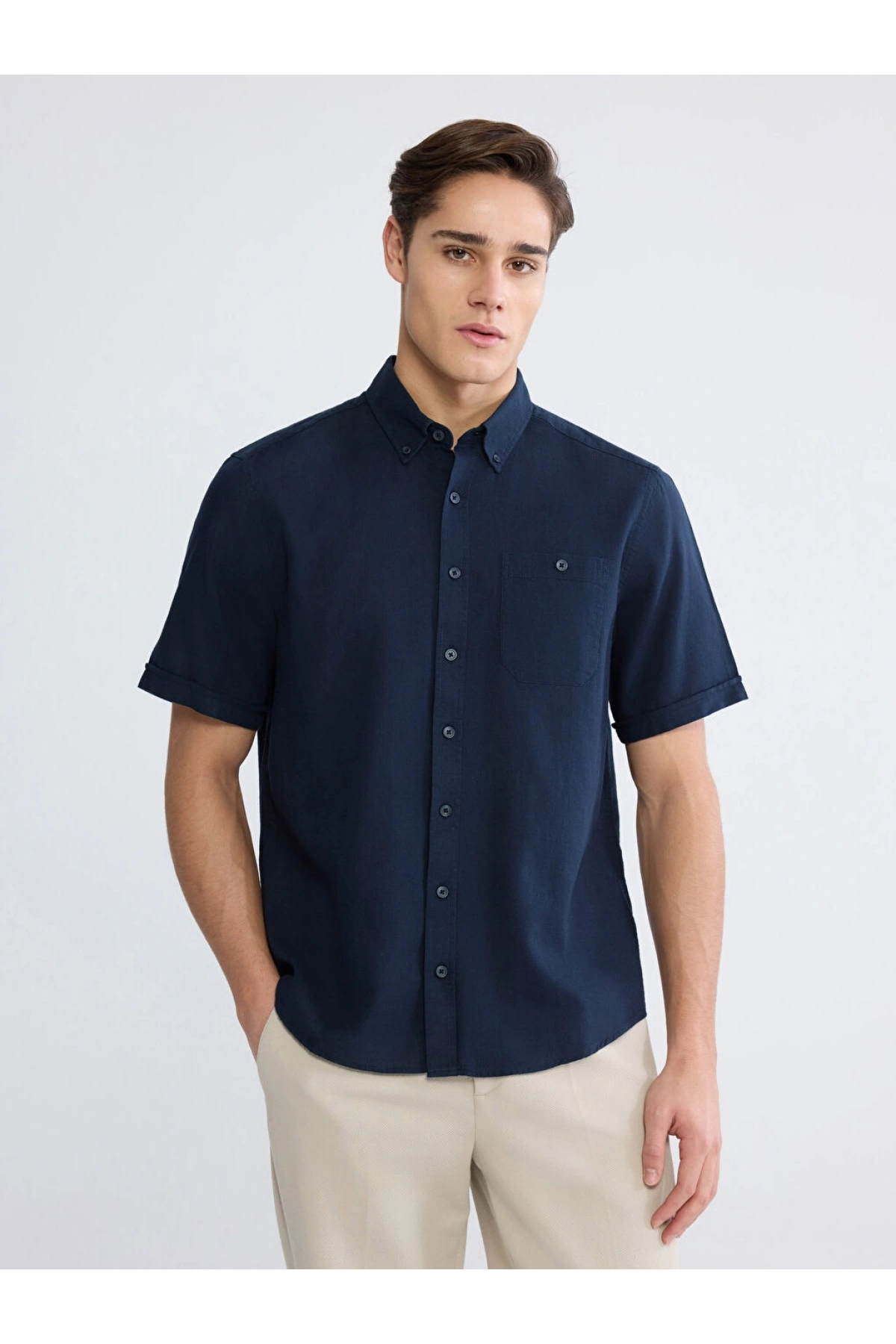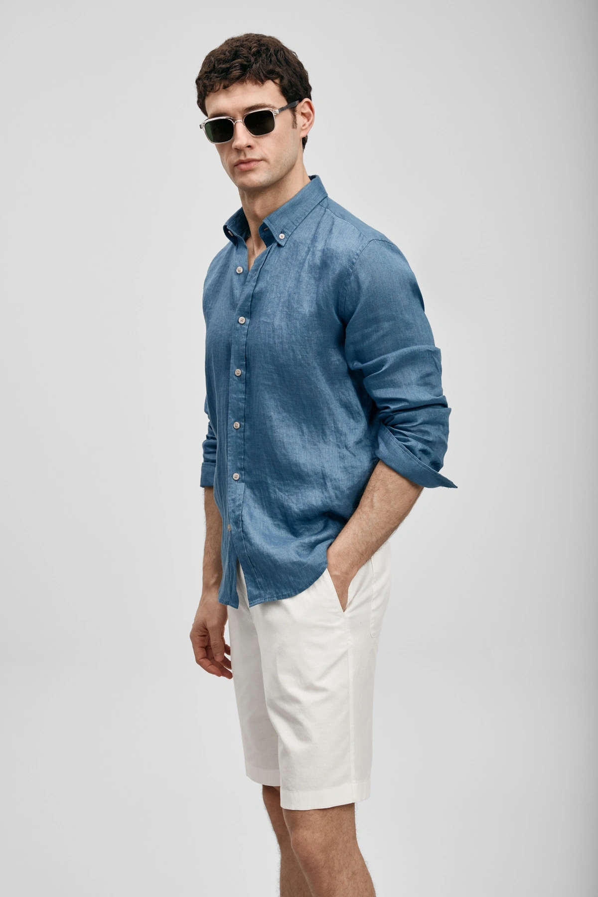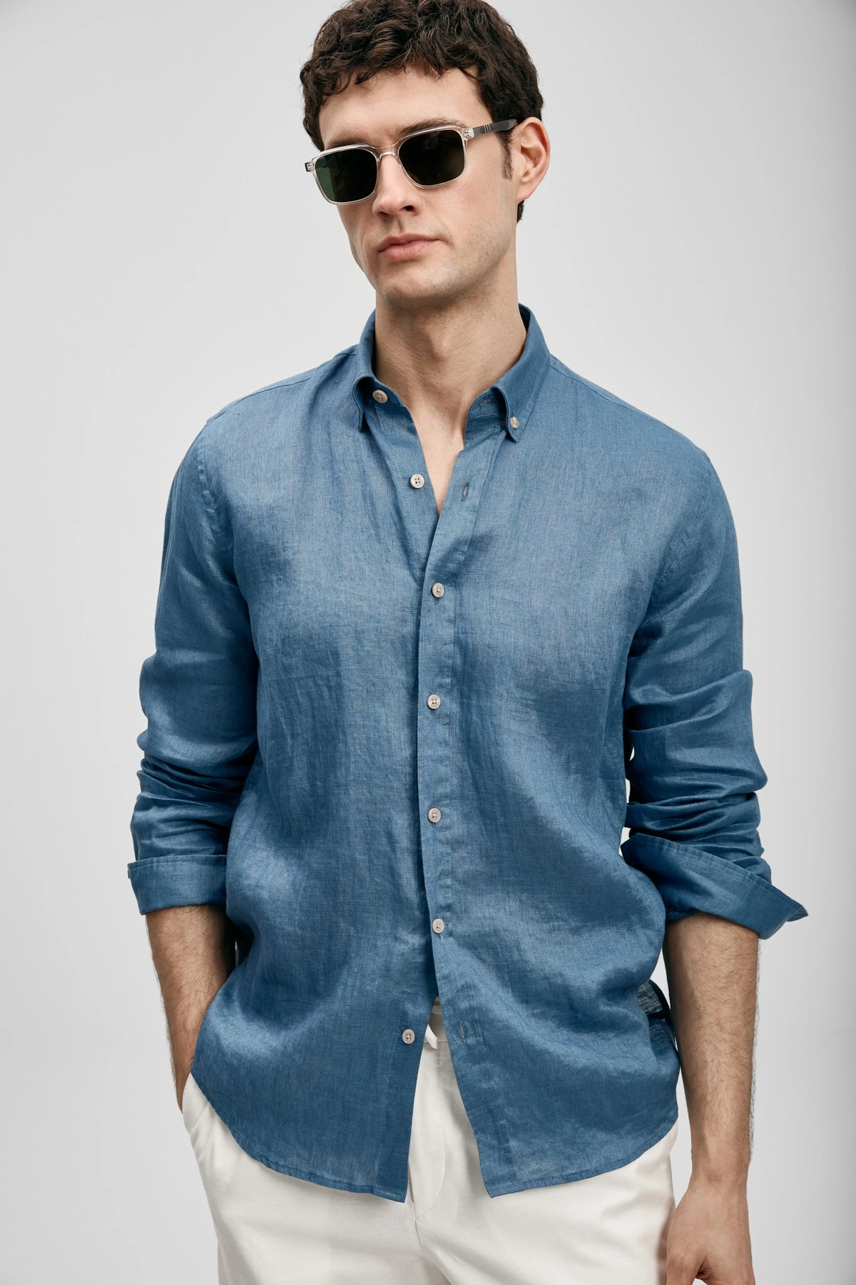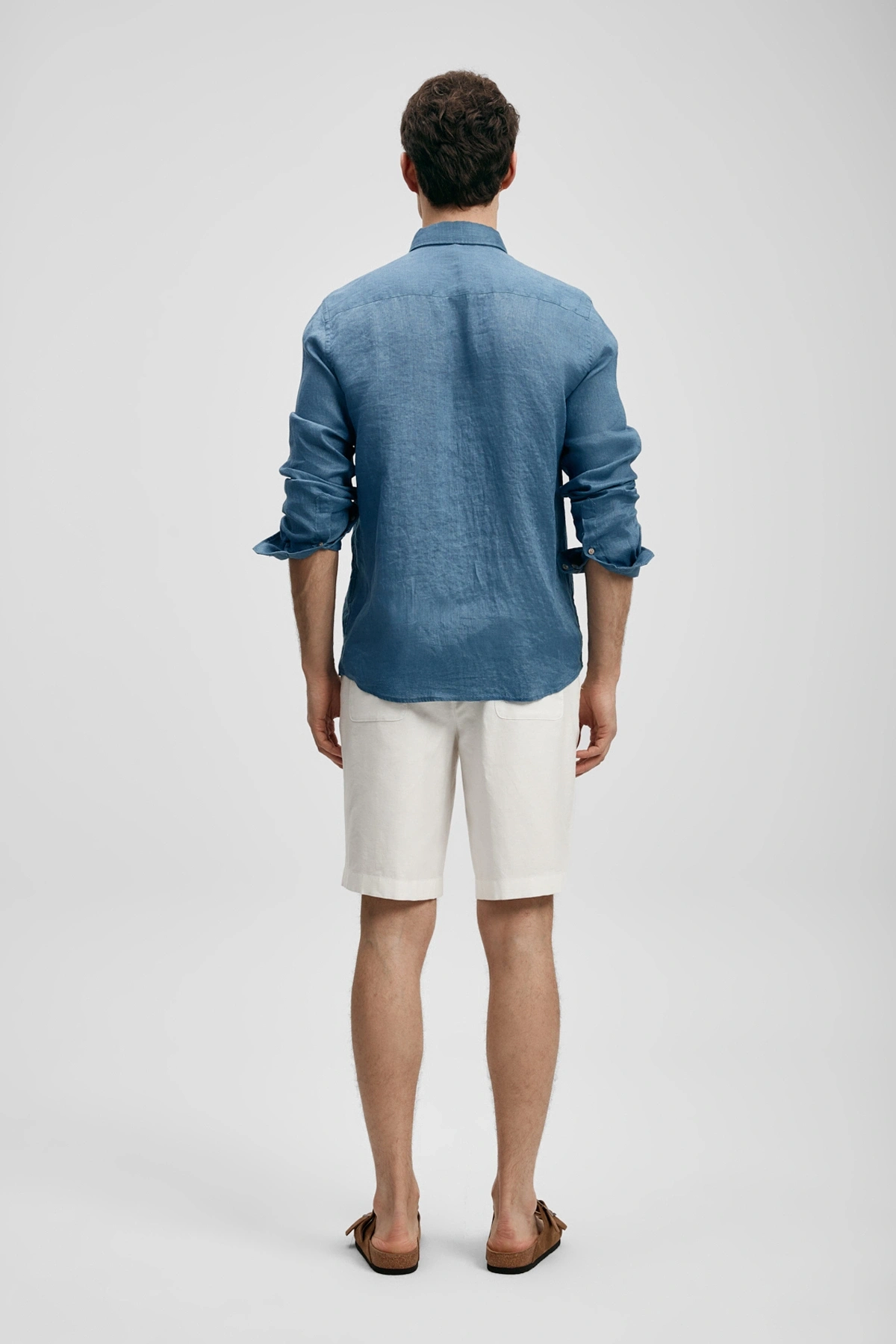 Lufian Pitaya Erkek Keten Gömlek Comfort Fit İndigo