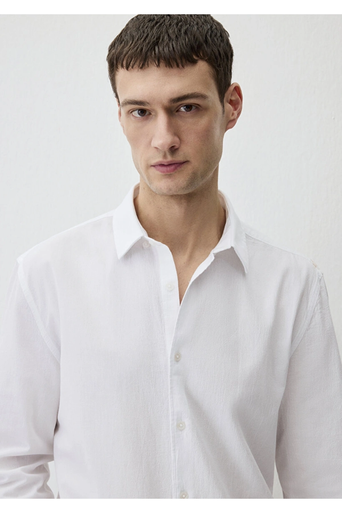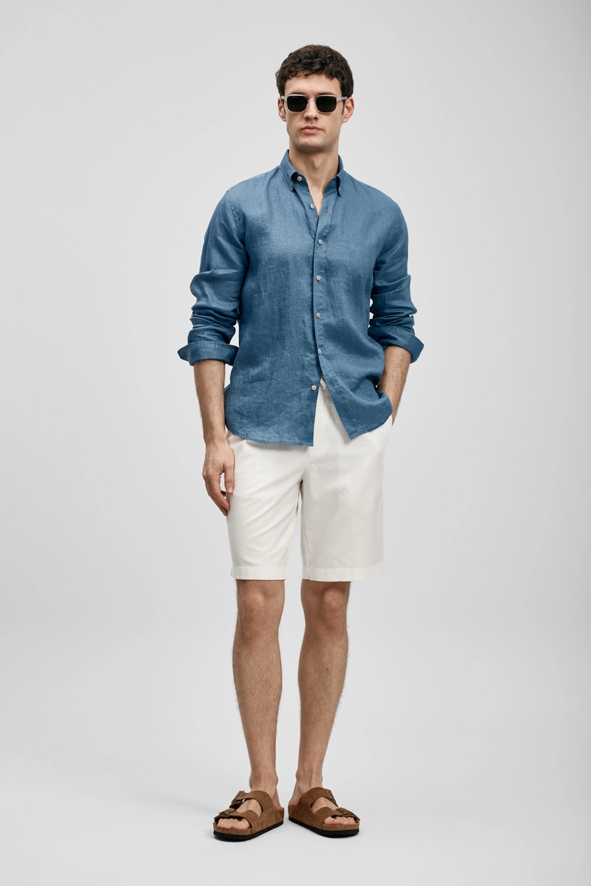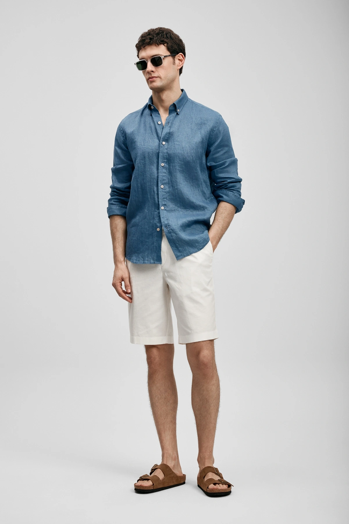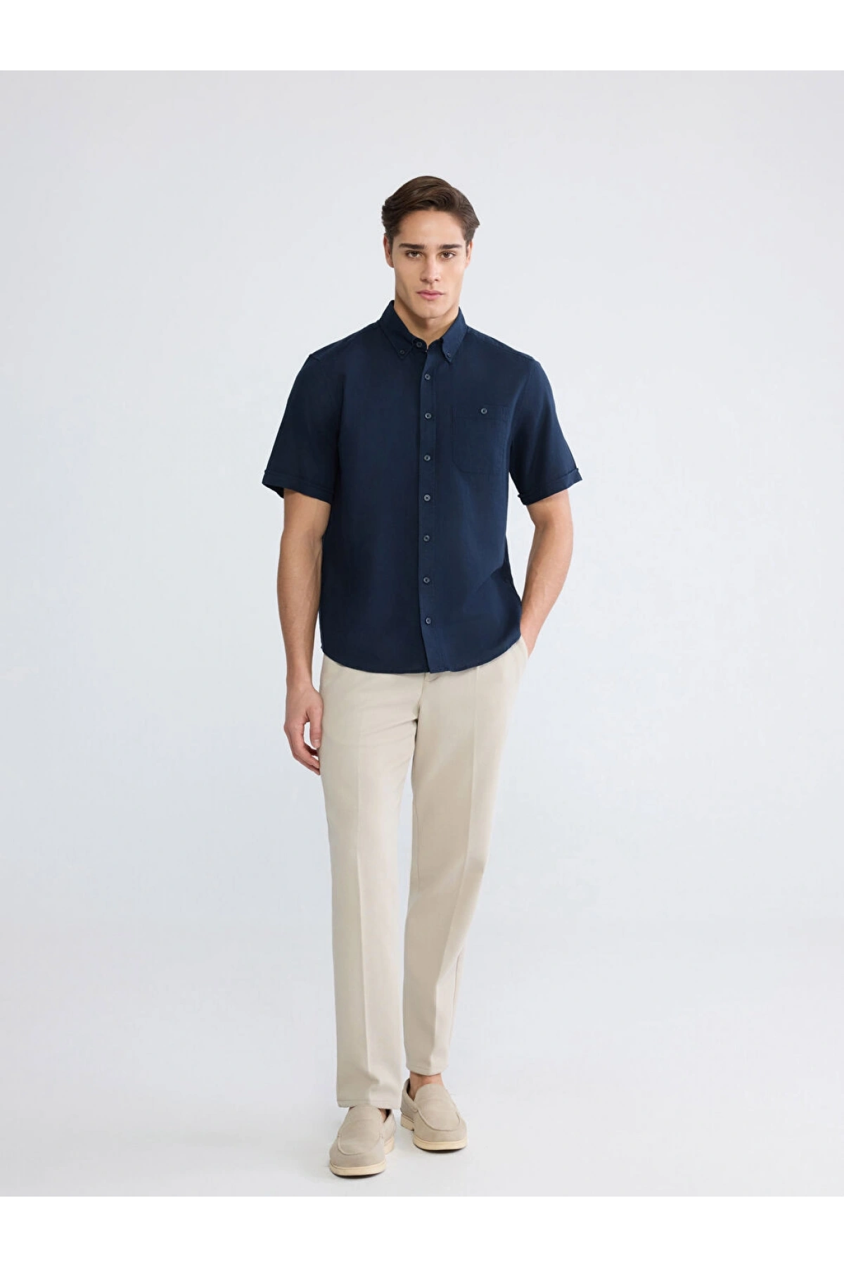 Lufian Pitaya Erkek Keten Gömlek Comfort Fit İndigo