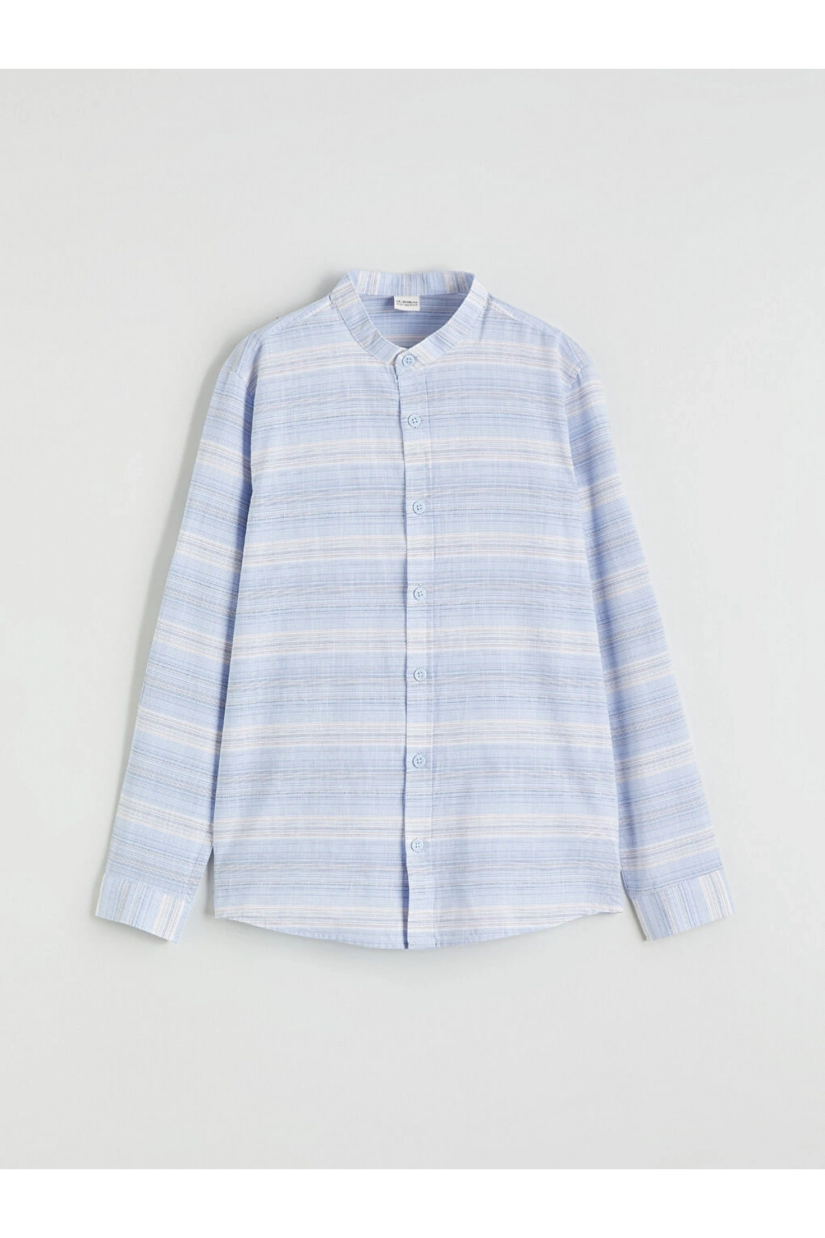 LCW Kids Mavi Hakim Yaka Çizgili Erkek Çocuk Gömlek