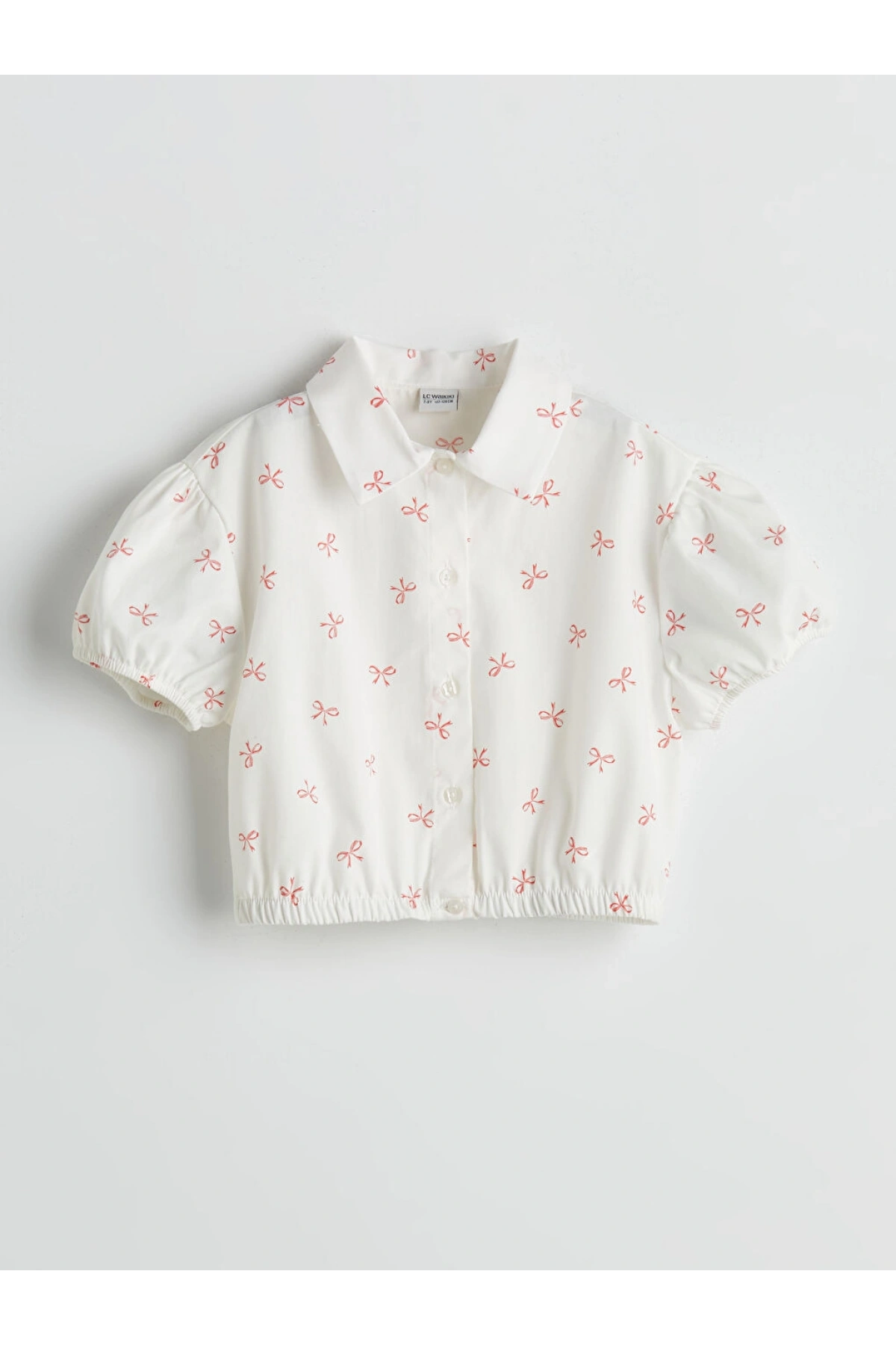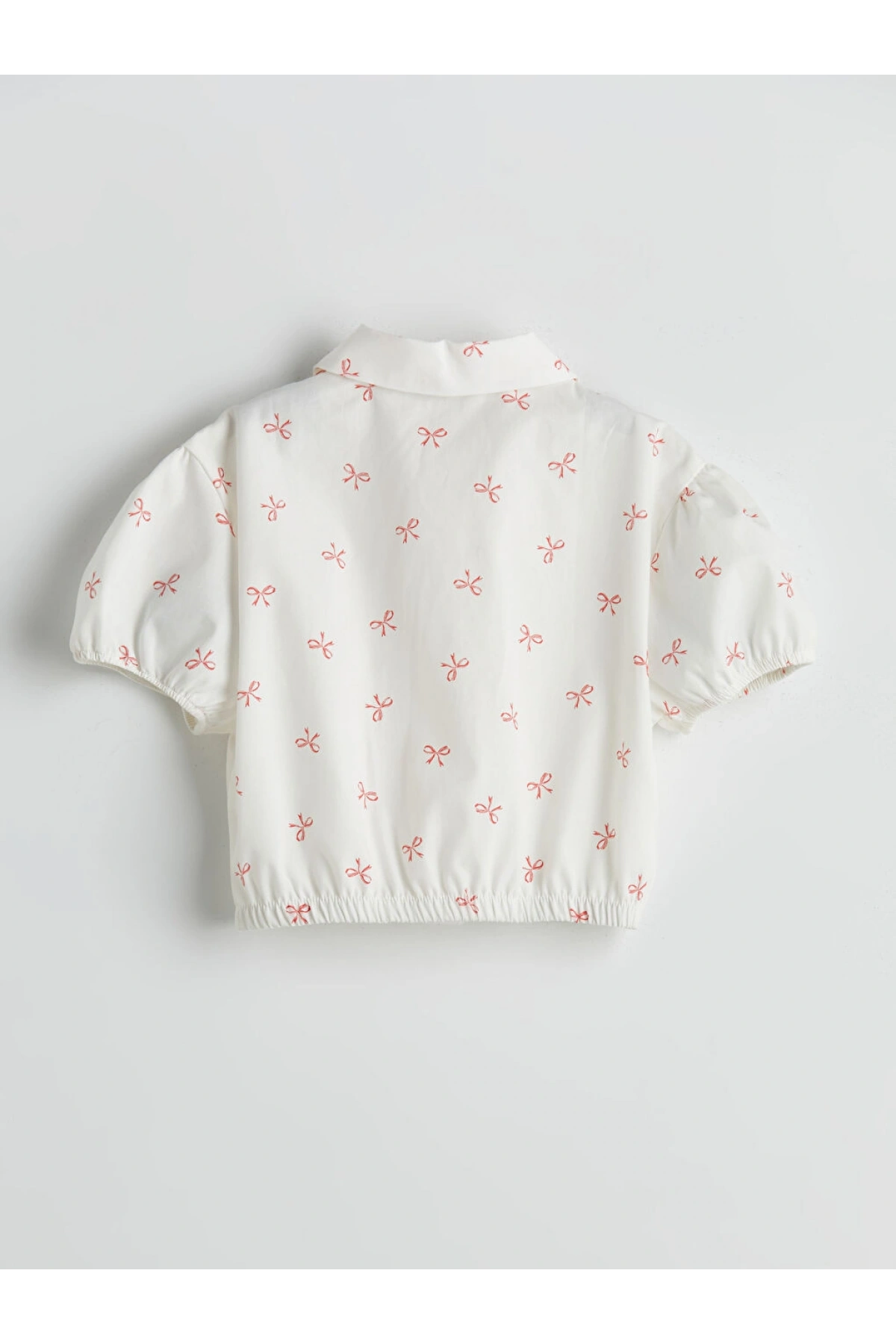 LCW Kids Ekru Fiyonk Baskılı Kız Çocuk Crop Gömlek