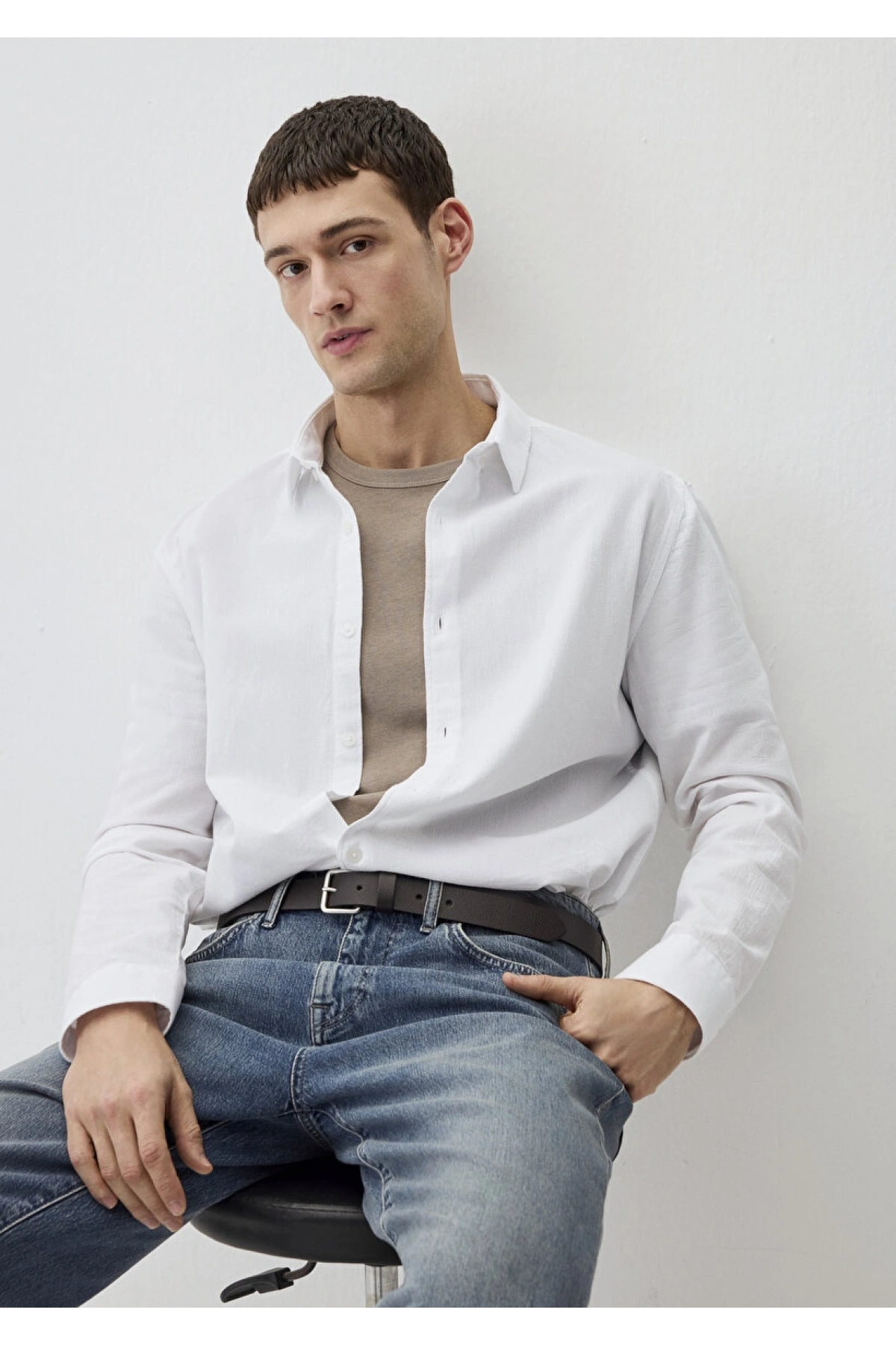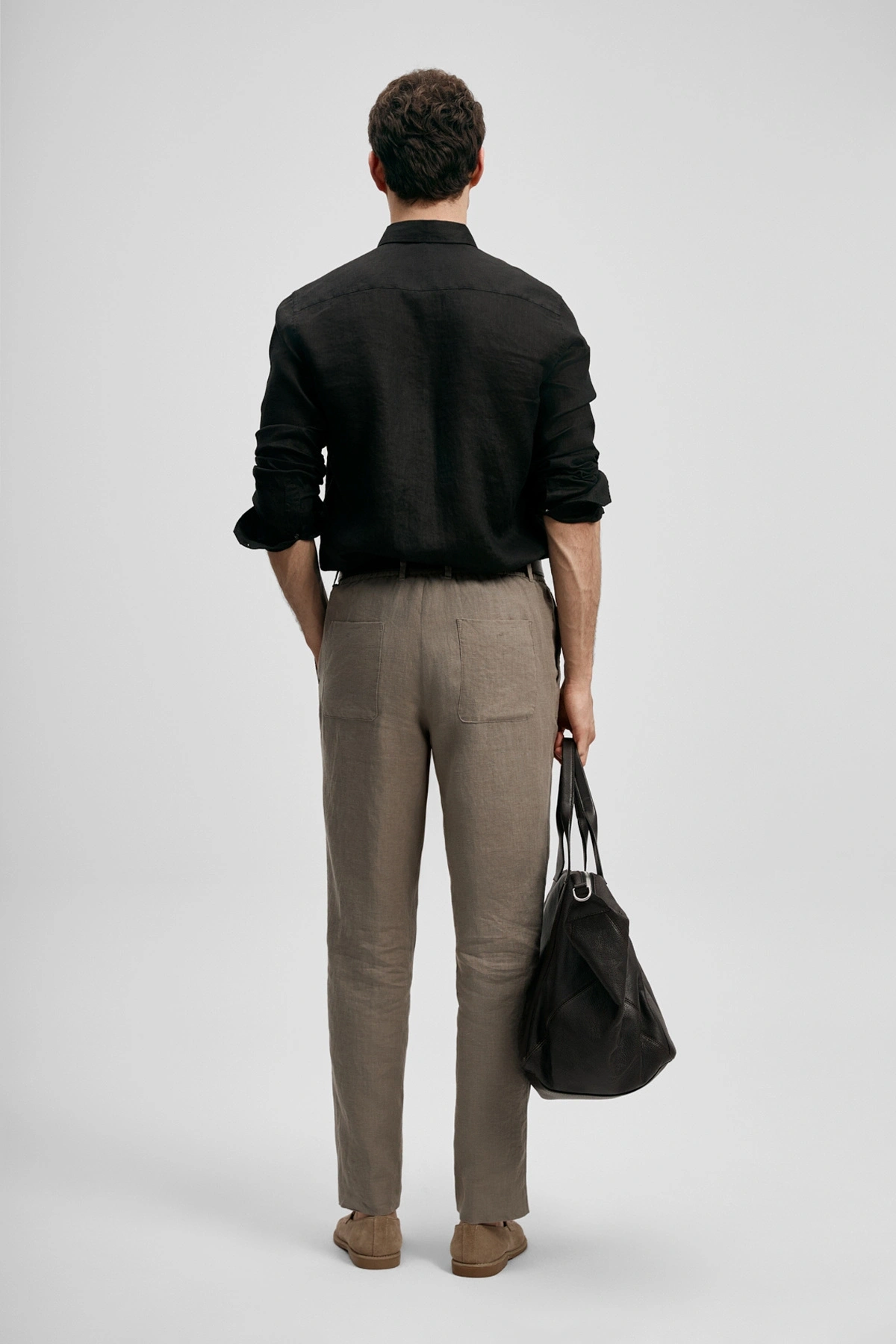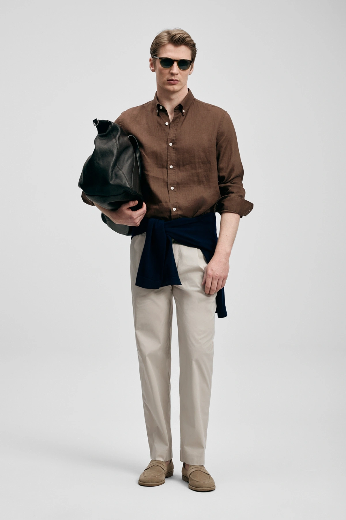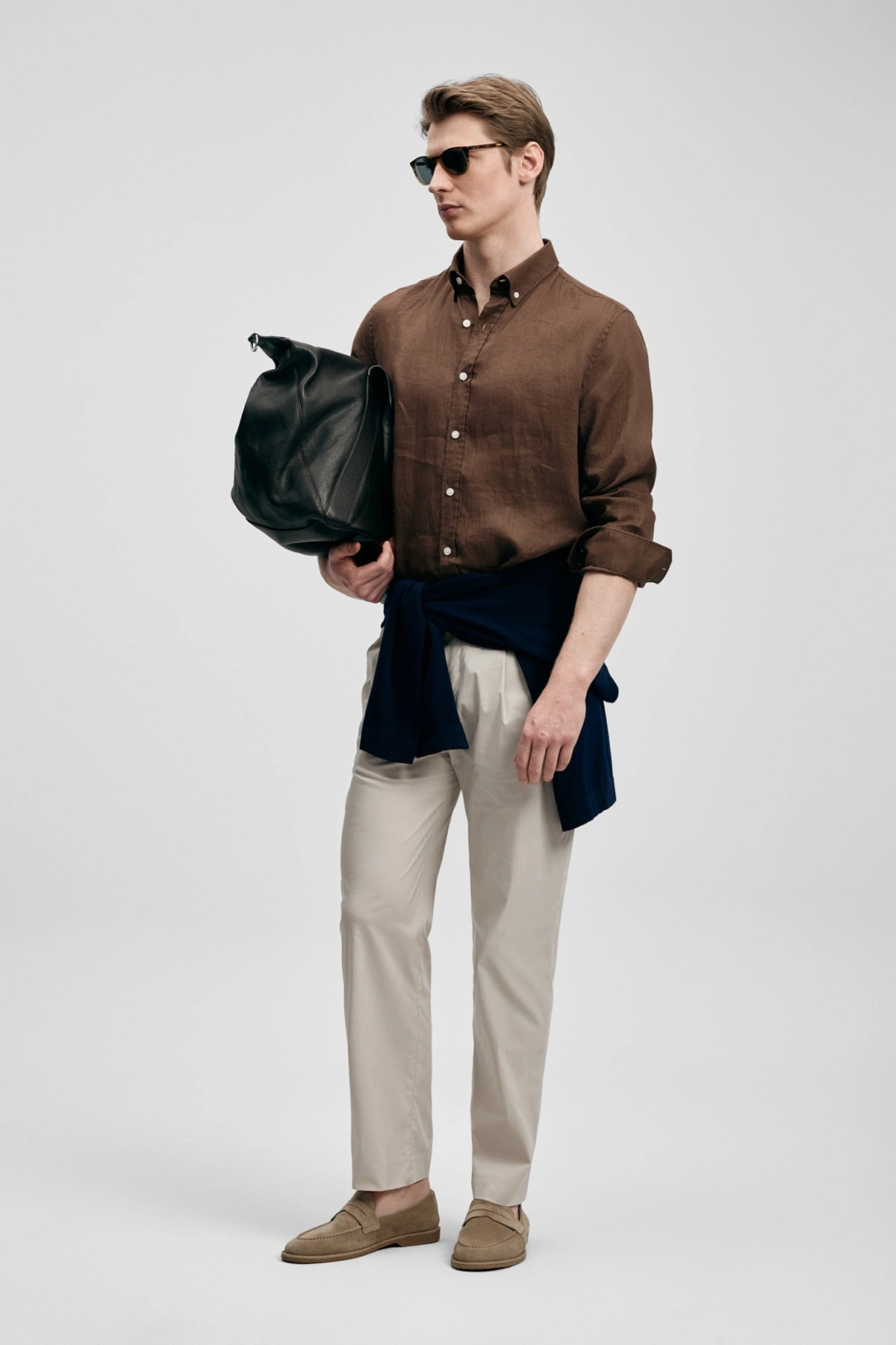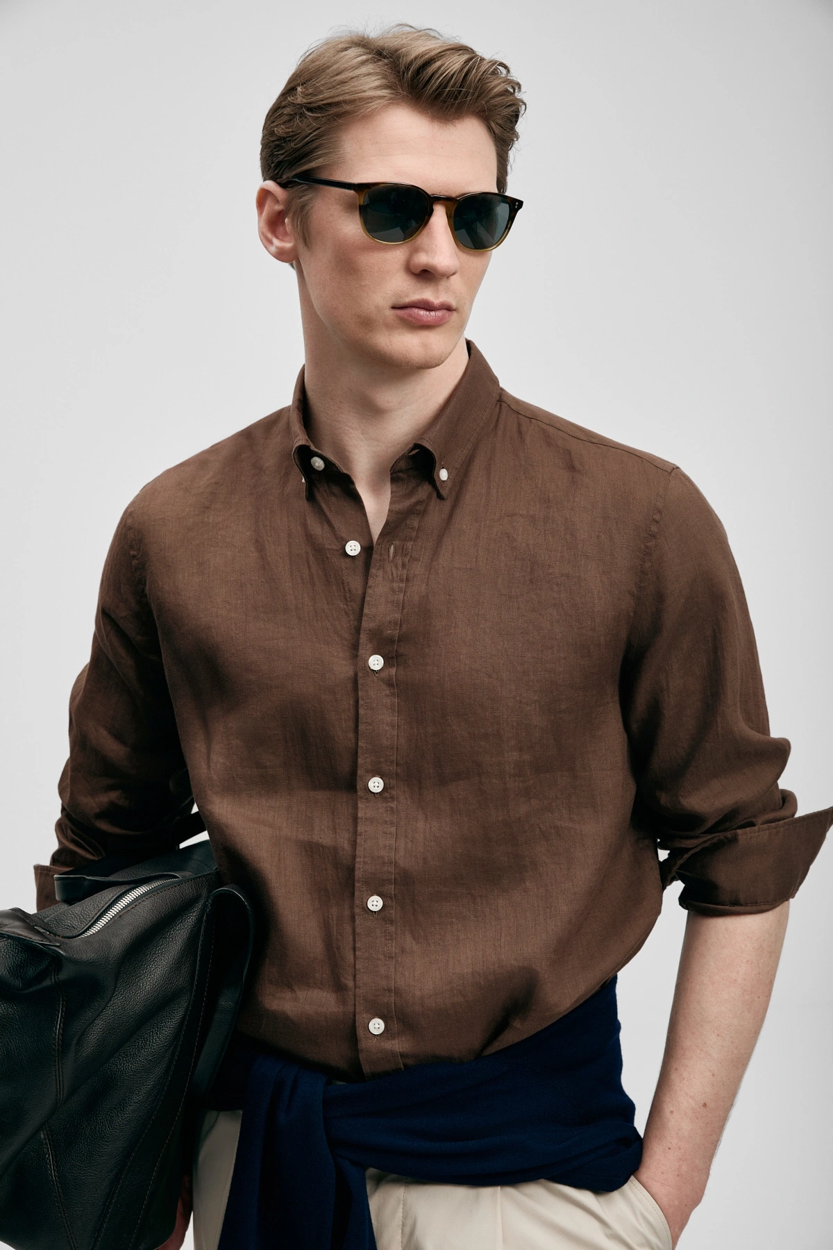 Lufian Pitaya Erkek Keten Gömlek Comfort Fit Koyu Kahve