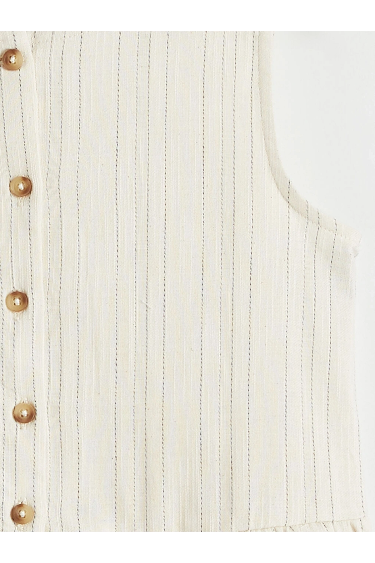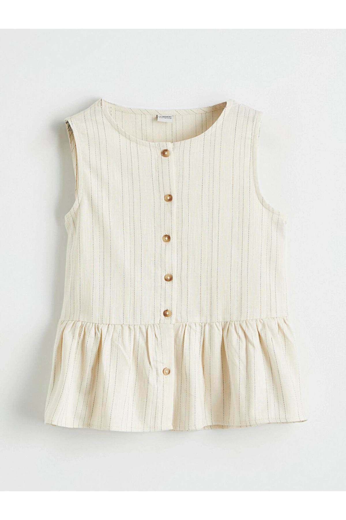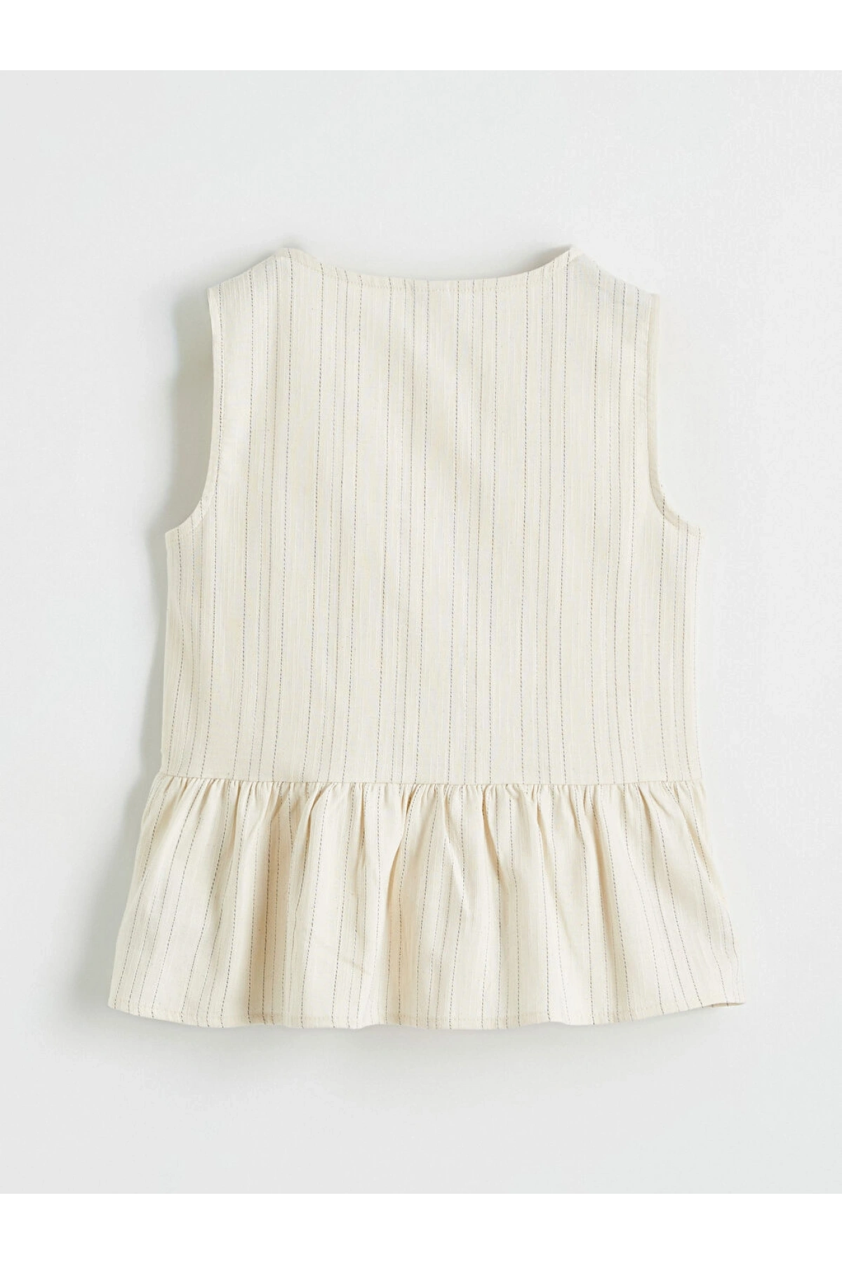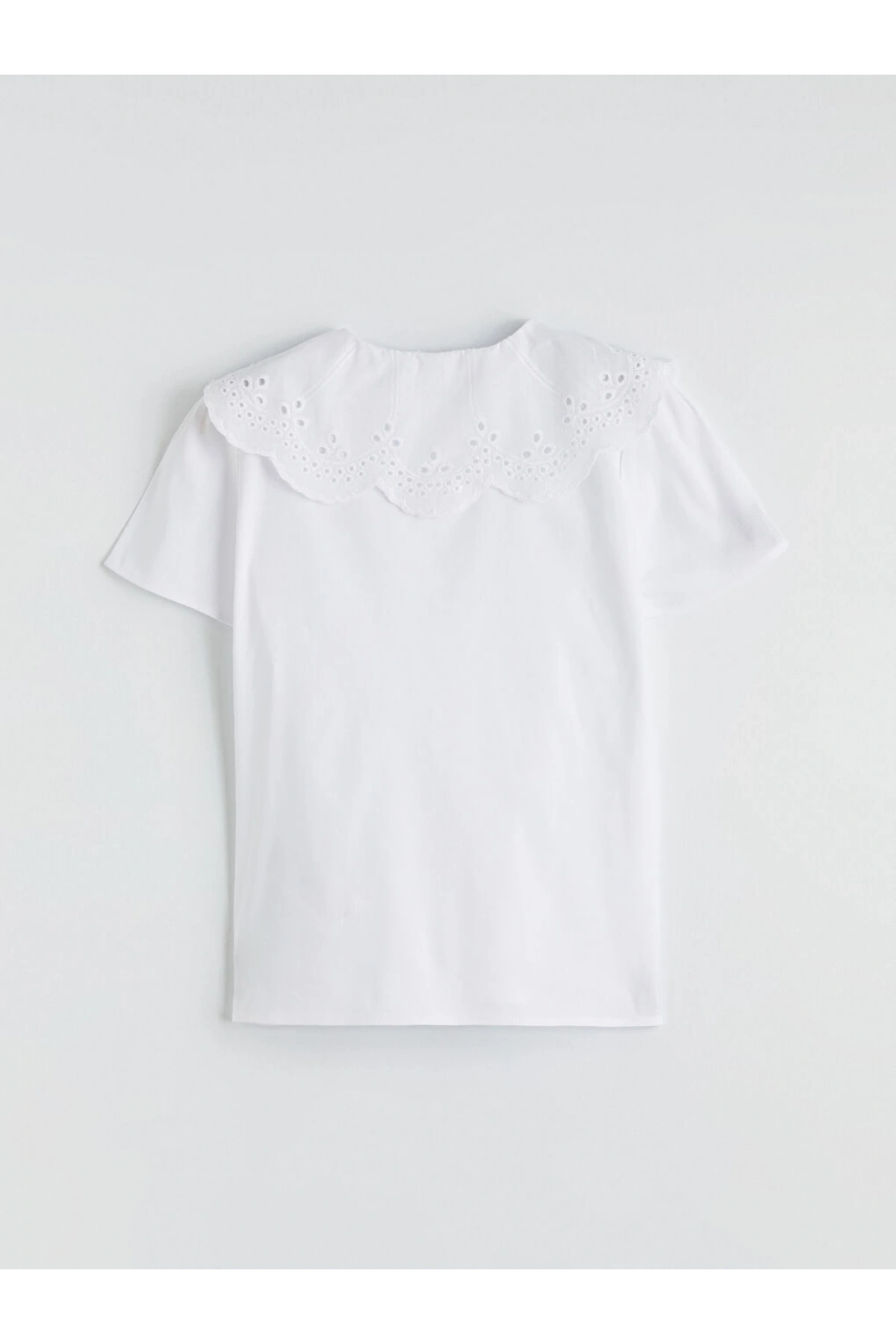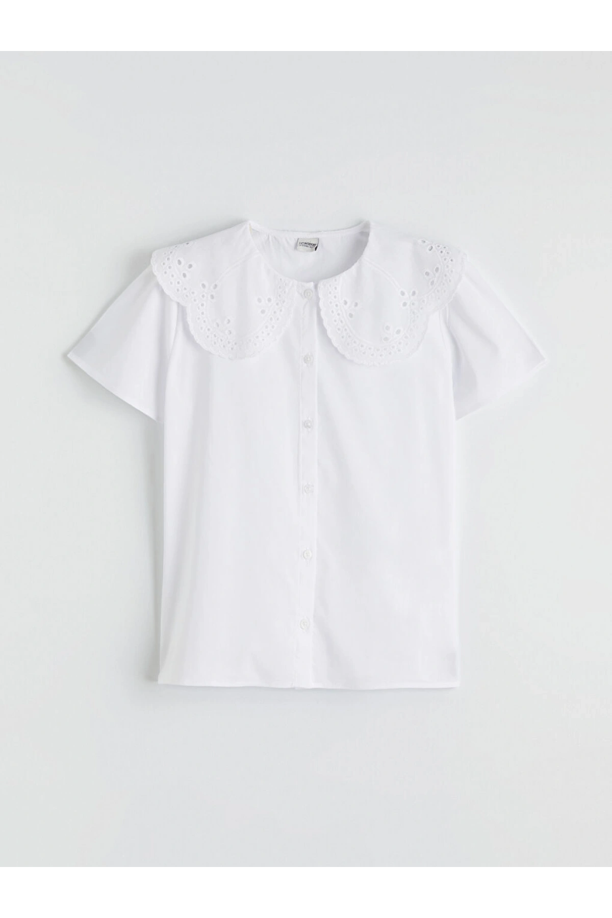 LCW Kids Ekru Bisiklet Yaka Fırfır Detaylı Kız Çocuk Gömlek