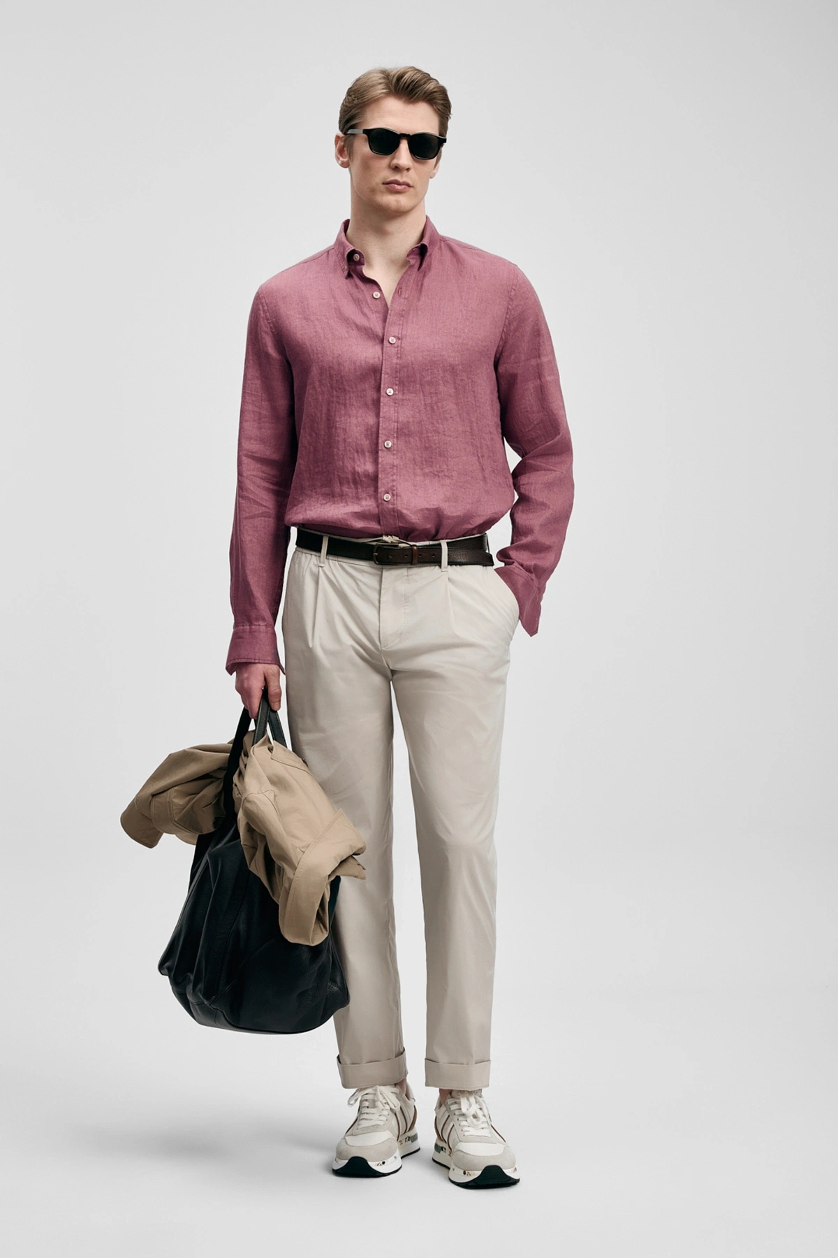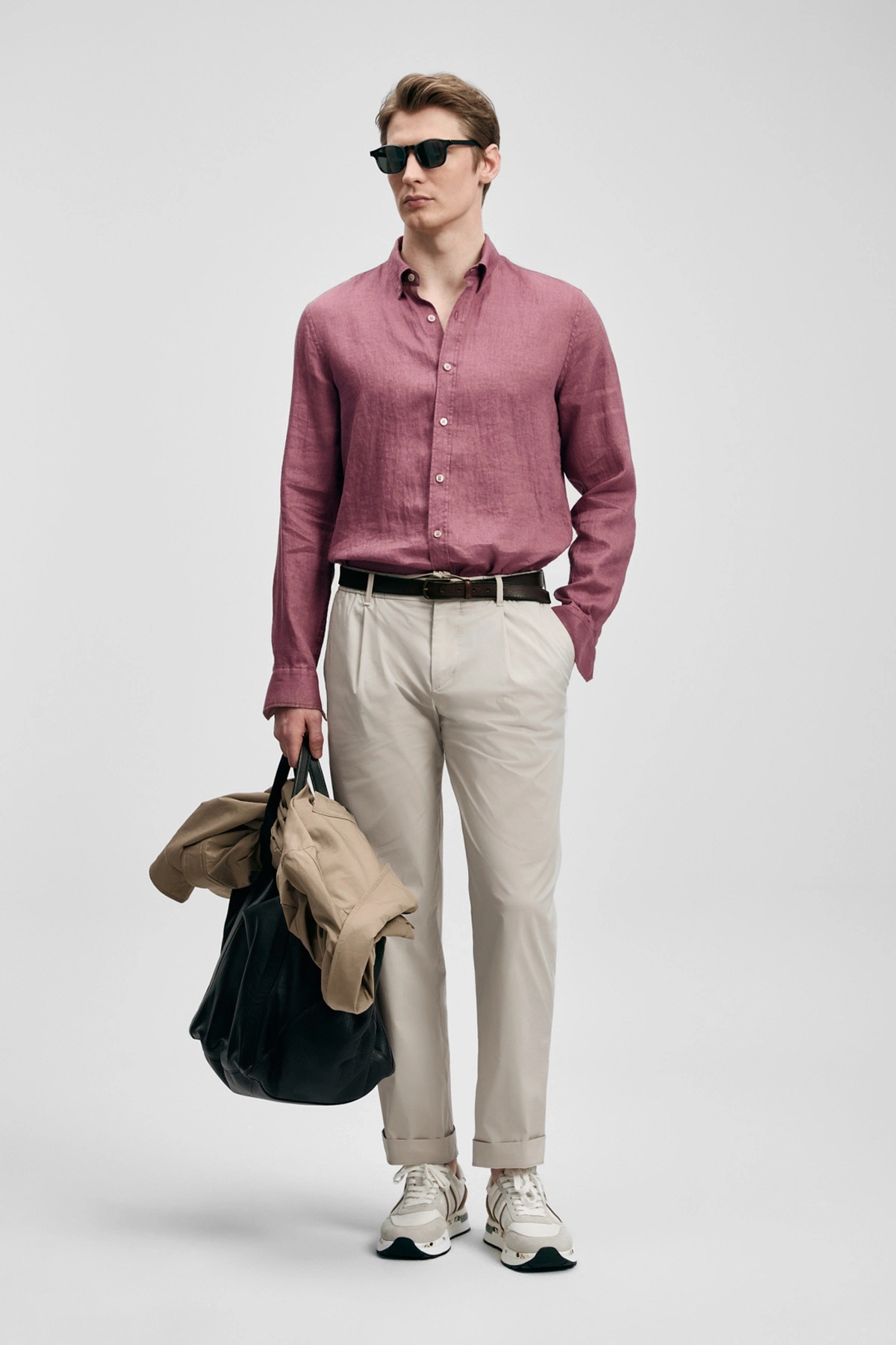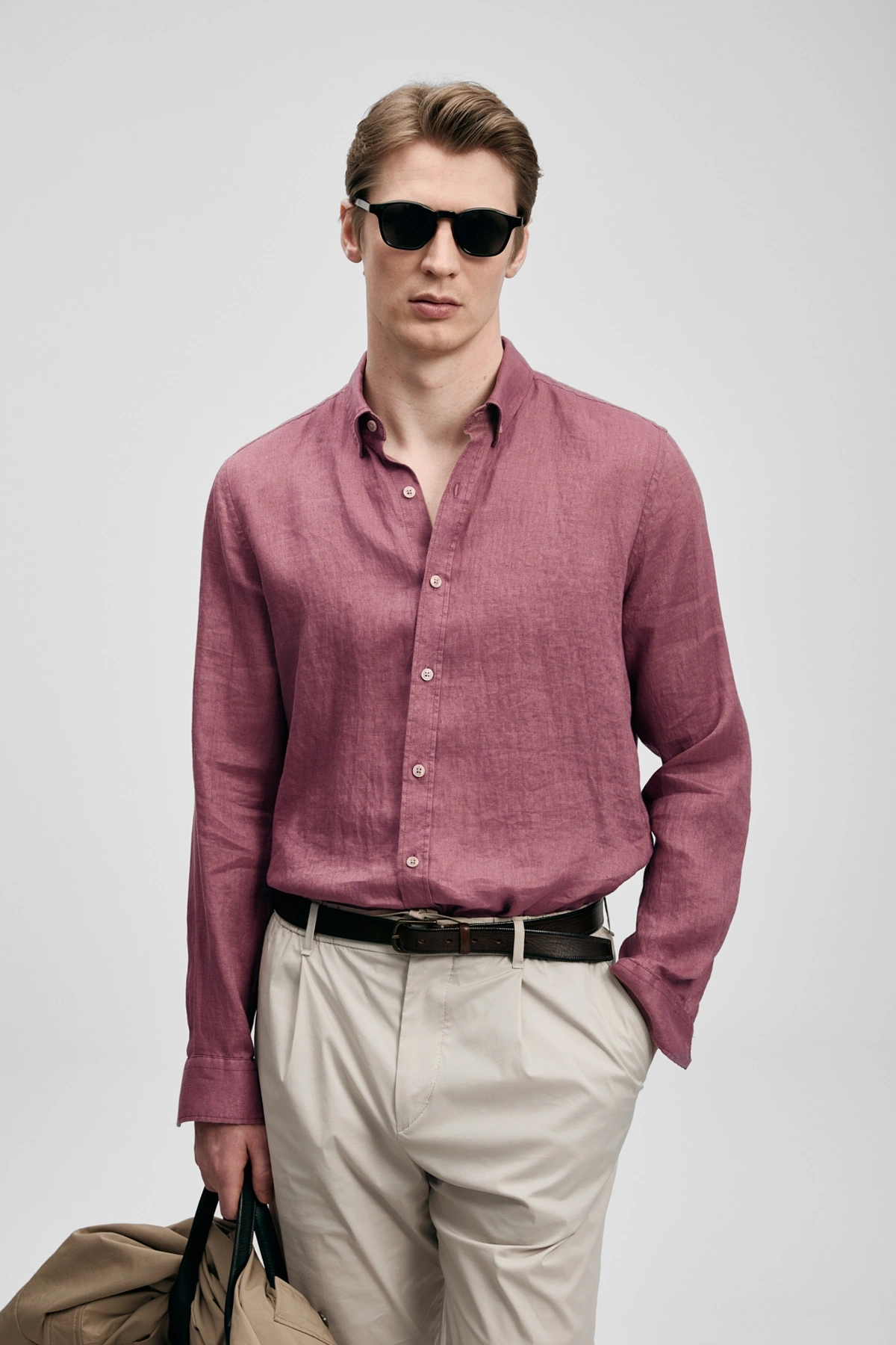Lufian Pitaya Erkek Keten Gömlek Comfort Fit Gül Kurusu