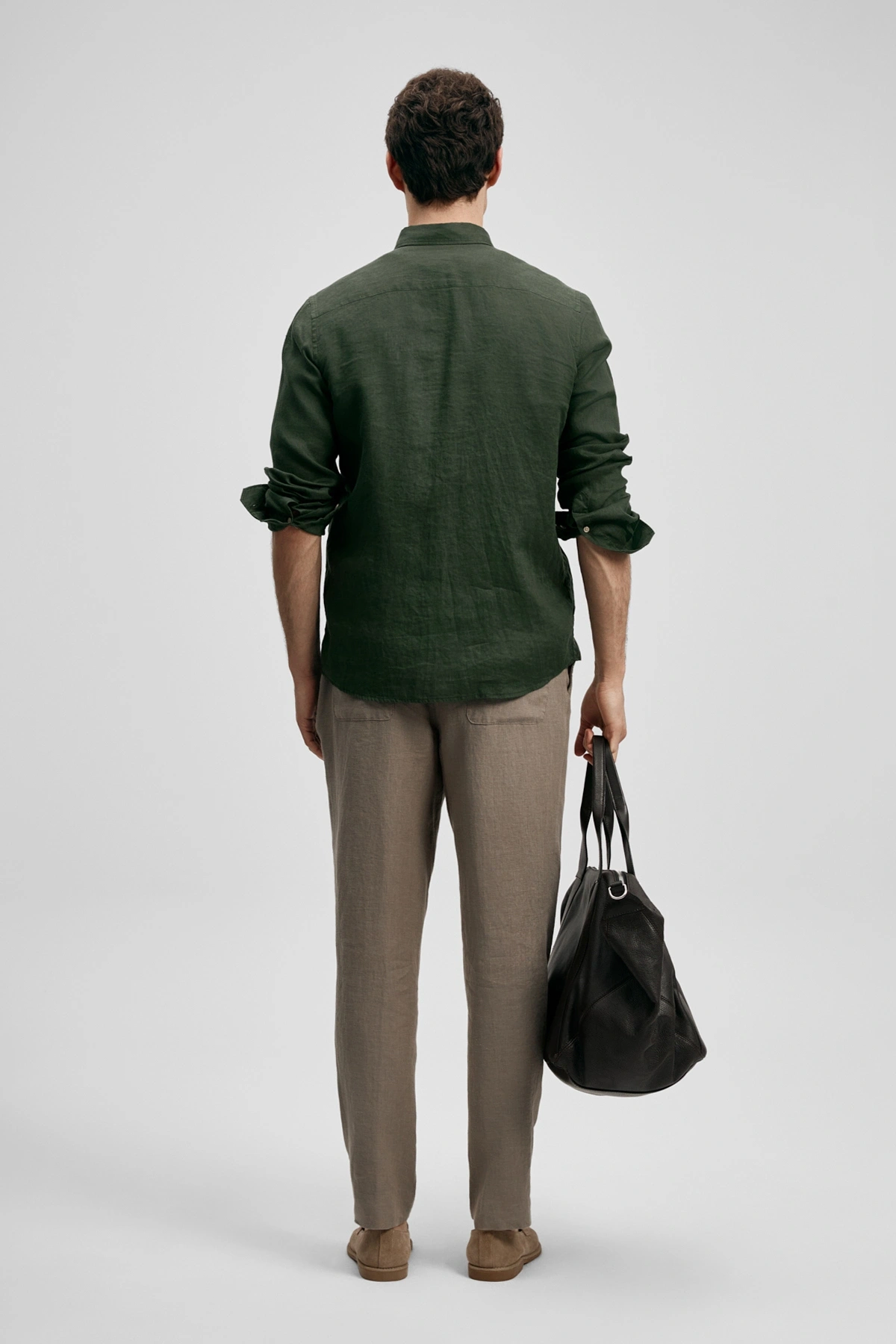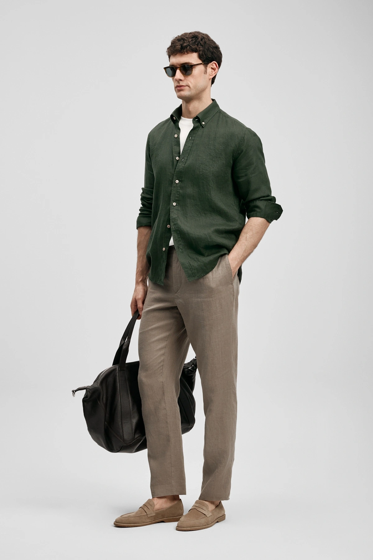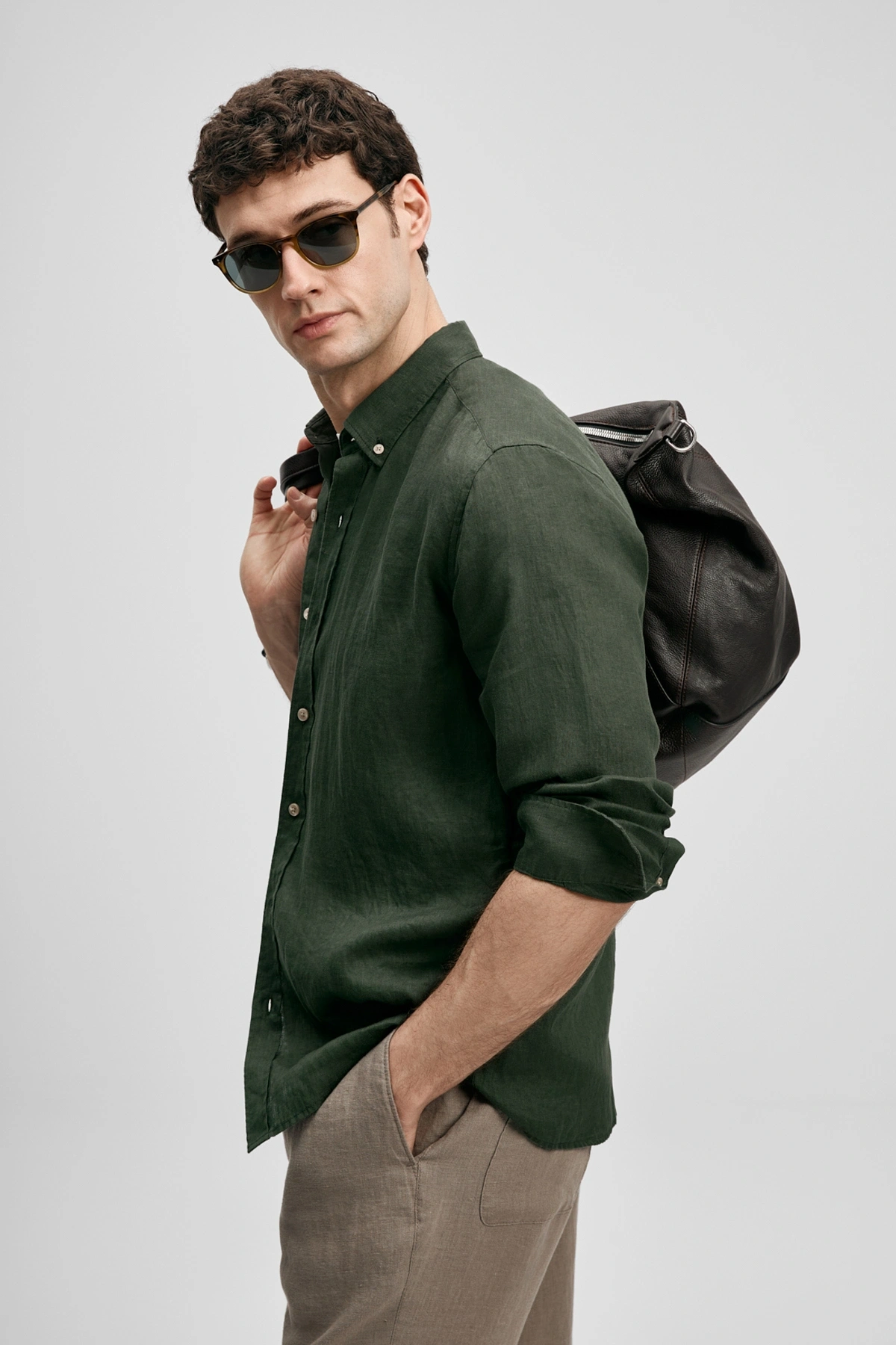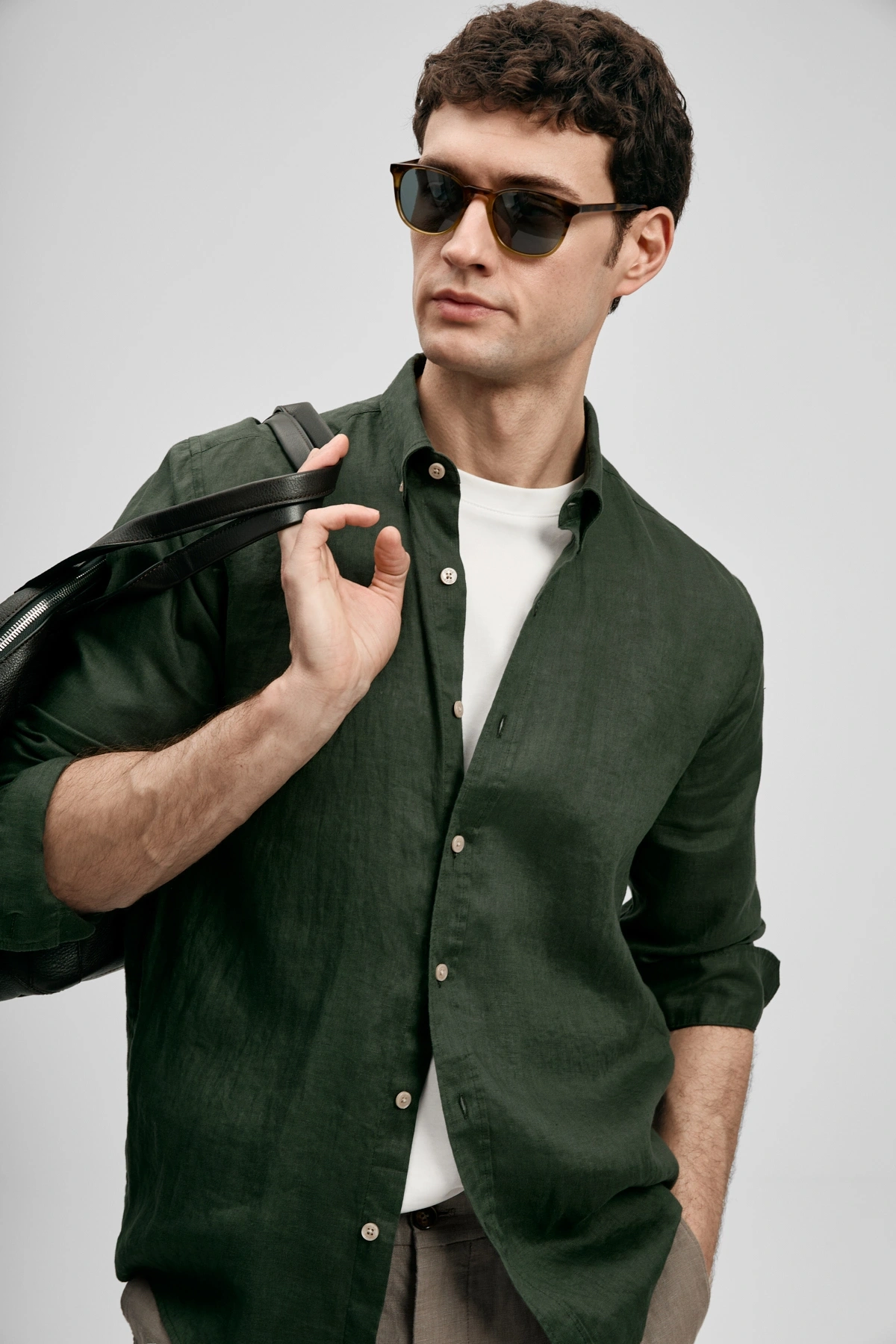 Lufian Pitaya Erkek Keten Gömlek Comfort Fit Koyu Yeşil