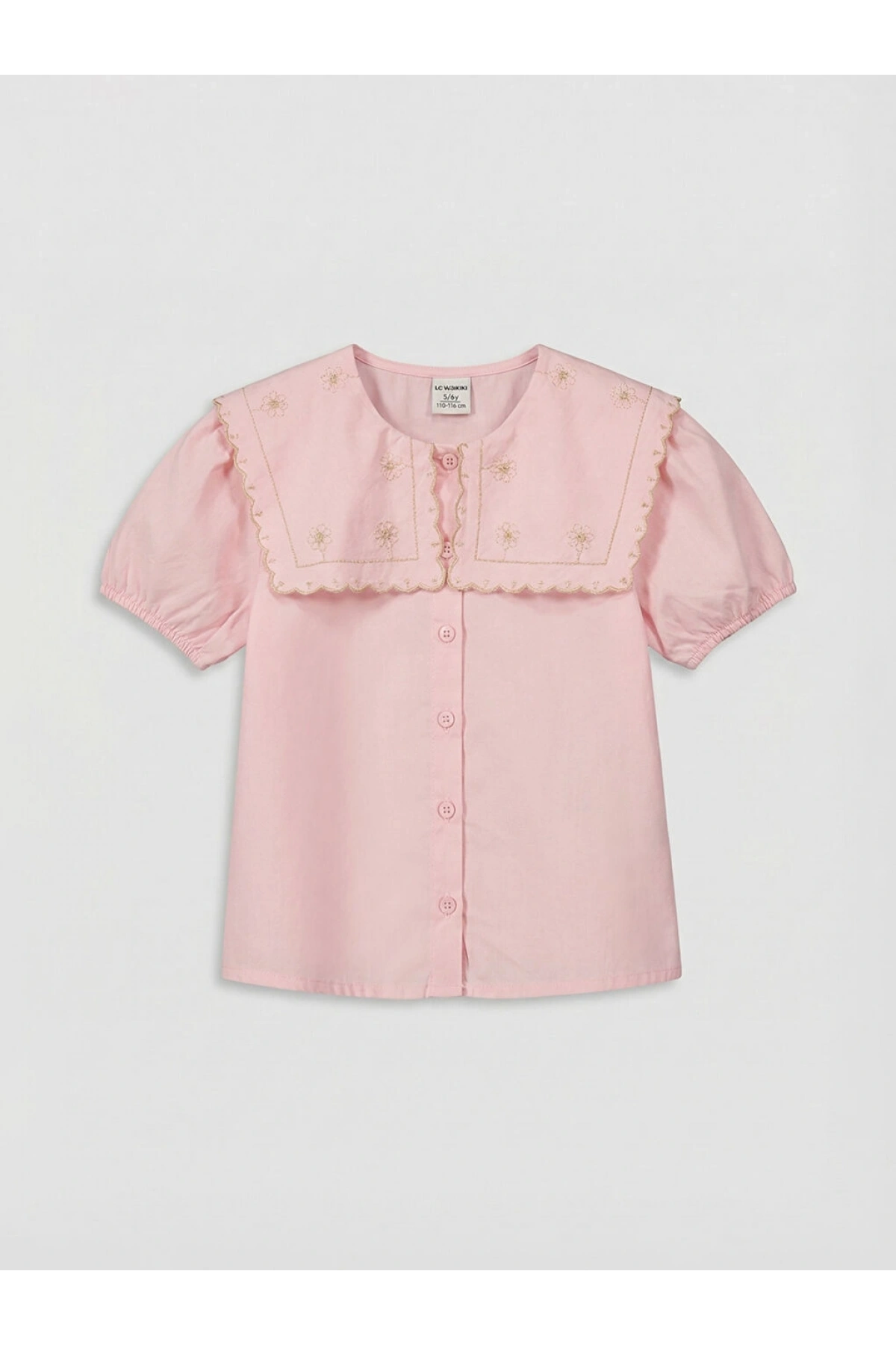 LCW Kids Pembe Nakışlı Kısa Kollu Kız Çocuk Gömlek