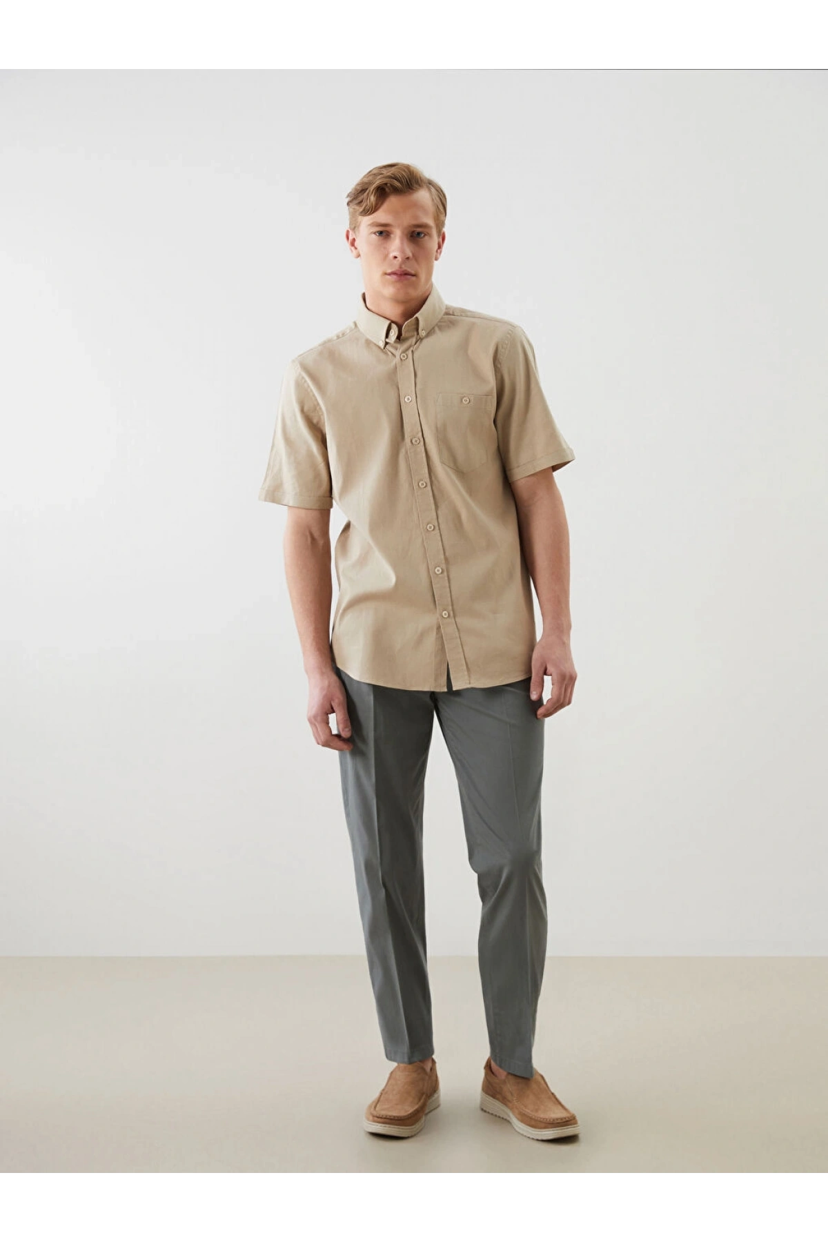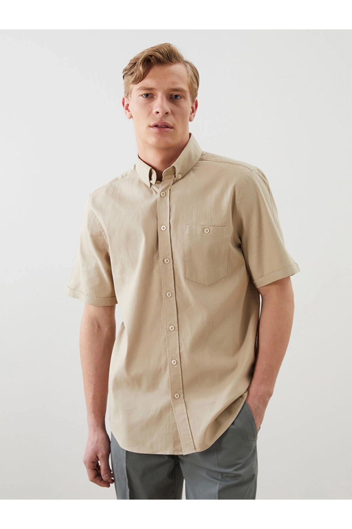 LCWAIKIKI Classic Bej Regular Fit Poplin Erkek Gömlek