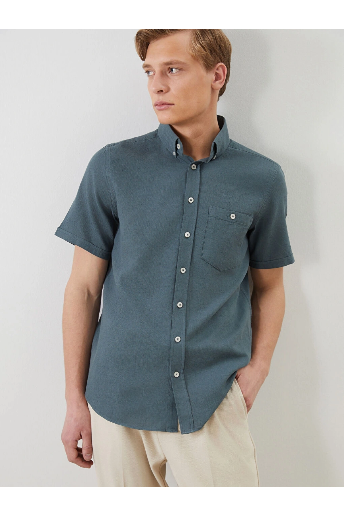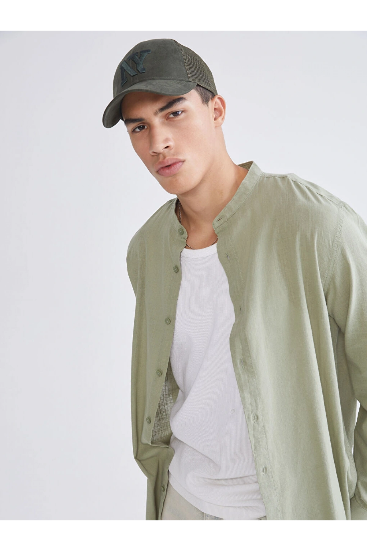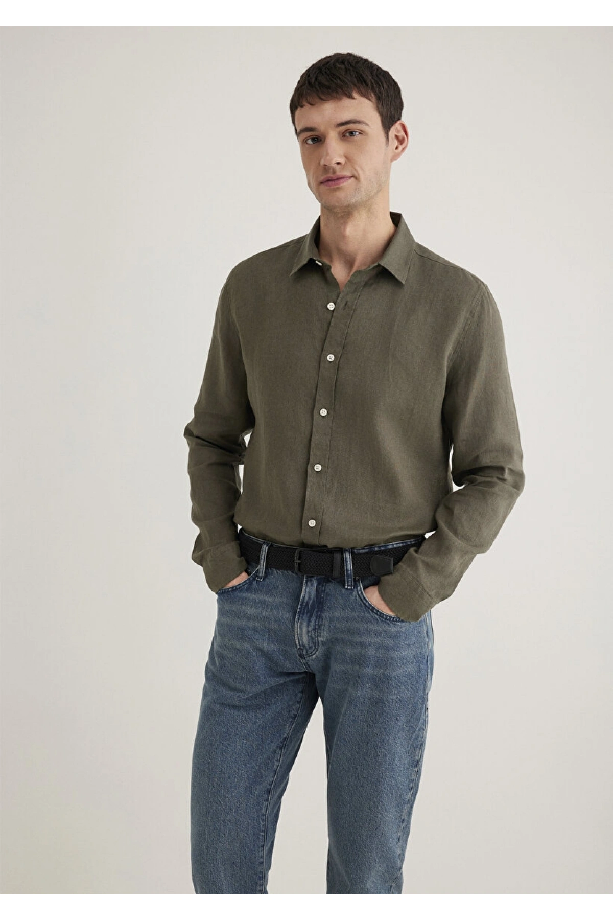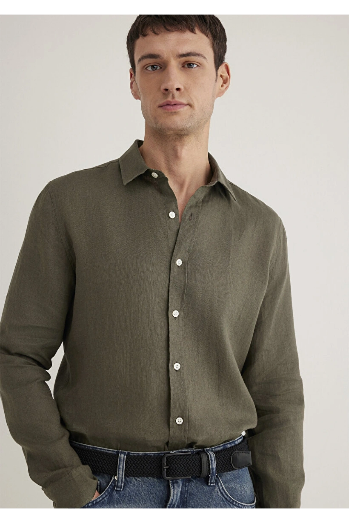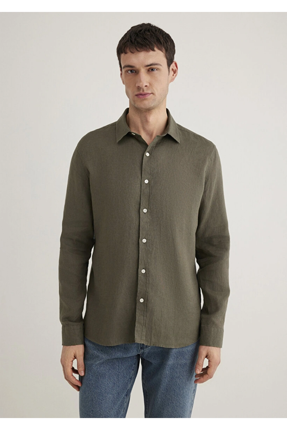 Haki Keten Gömlek