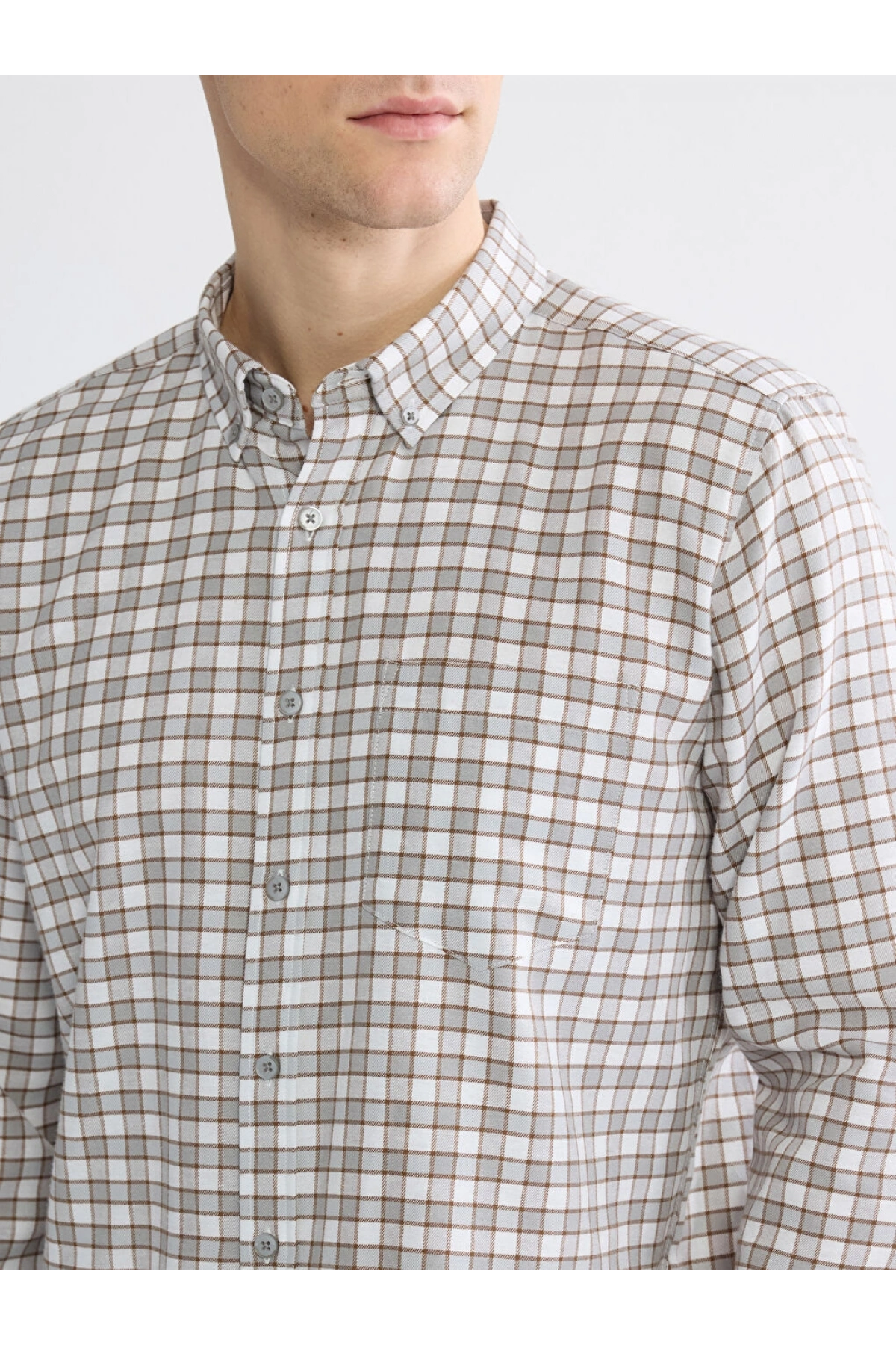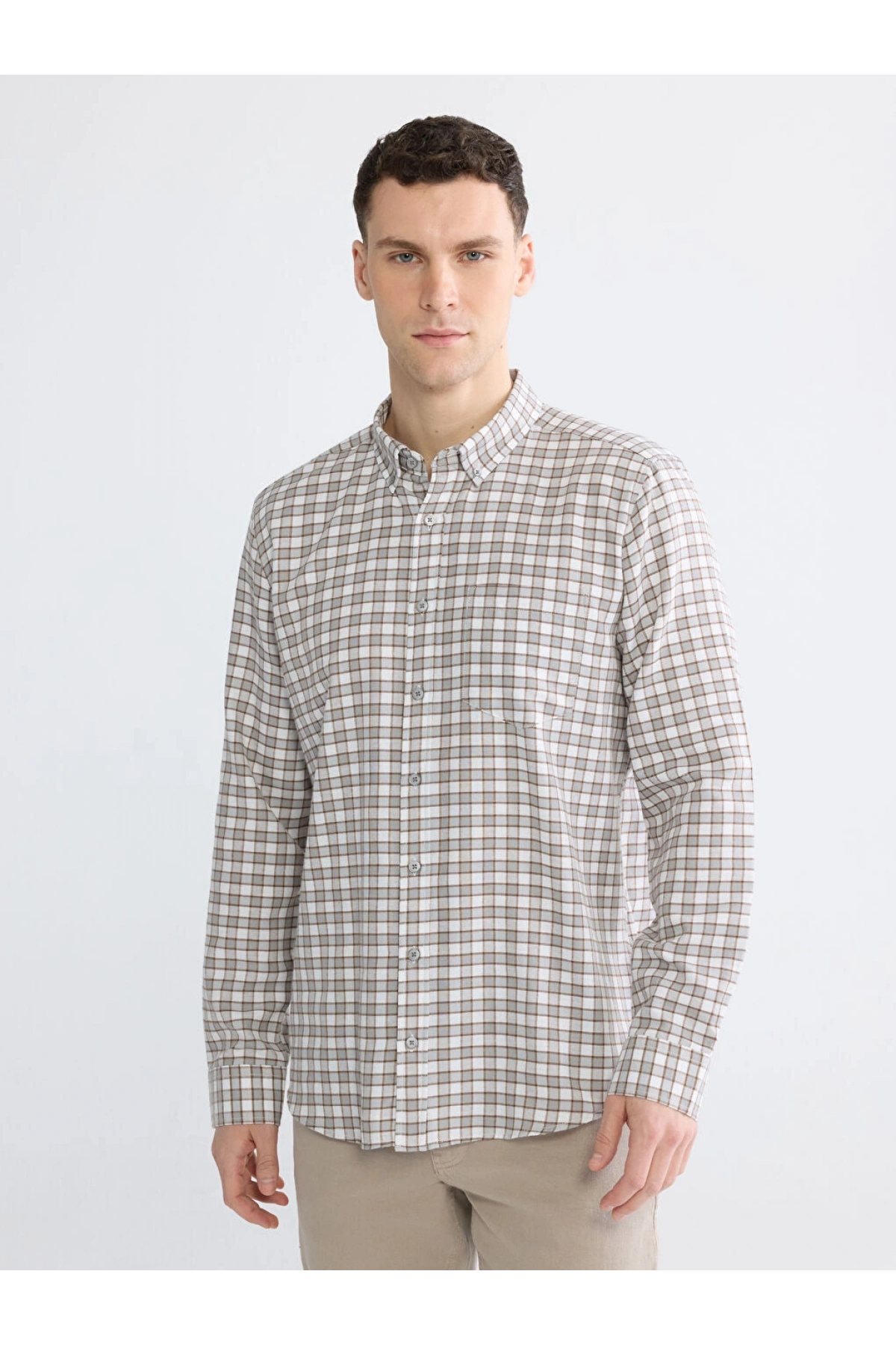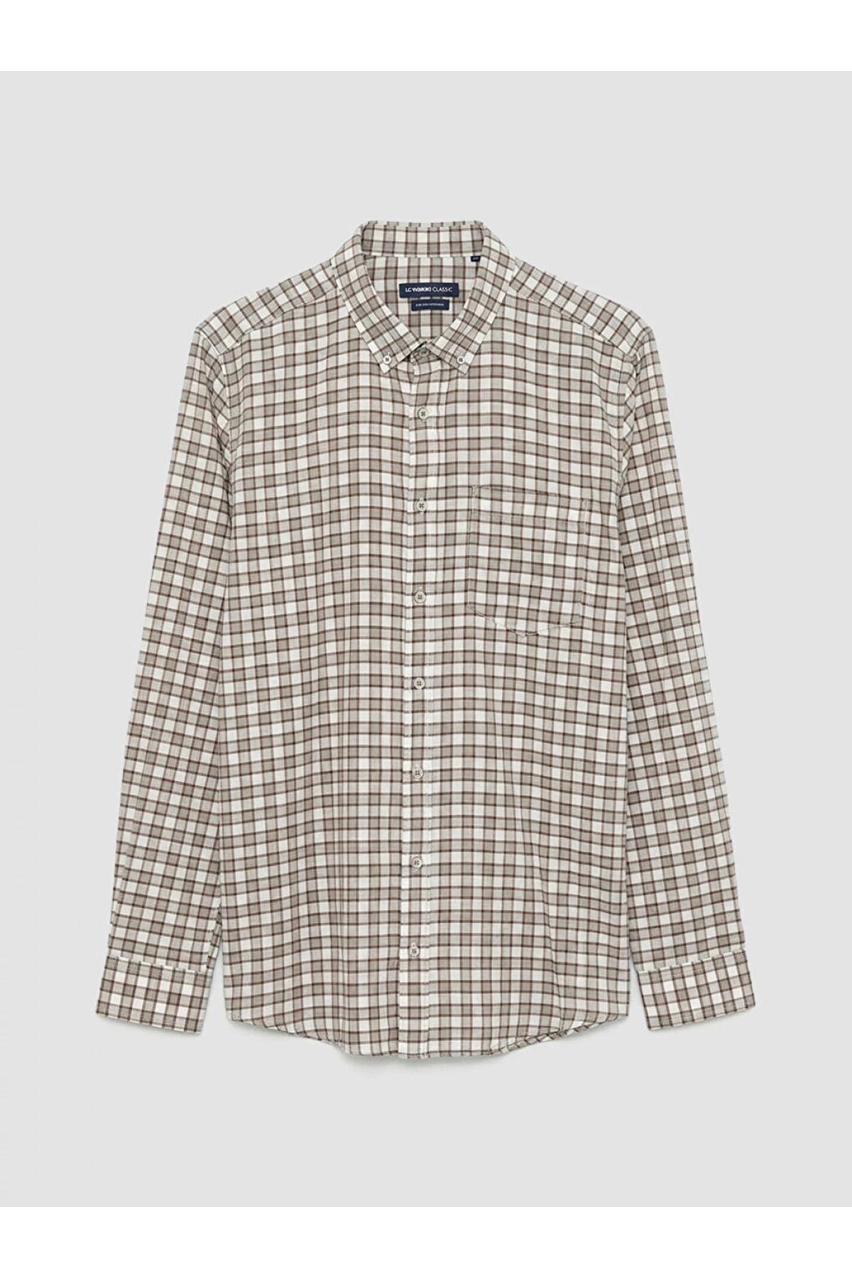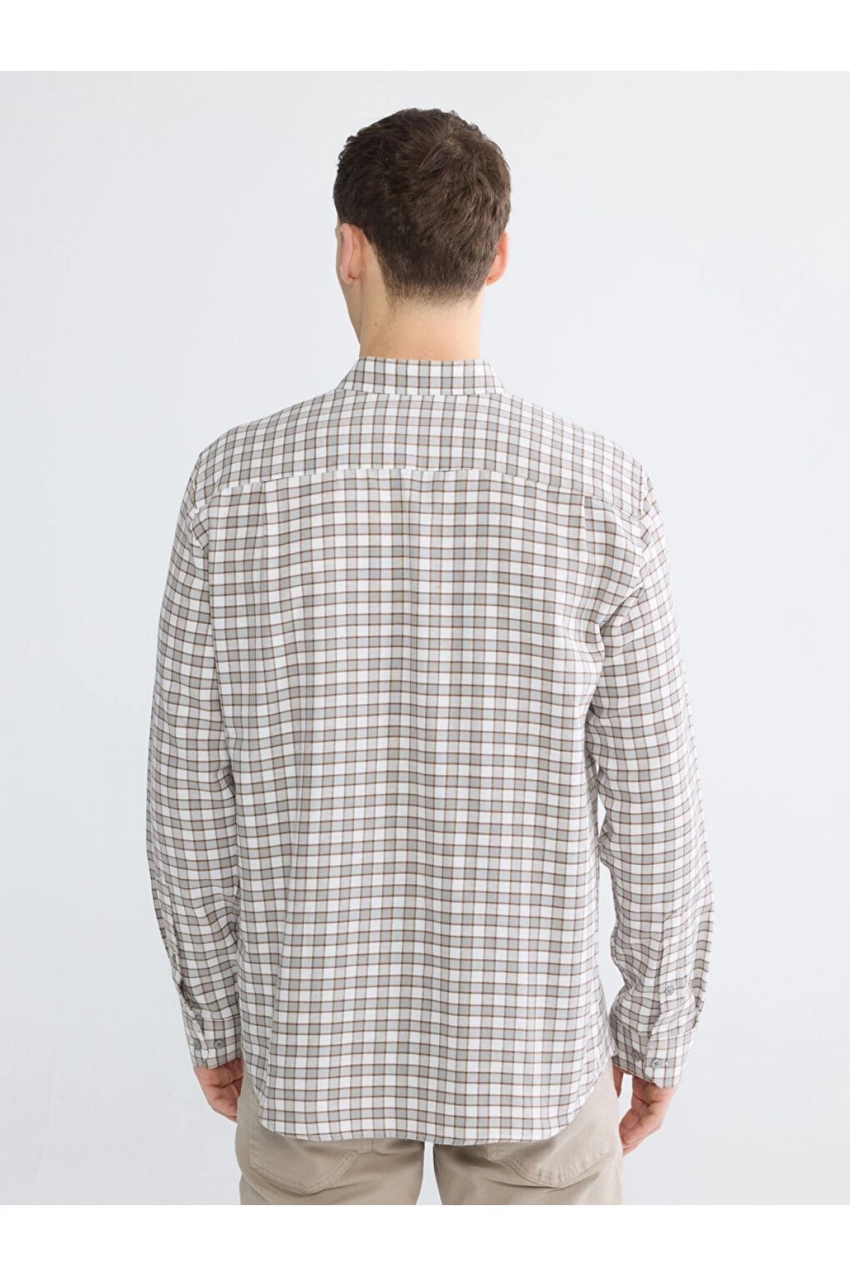 LCWAIKIKI Classic Gri Regular Fit Ekose Gabardin Erkek Gömlek