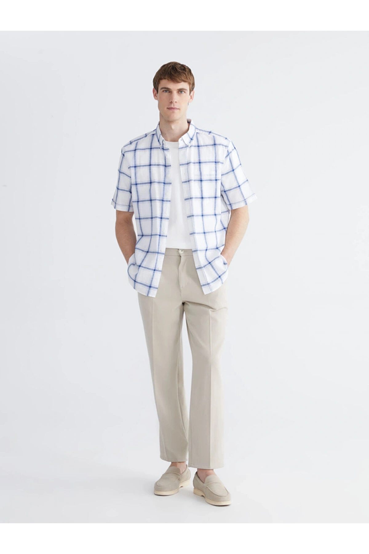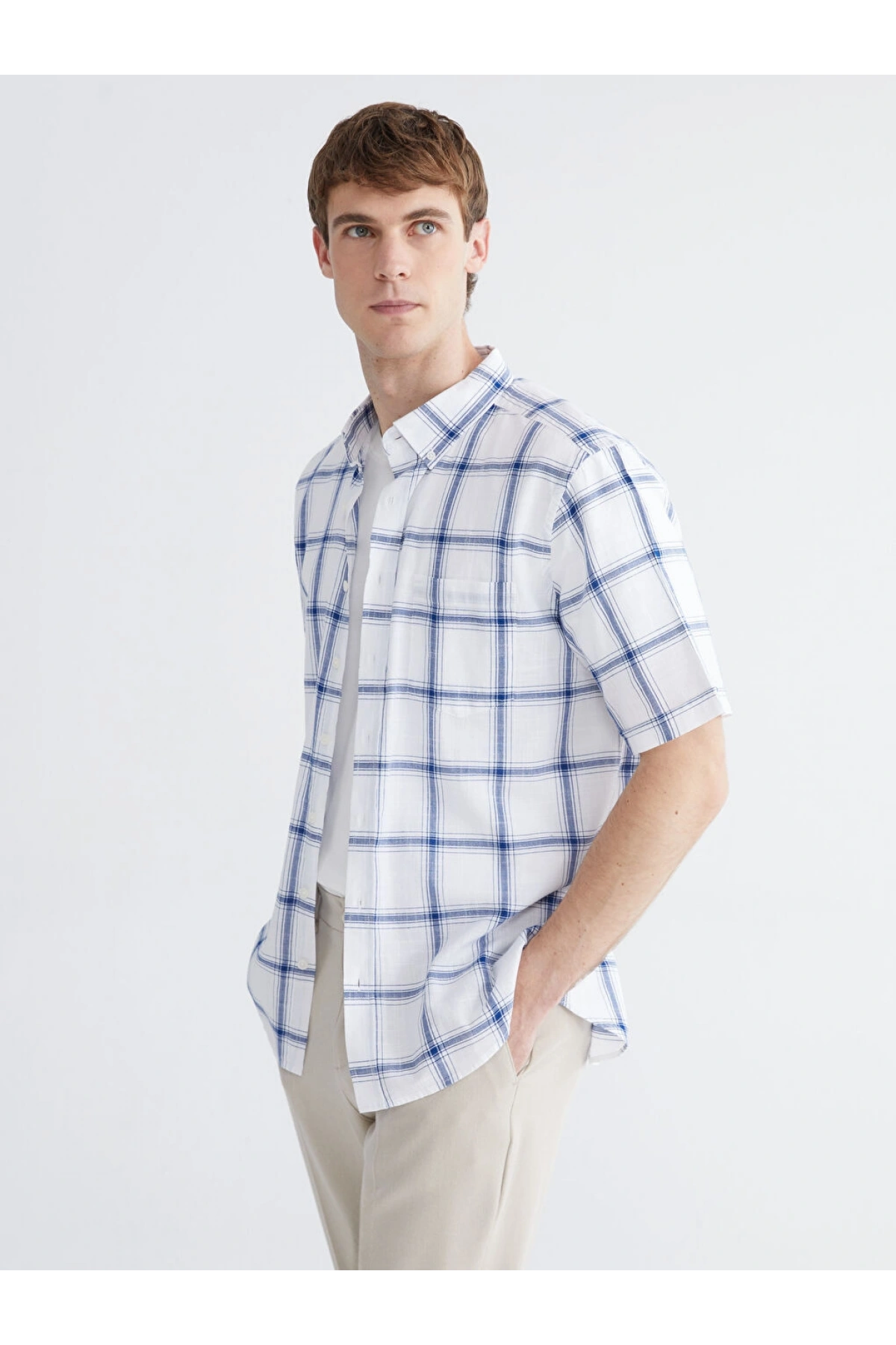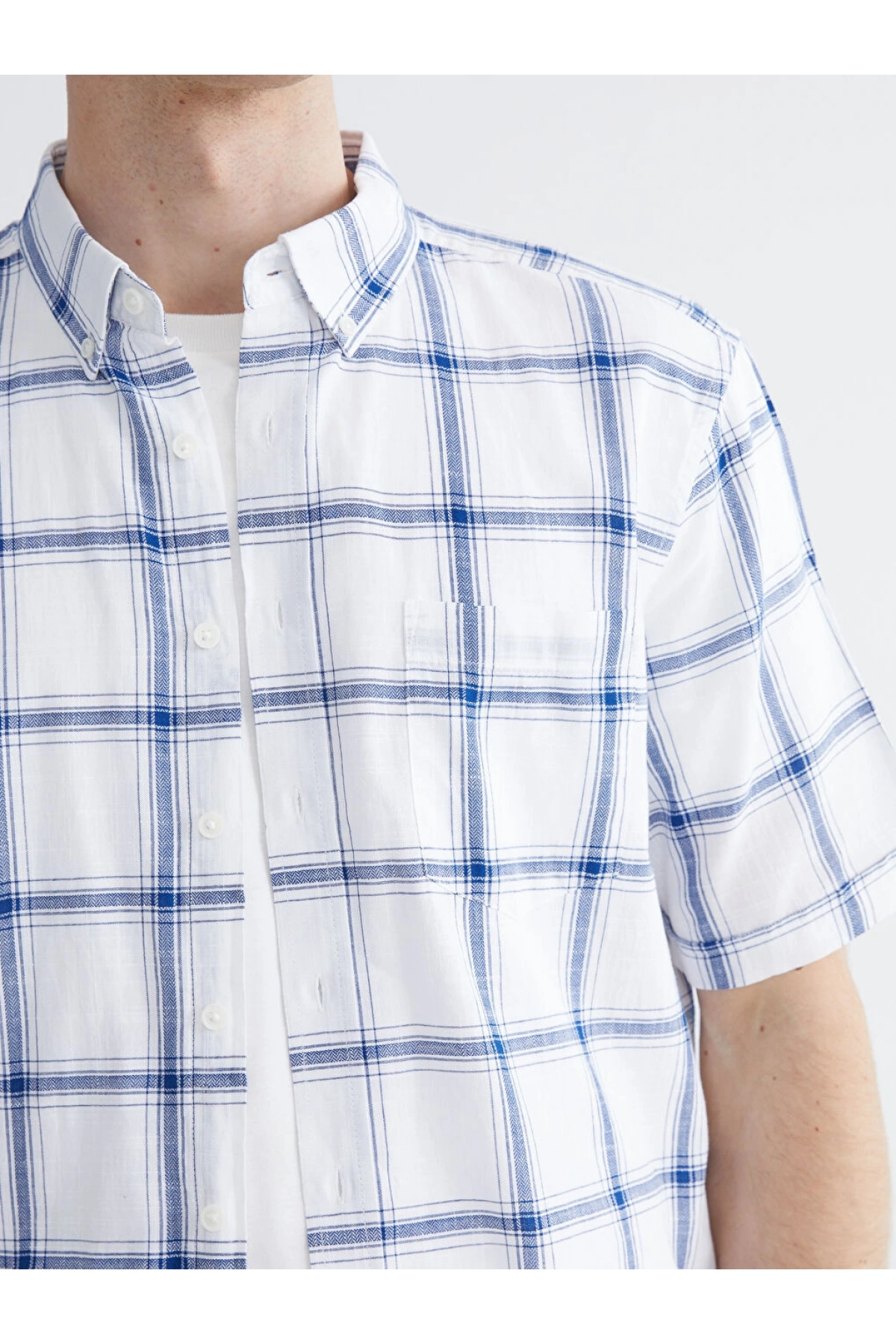LCWAIKIKI Classic Beyaz Regular Fit Kareli Erkek Gömlek