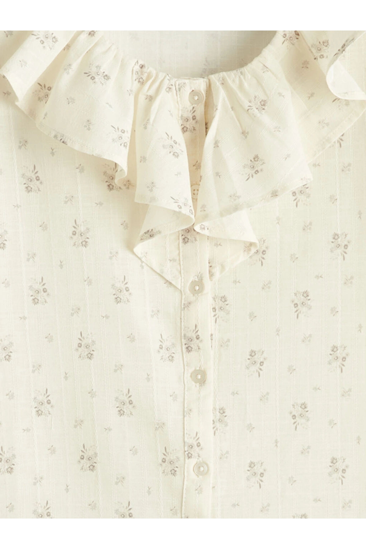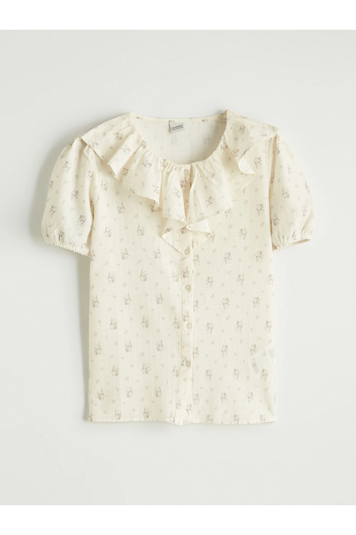 LCW Kids Bej Fırfırlı Yaka Çiçek Baskılı Kız Çocuk Gömlek