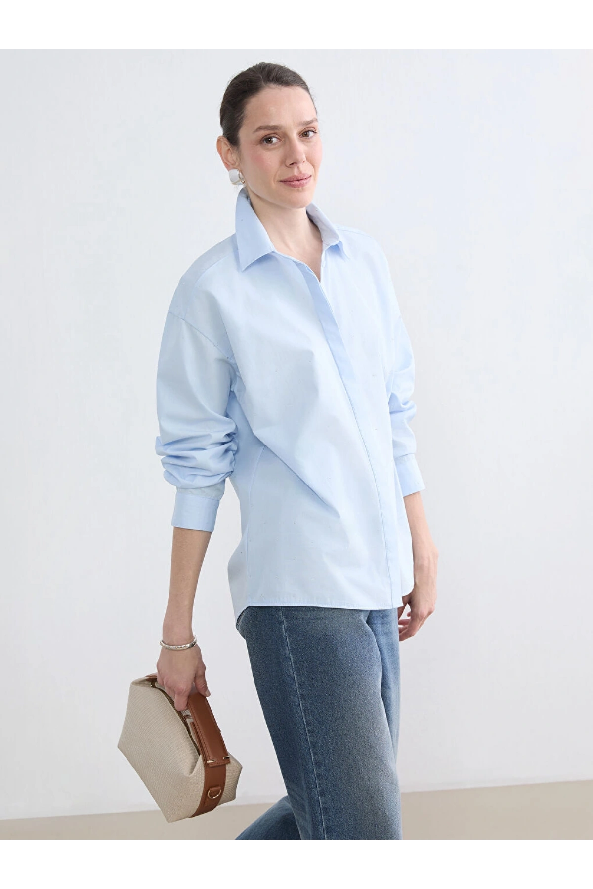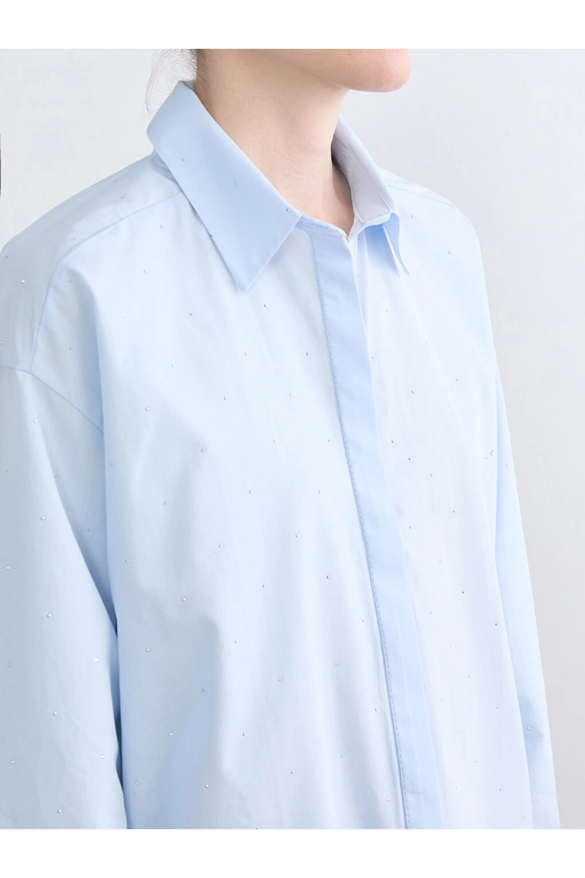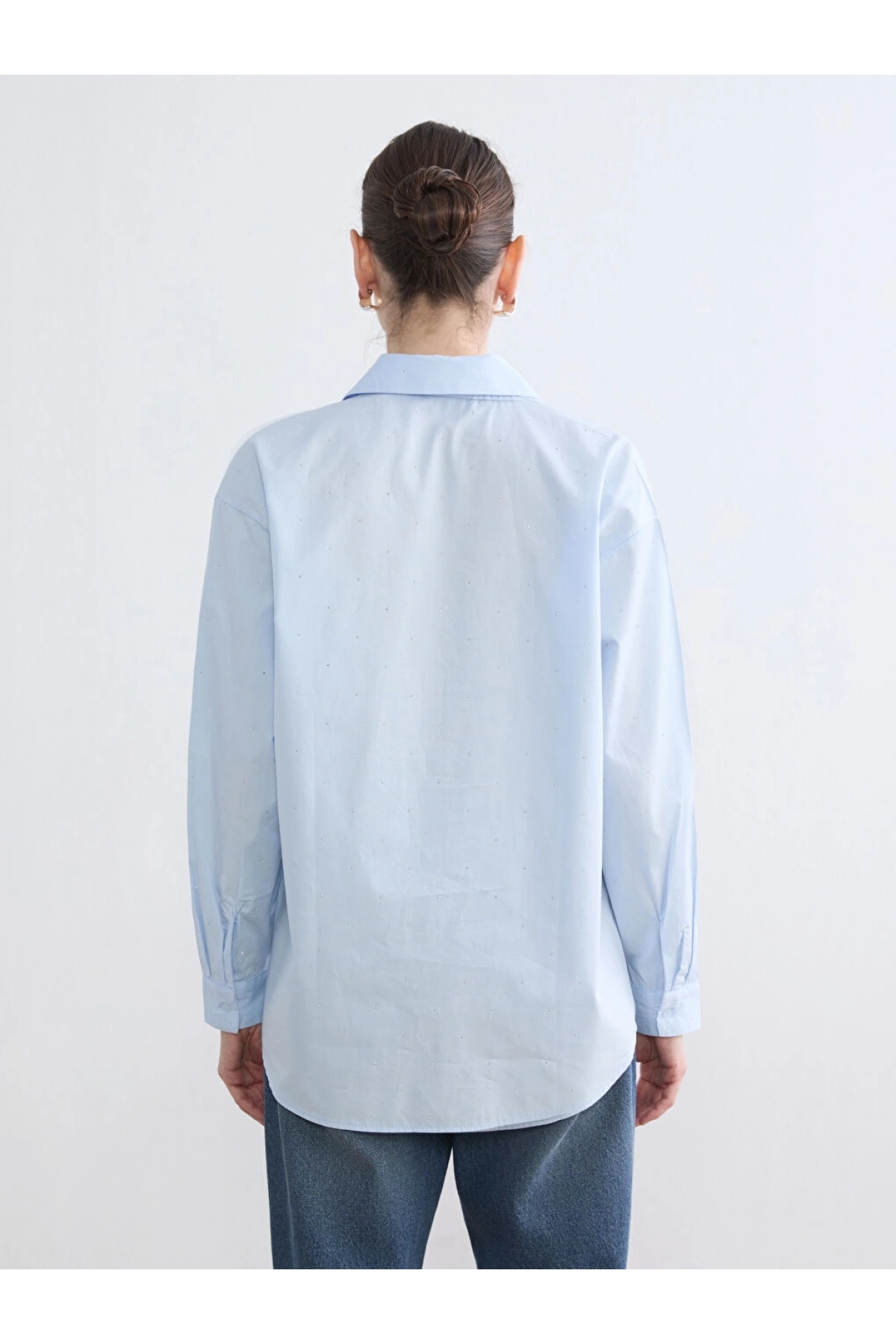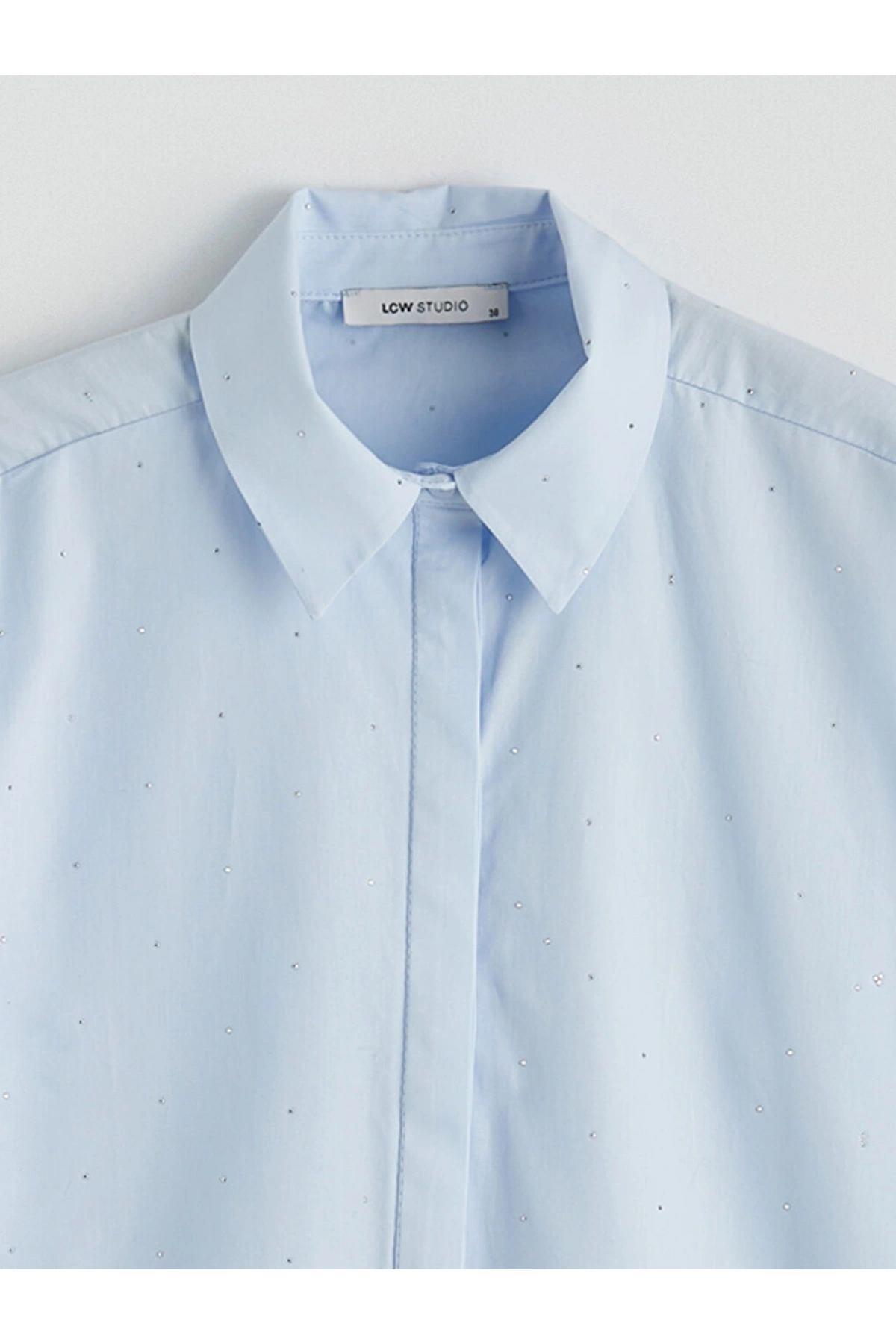 LCWAIKIKI Classic Mavi Taşlı Kadın Gömlek