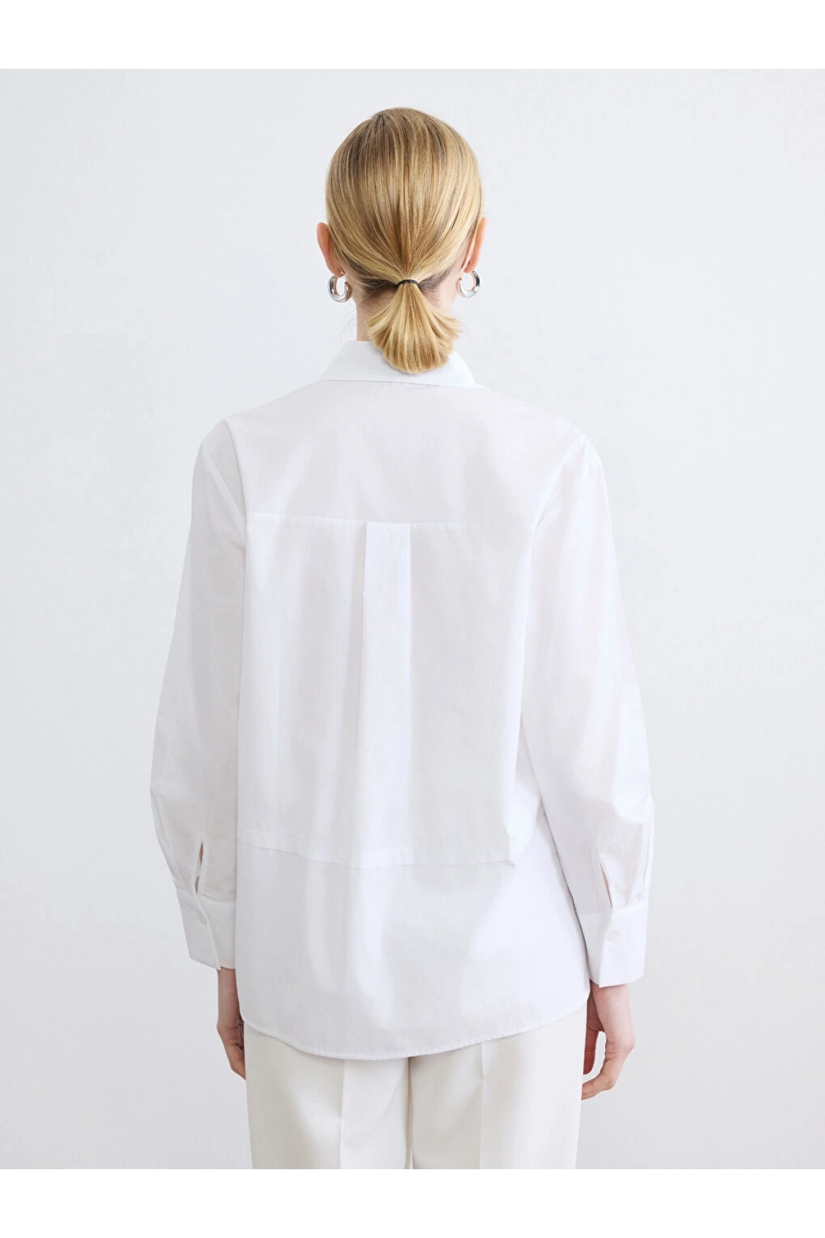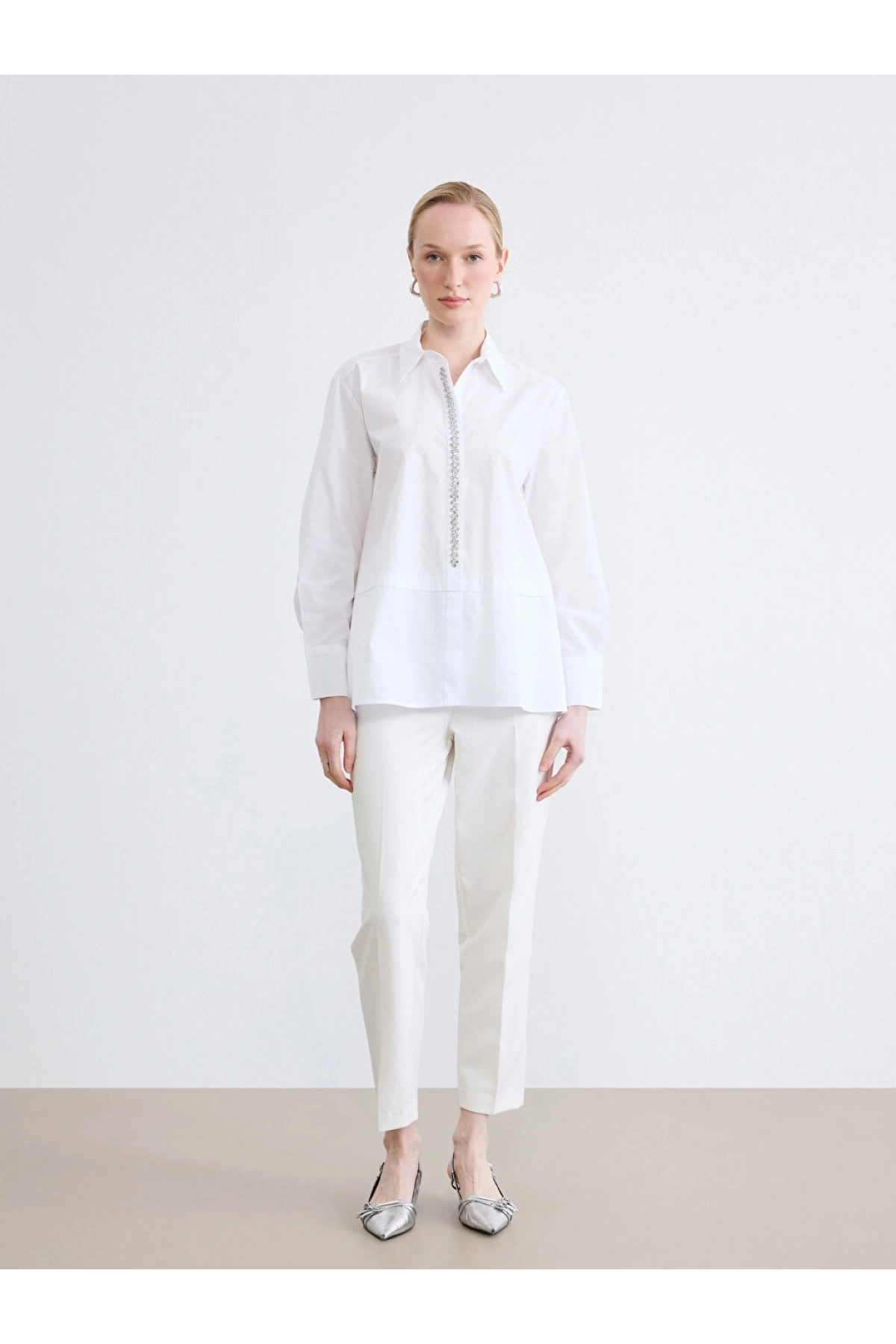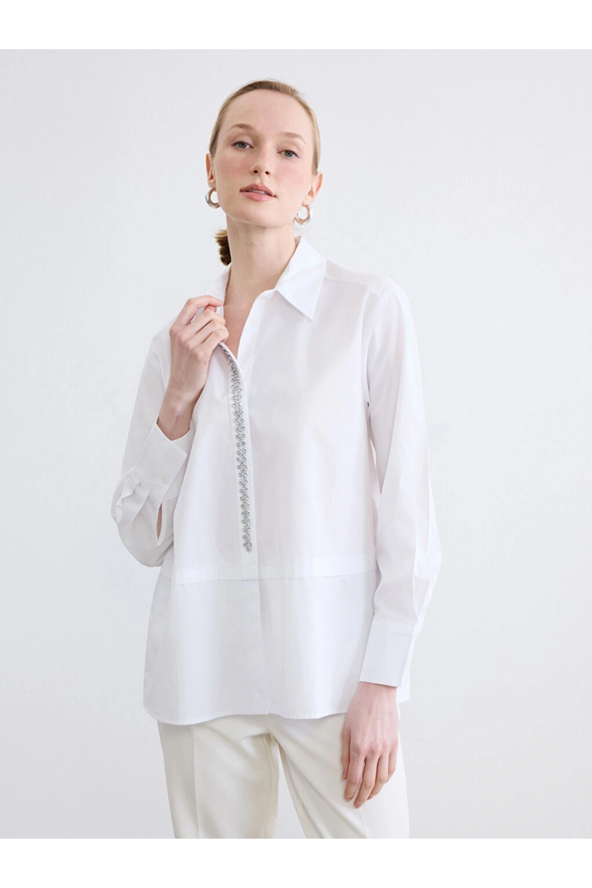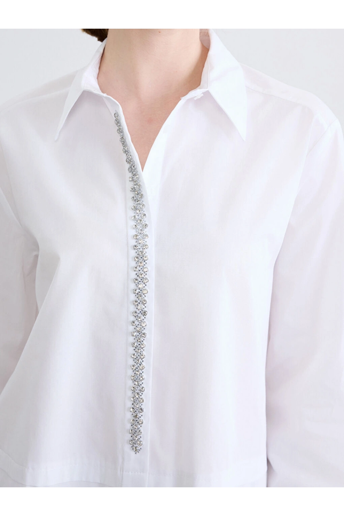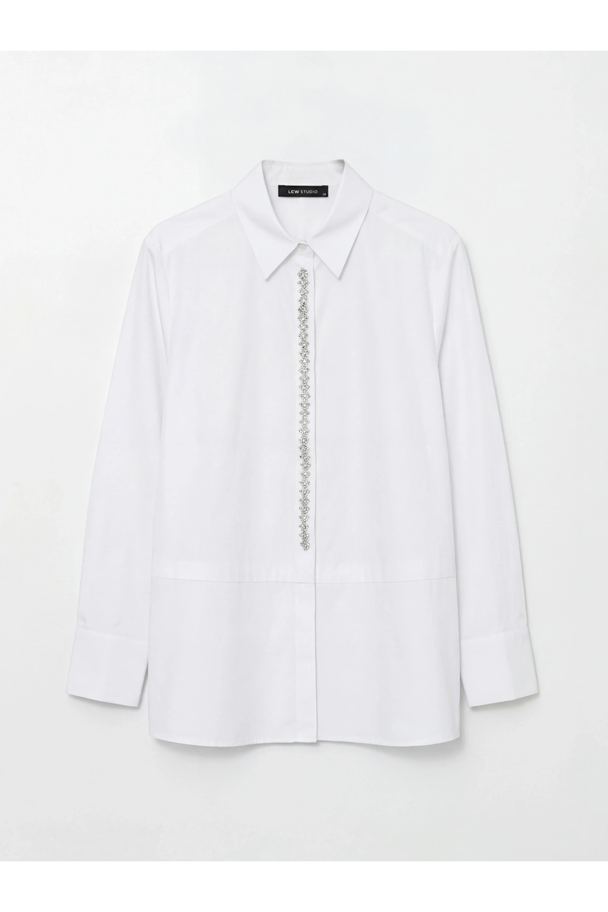 LCWAIKIKI Classic Beyaz Taşlı Oversize Poplin Kadın Gömlek