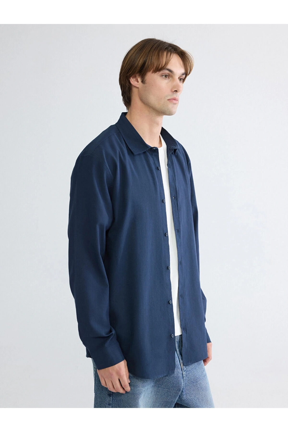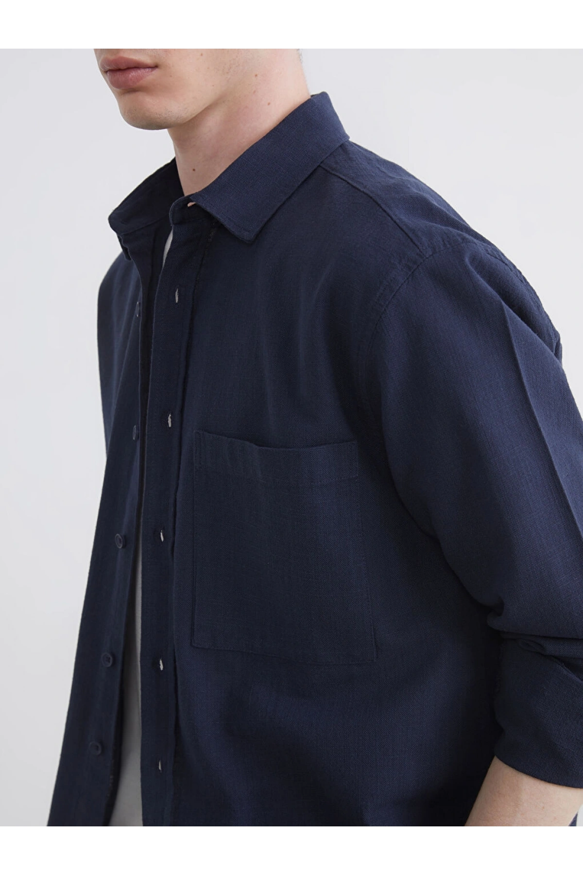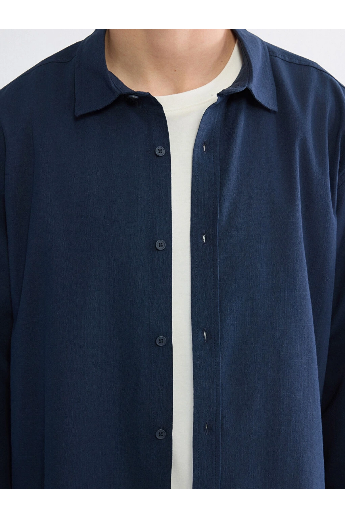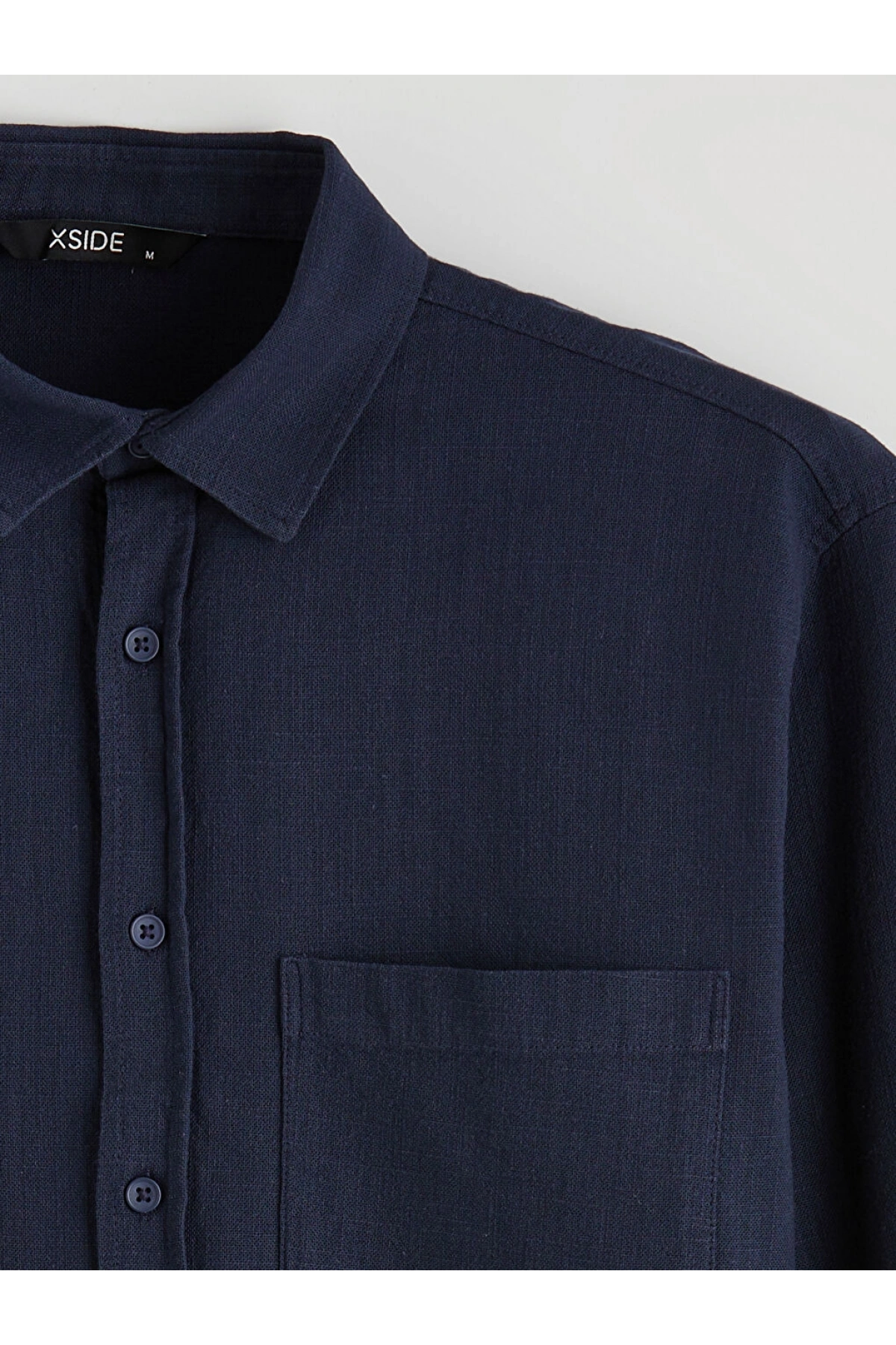 XSIDE Lacivert Regular Fit Erkek Keten Görünümlü Gömlek