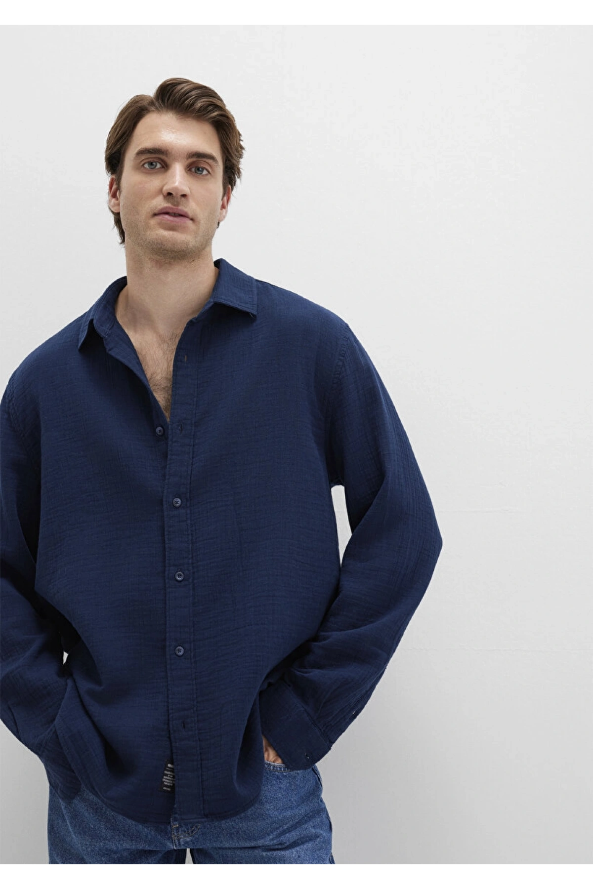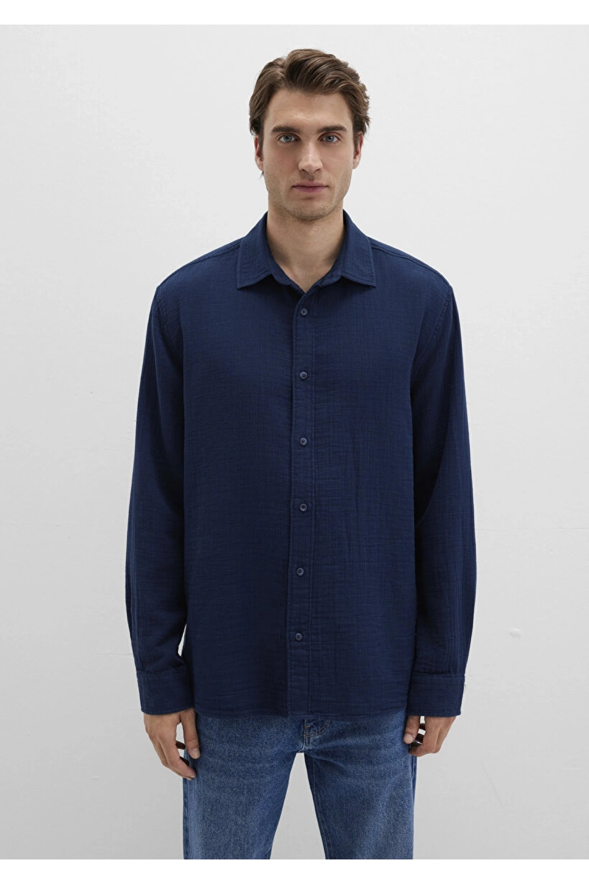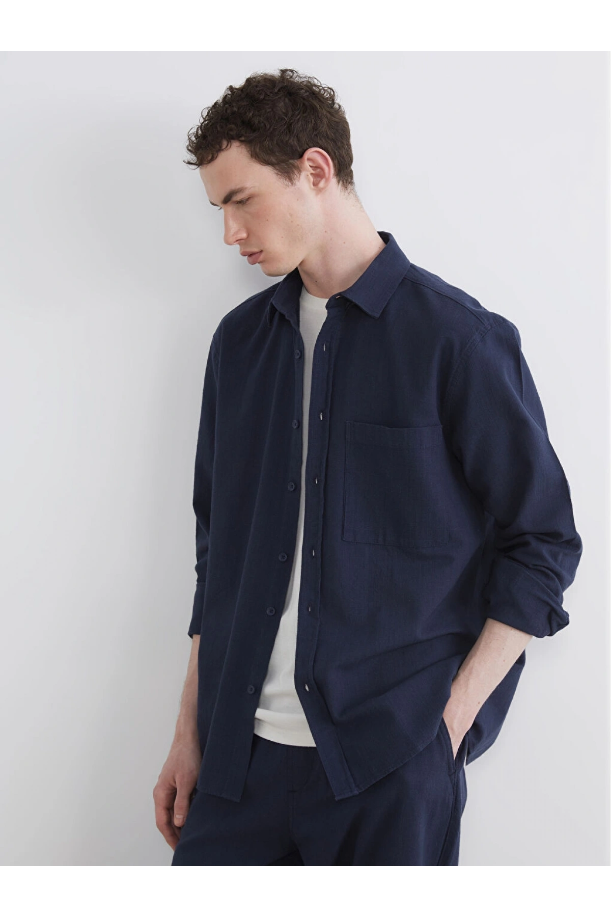 XSIDE Lacivert Regular Fit Erkek Keten Görünümlü Gömlek