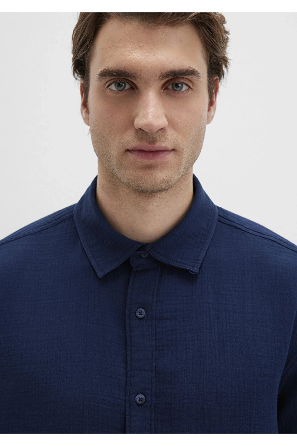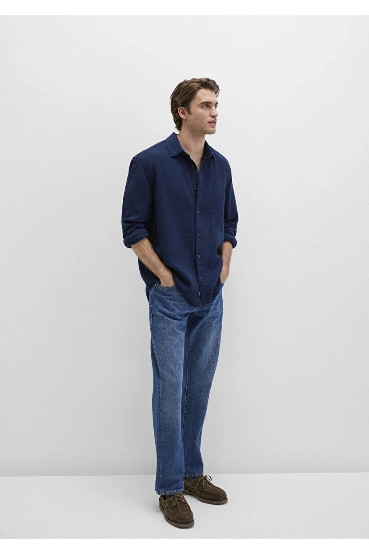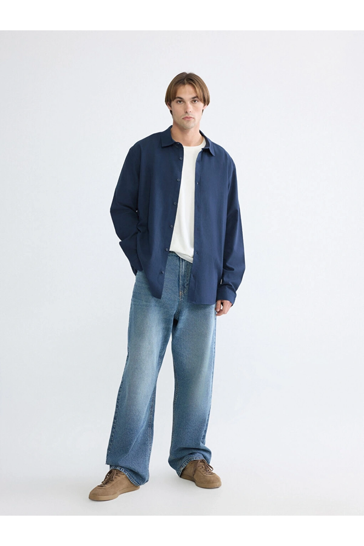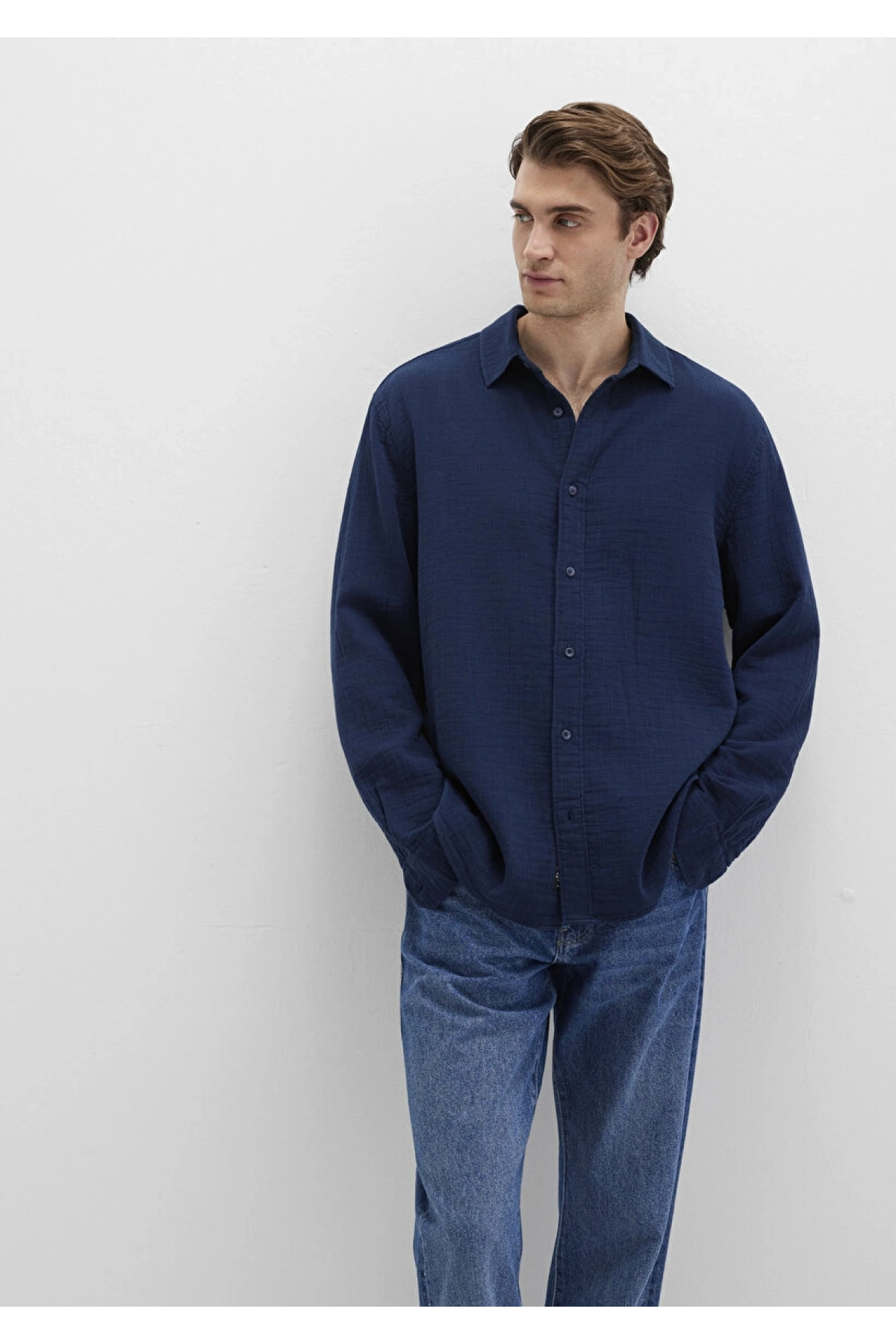 XSIDE Lacivert Regular Fit Erkek Keten Görünümlü Gömlek
