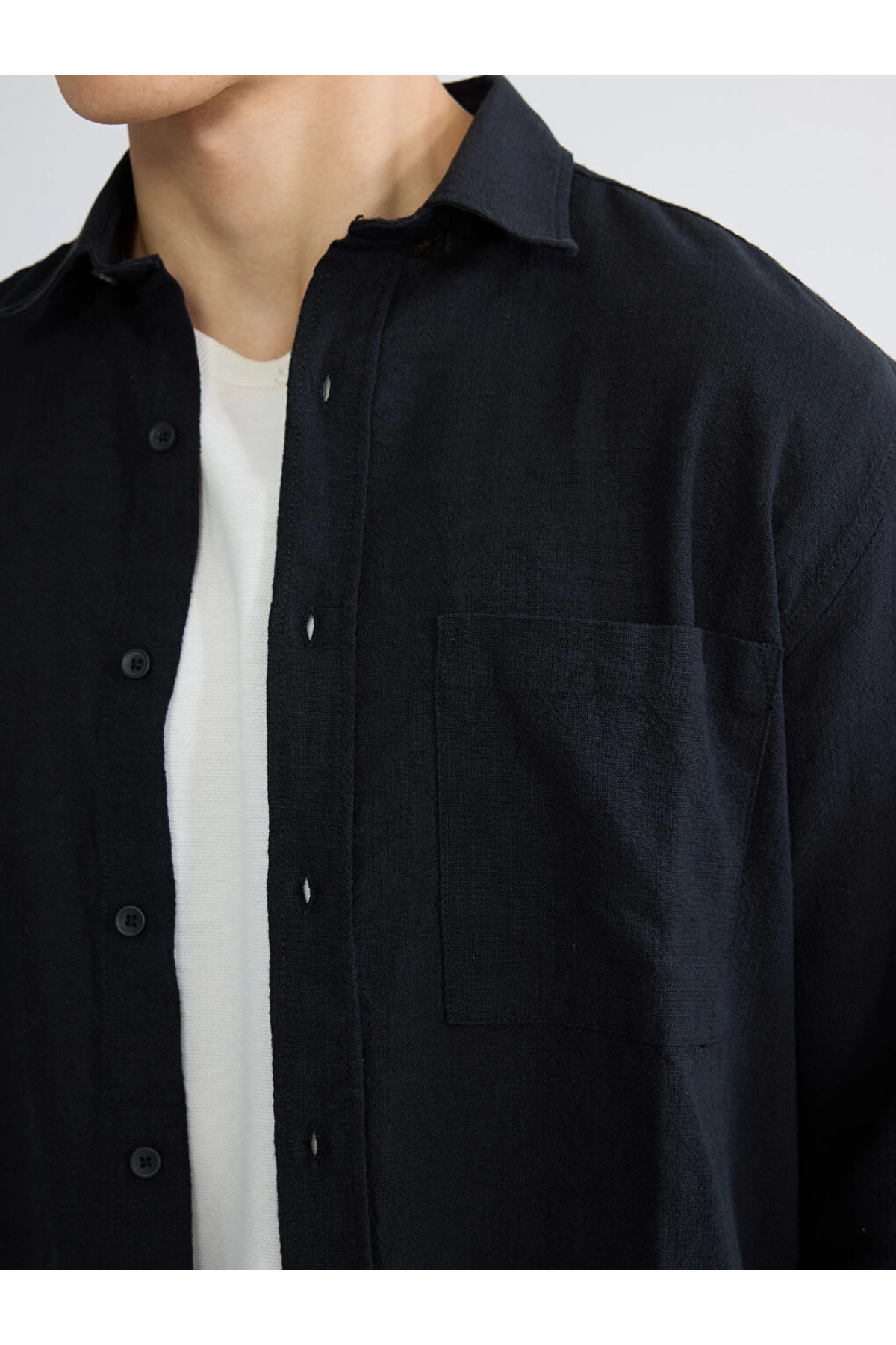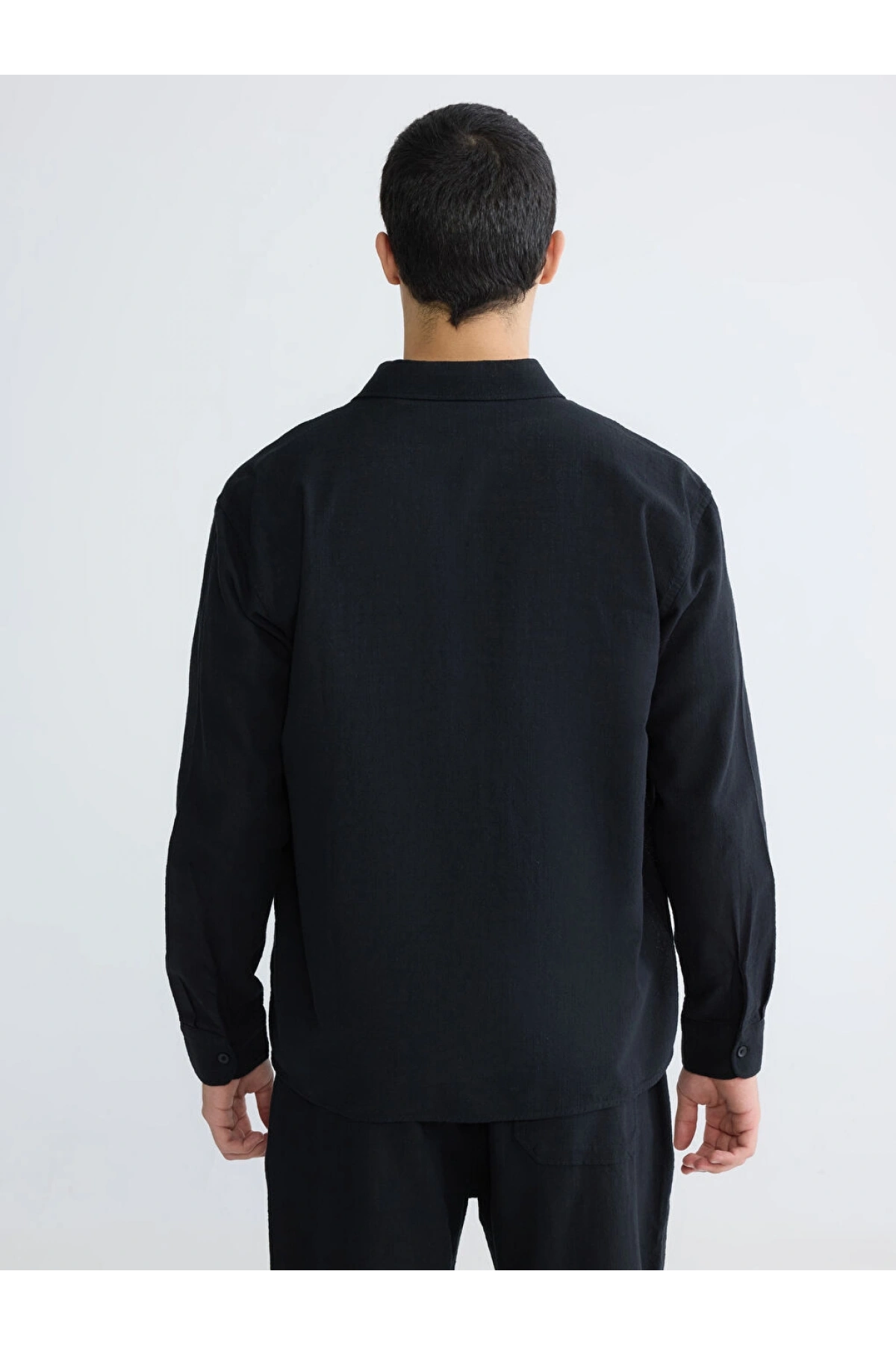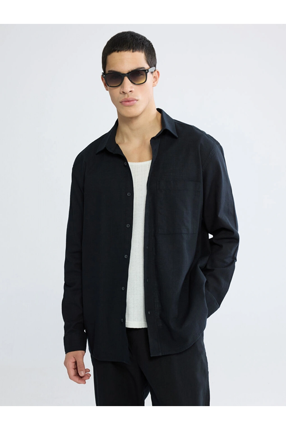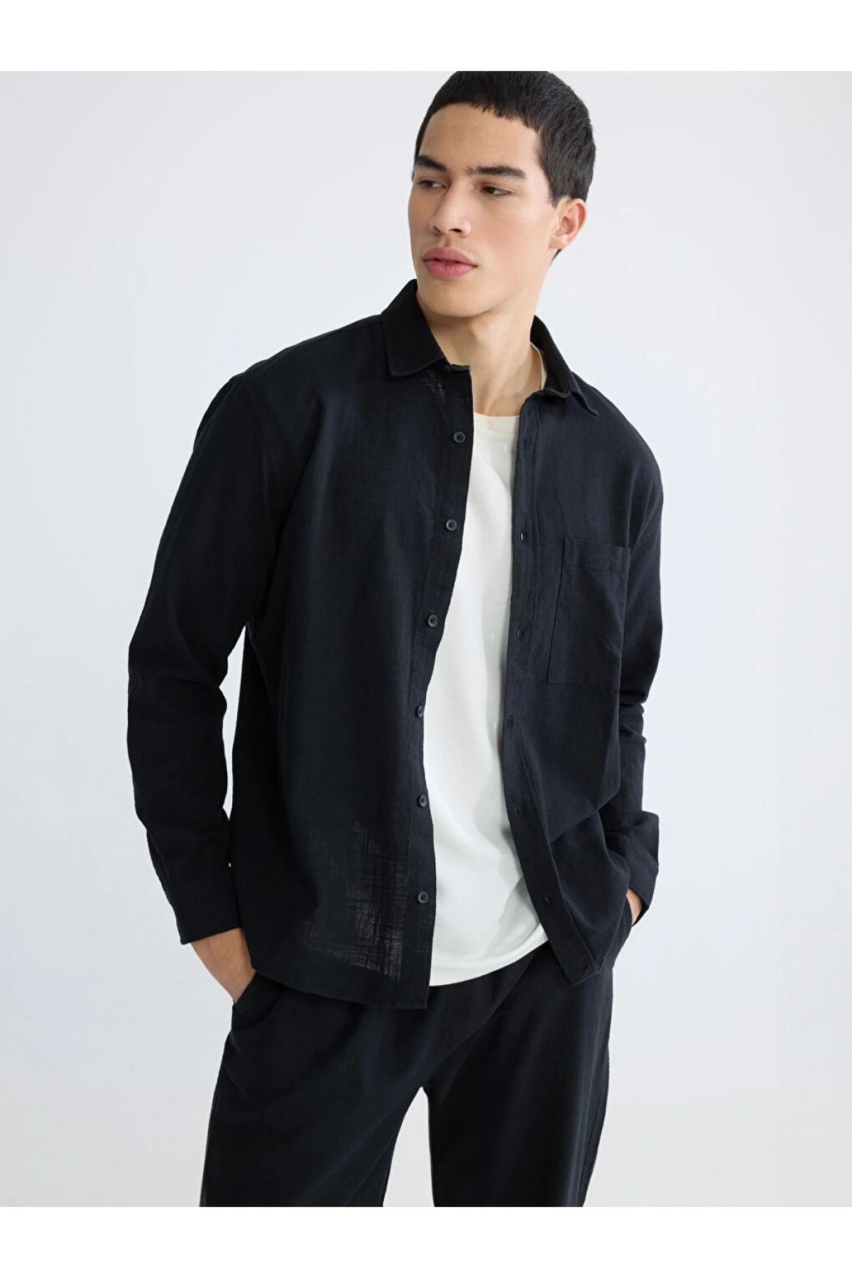 XSIDE Siyah Regular Fit Erkek Keten Görünümlü Gömlek