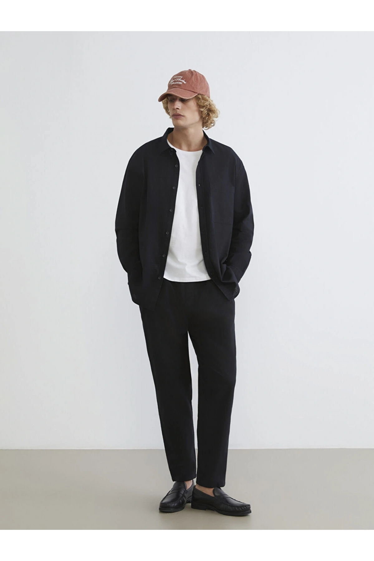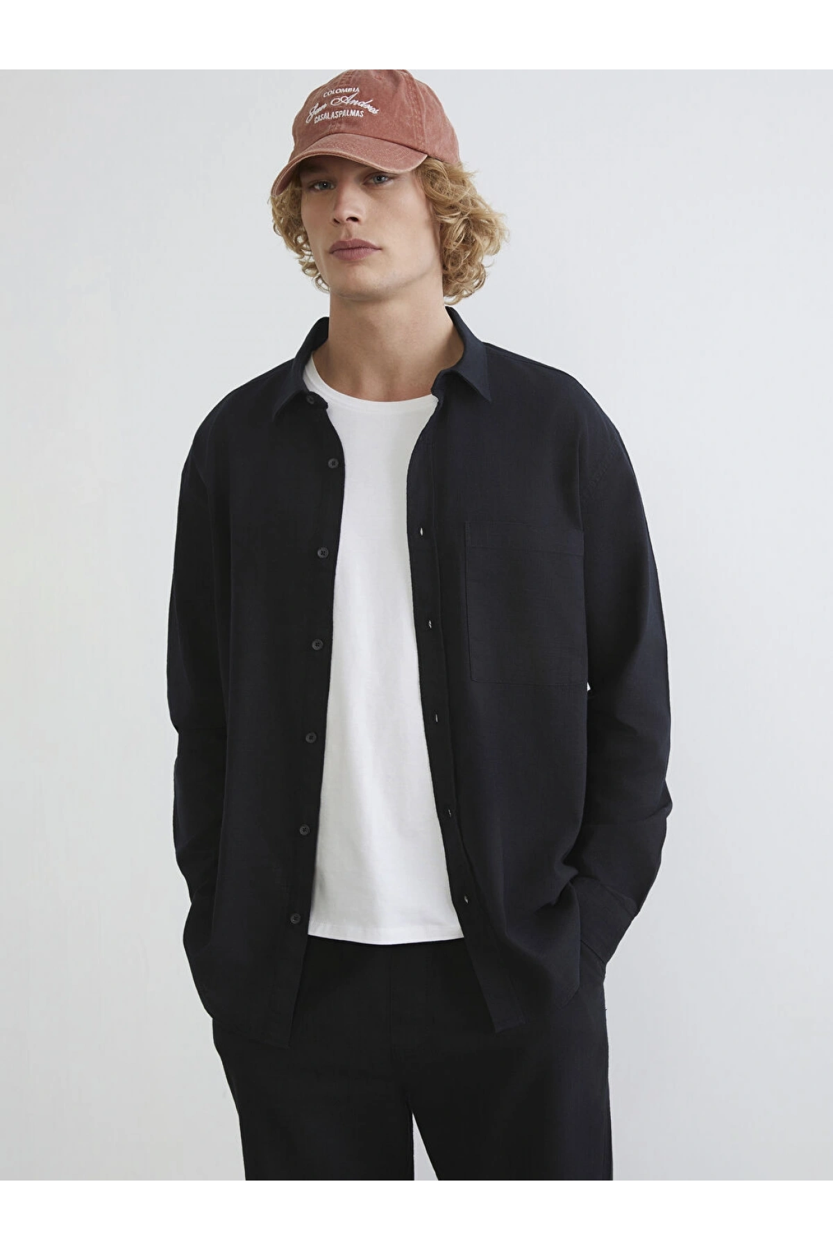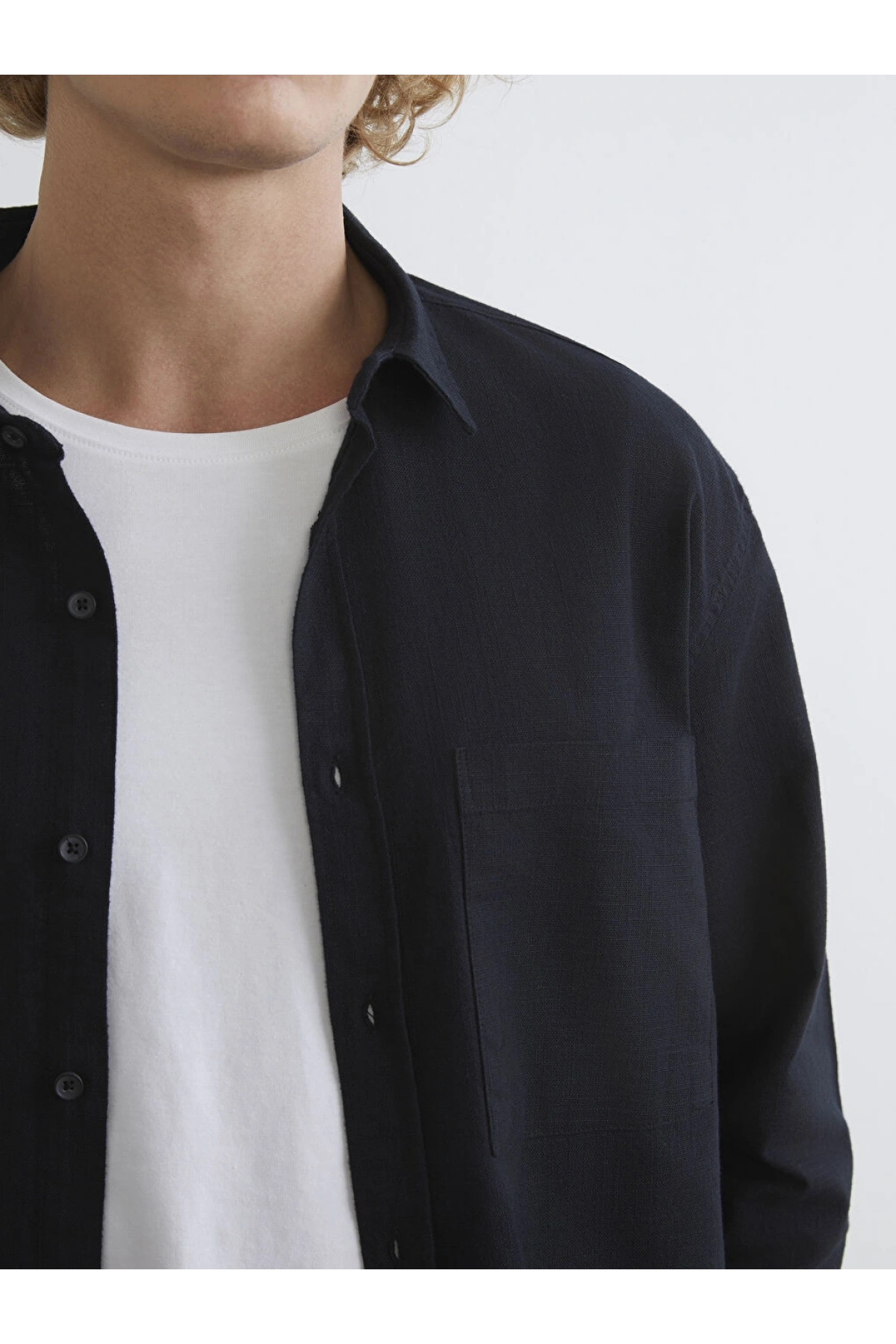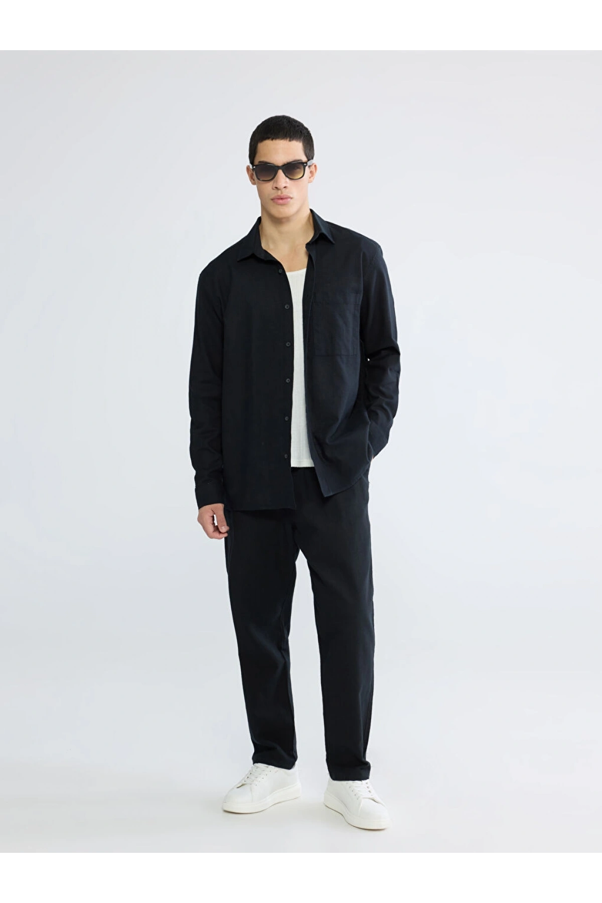 XSIDE Siyah Regular Fit Erkek Keten Görünümlü Gömlek