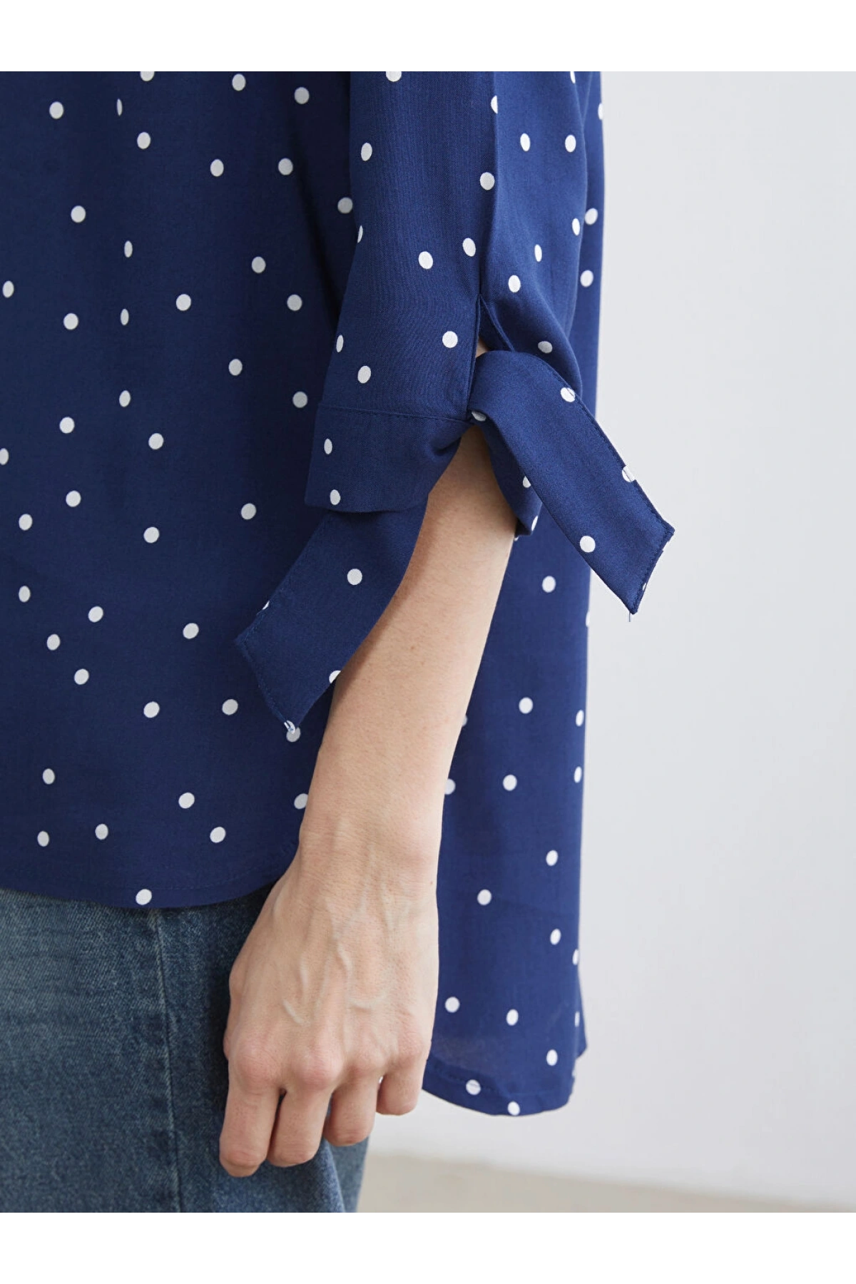 LCW Grace Lacivert Kaçık Yaka Puantiyeli Bluz
