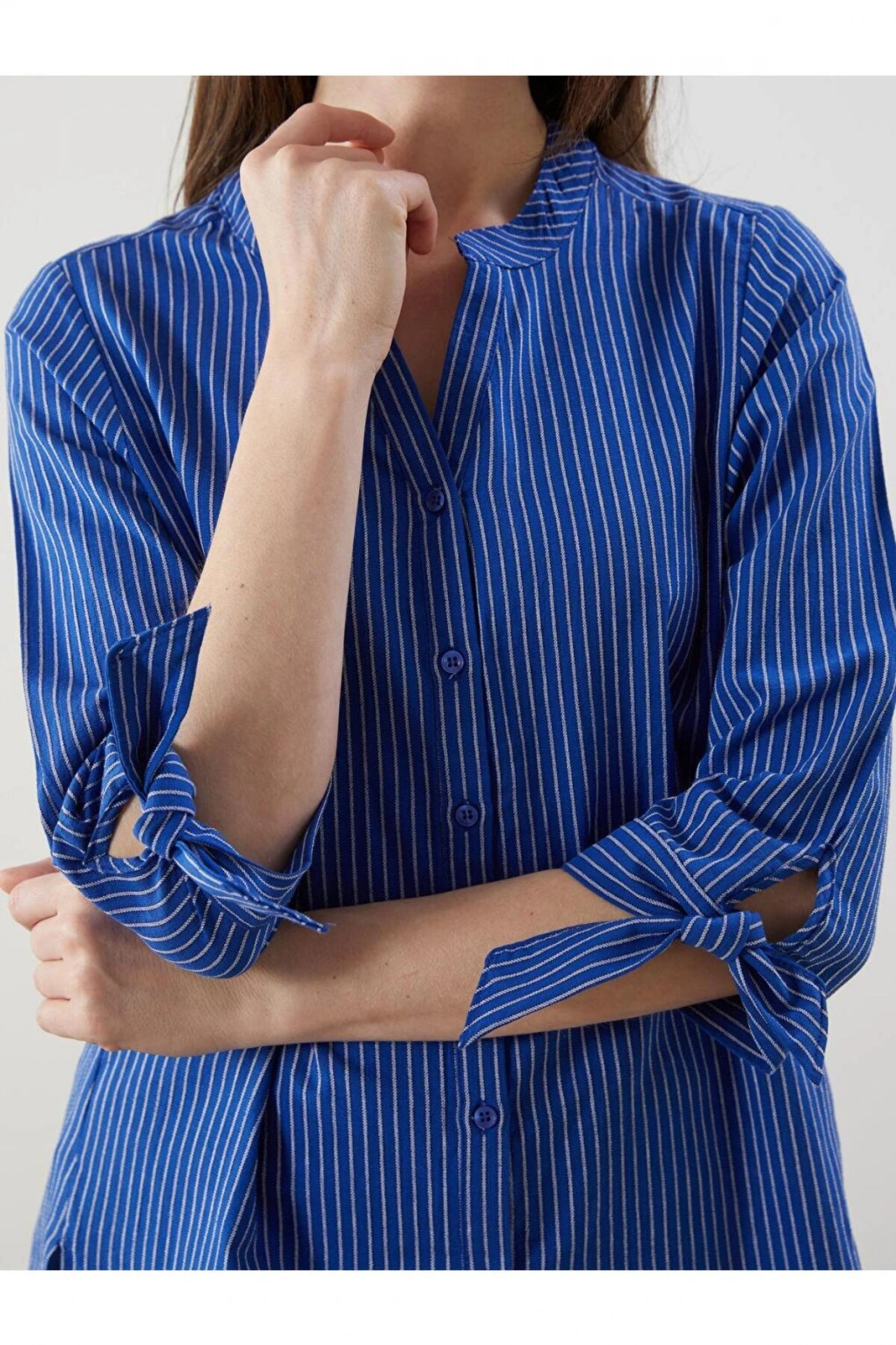Natuvera Beyaz Hakim Yaka Çizgili Kadın Gömlek