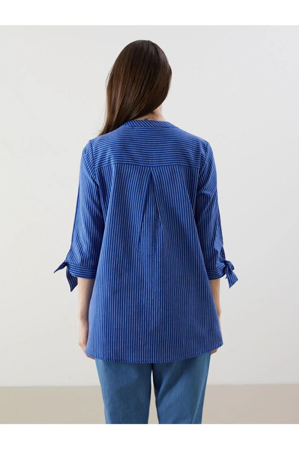 LCWAIKIKI Classic Indigo Çizgili Oversize Kadın Gömlek