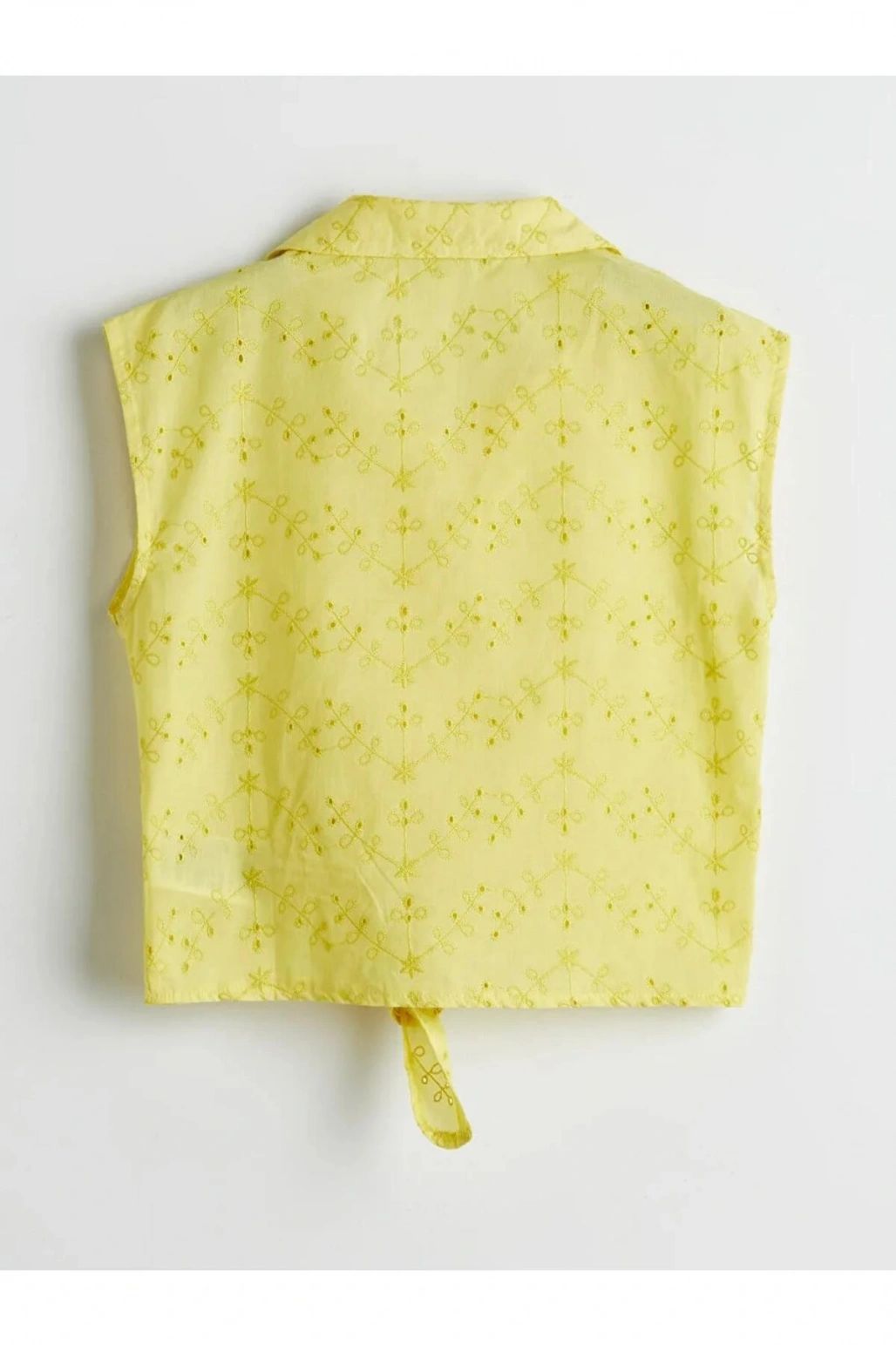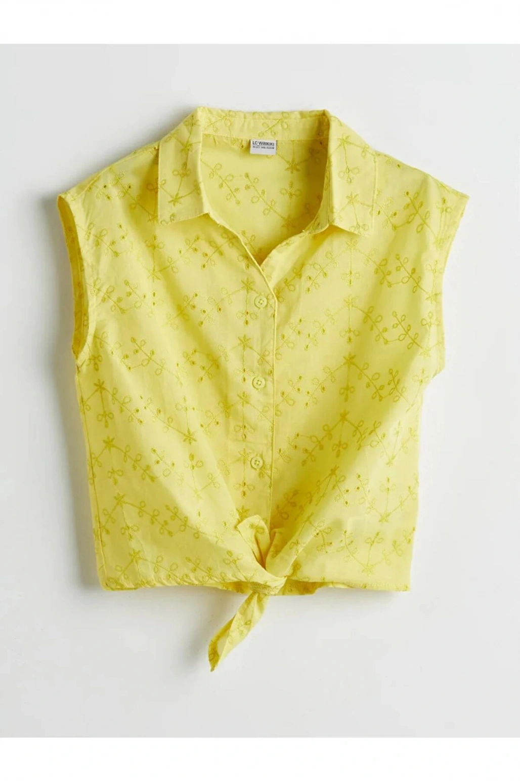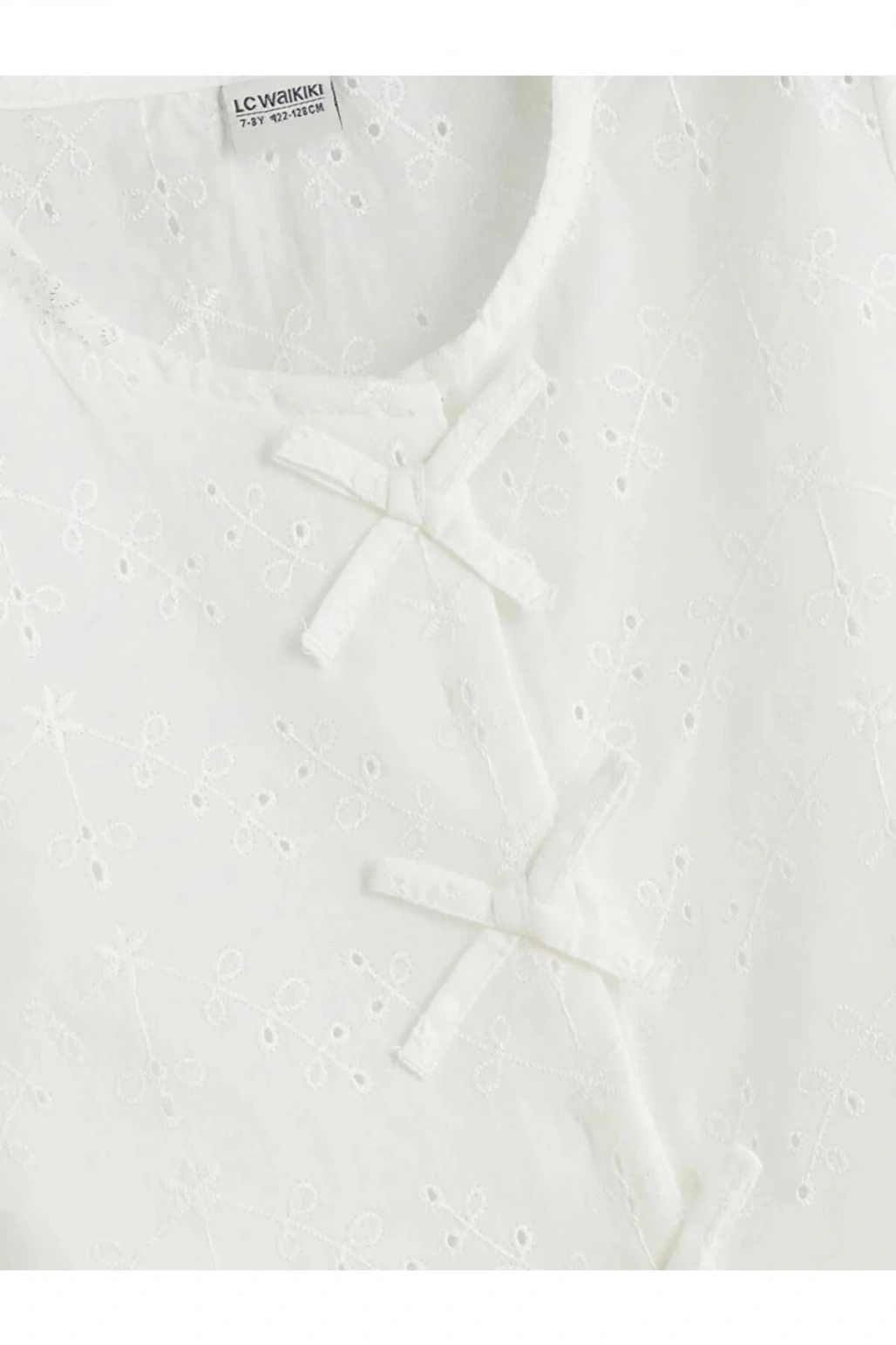 LCW Kids Beyaz Bisiklet Yaka Fiyonk Detaylı Kız Çocuk Gömlek