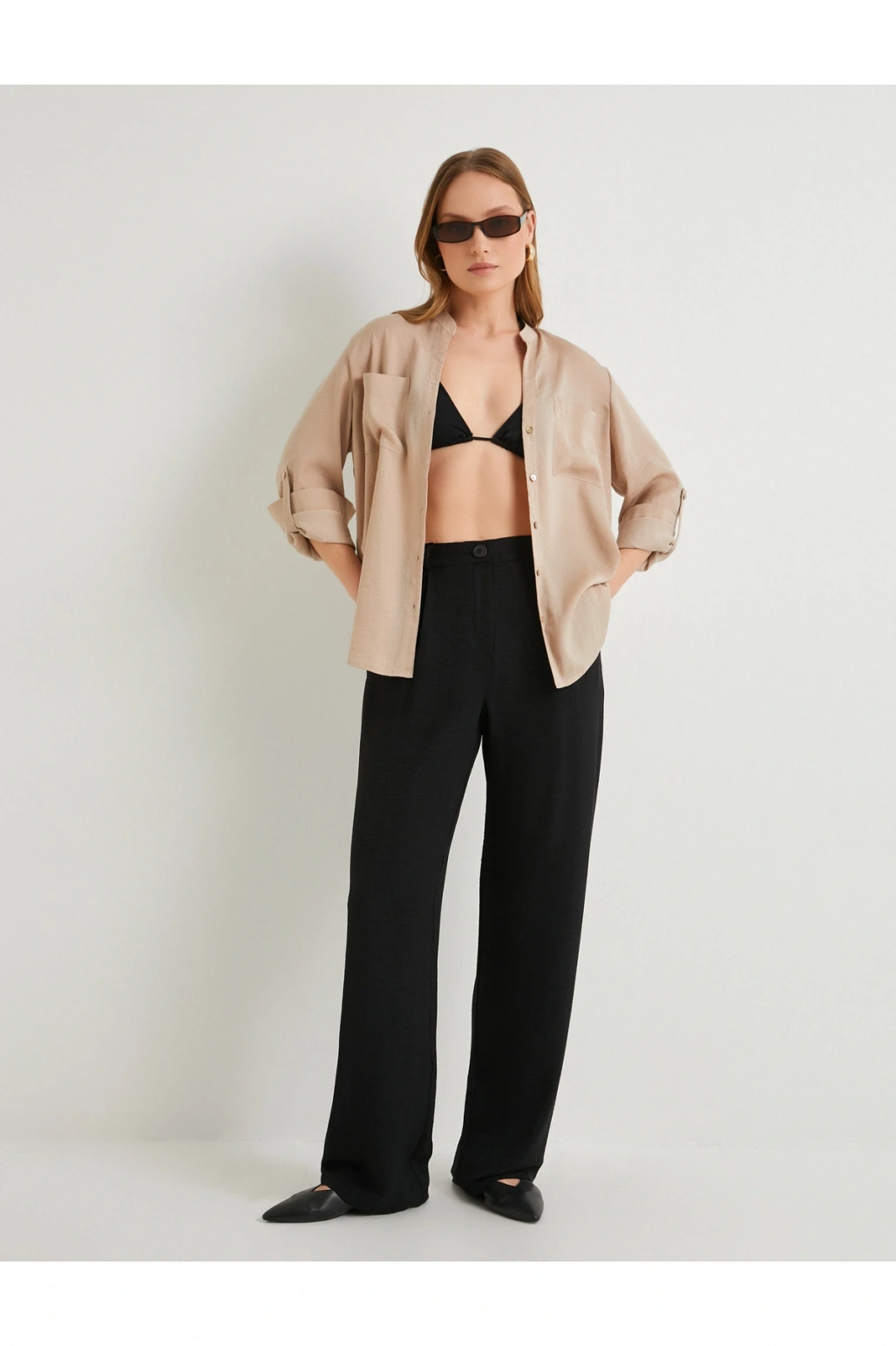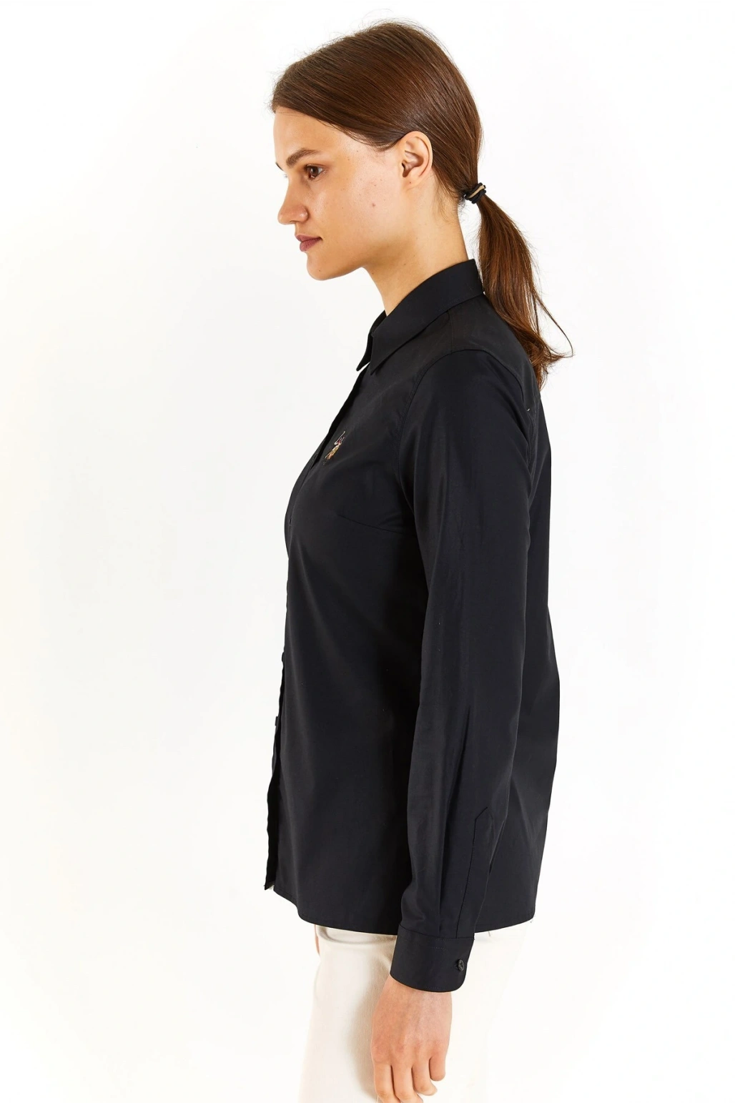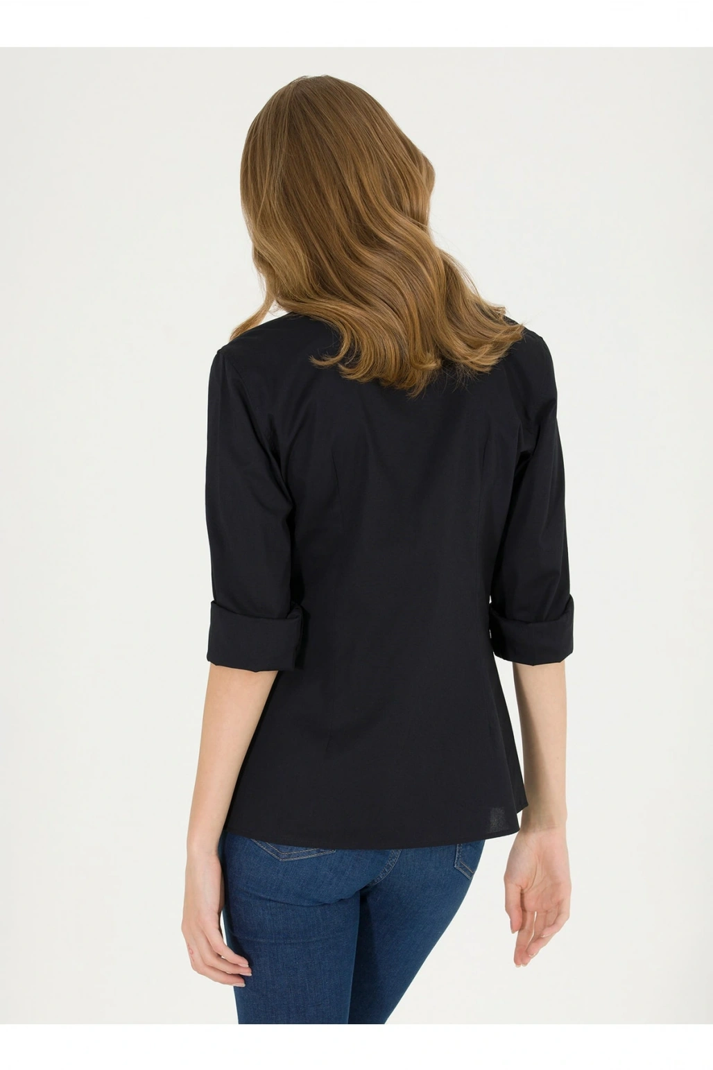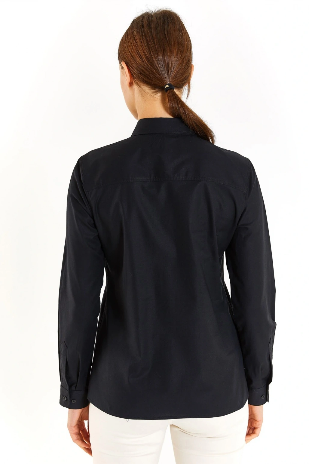 Gömlek Yaka Düz Siyah Kadın Gömlek Wox022k