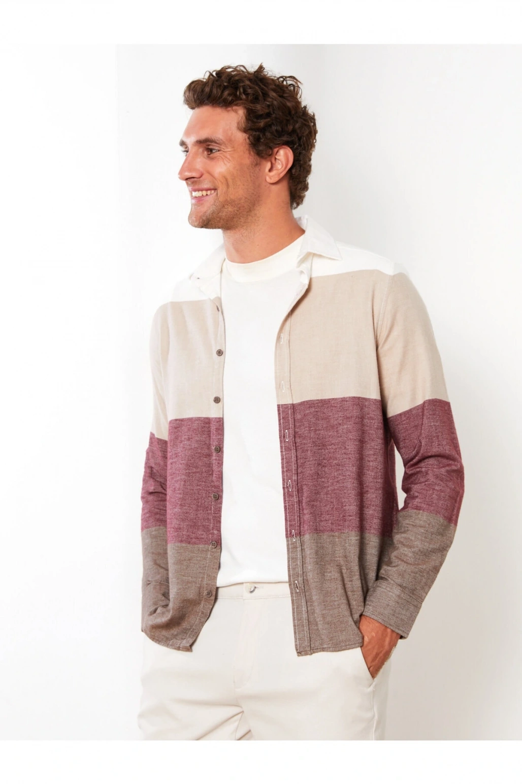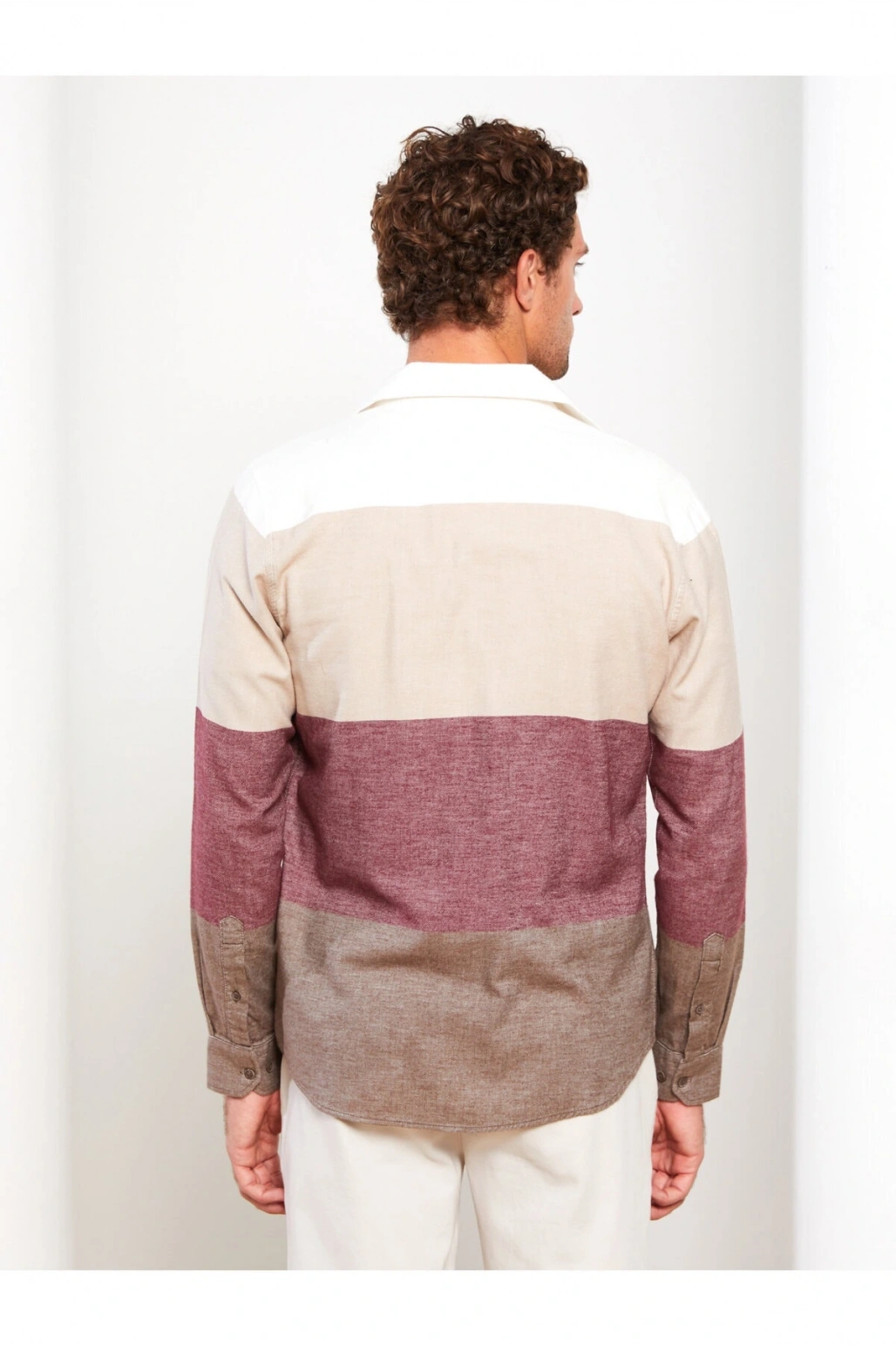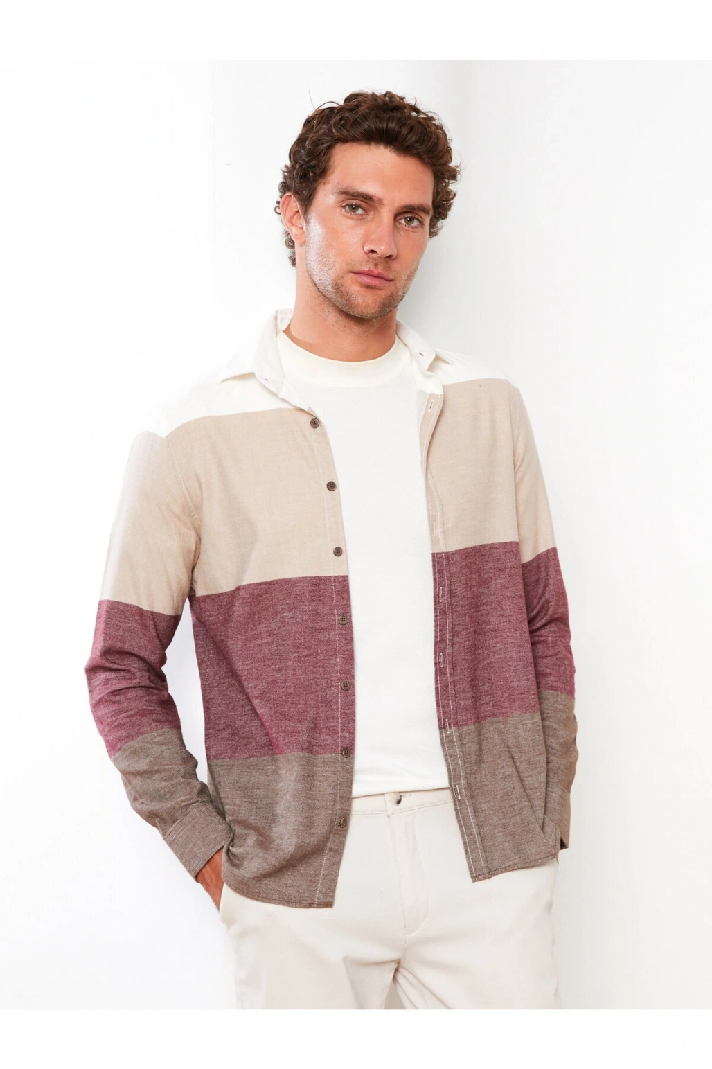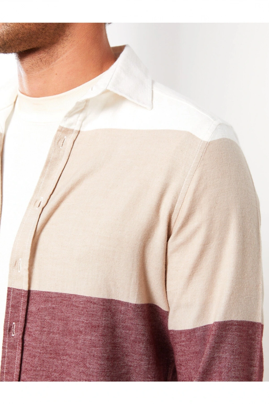 Slim Fit Uzun Kollu Renk Bloklu Erkek Gömlek