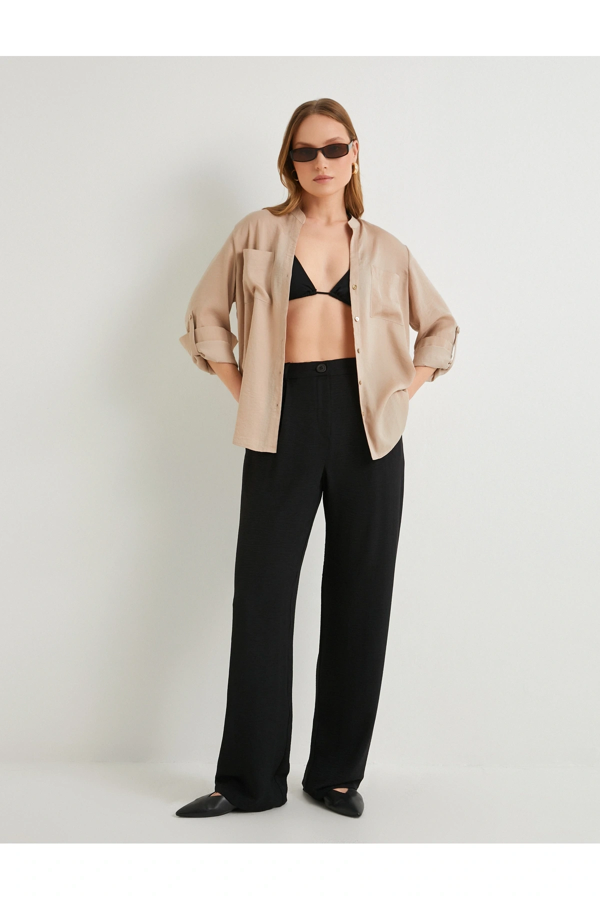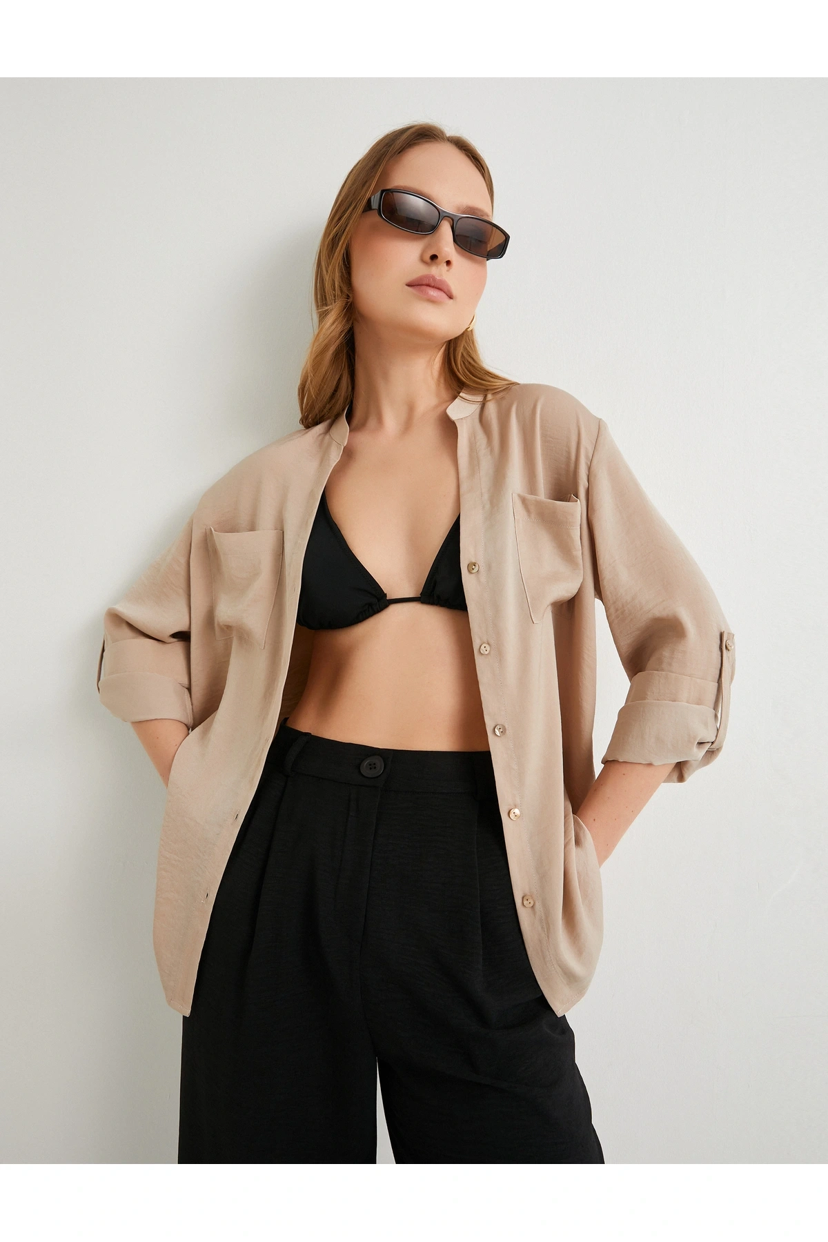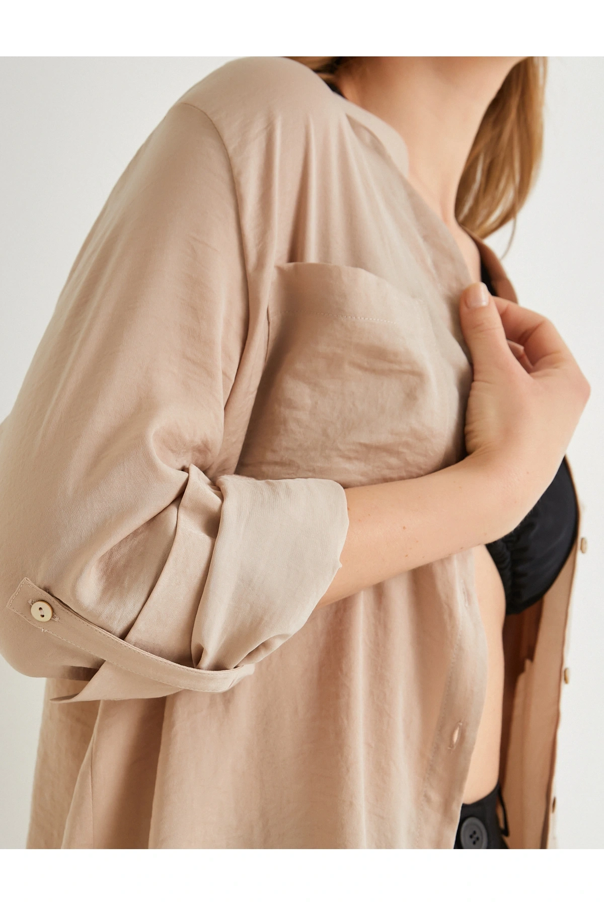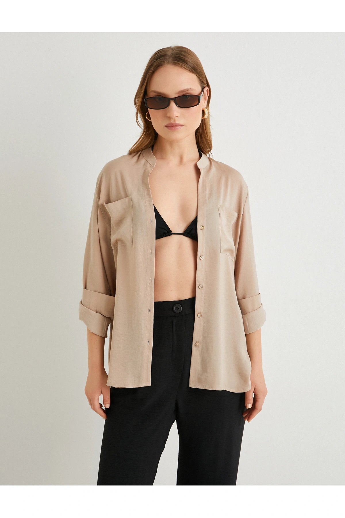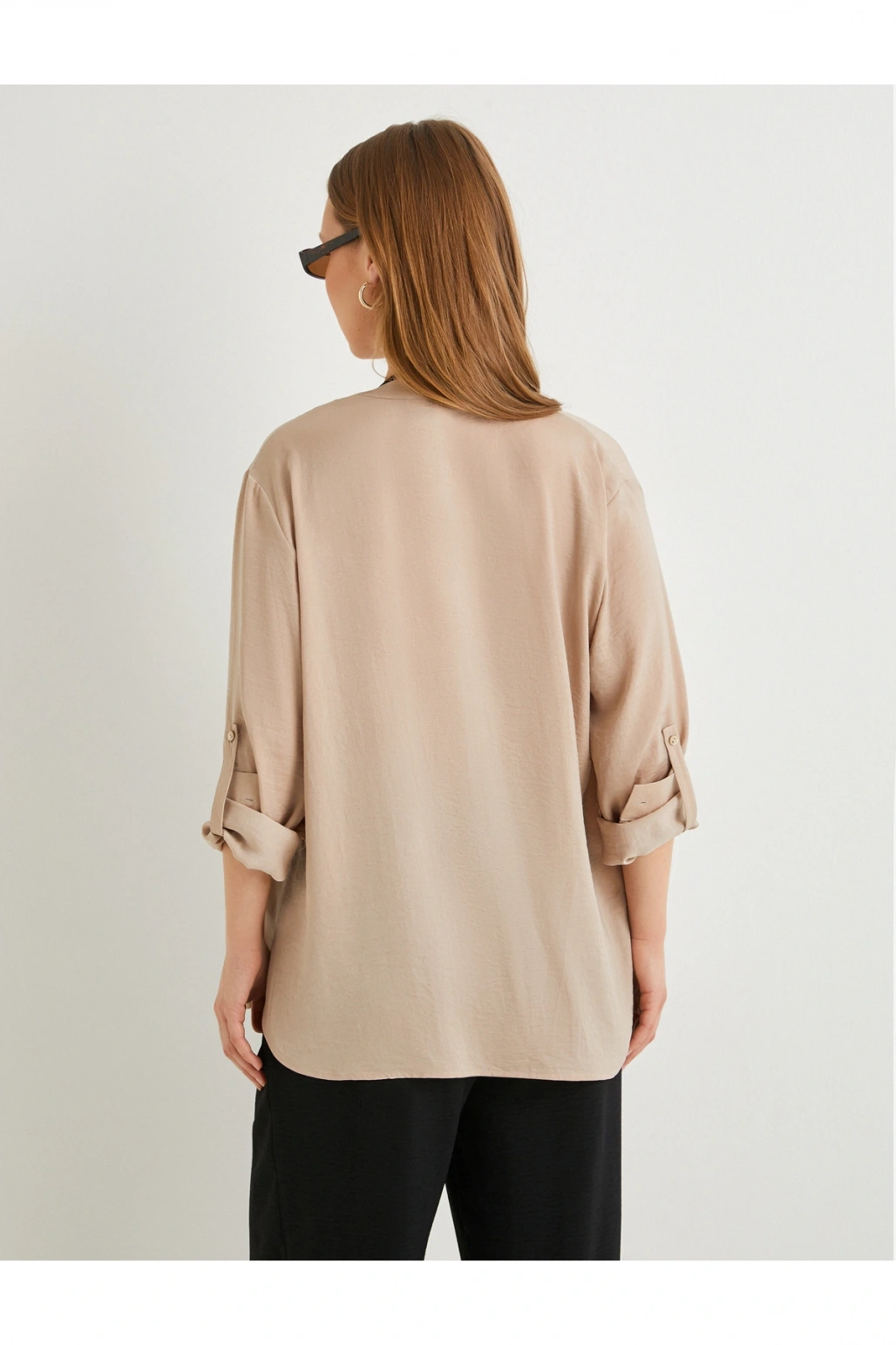 Hakim Yaka Gömlek Uzun Katlamalı Kol Cepli Düğmeli Regular Fit