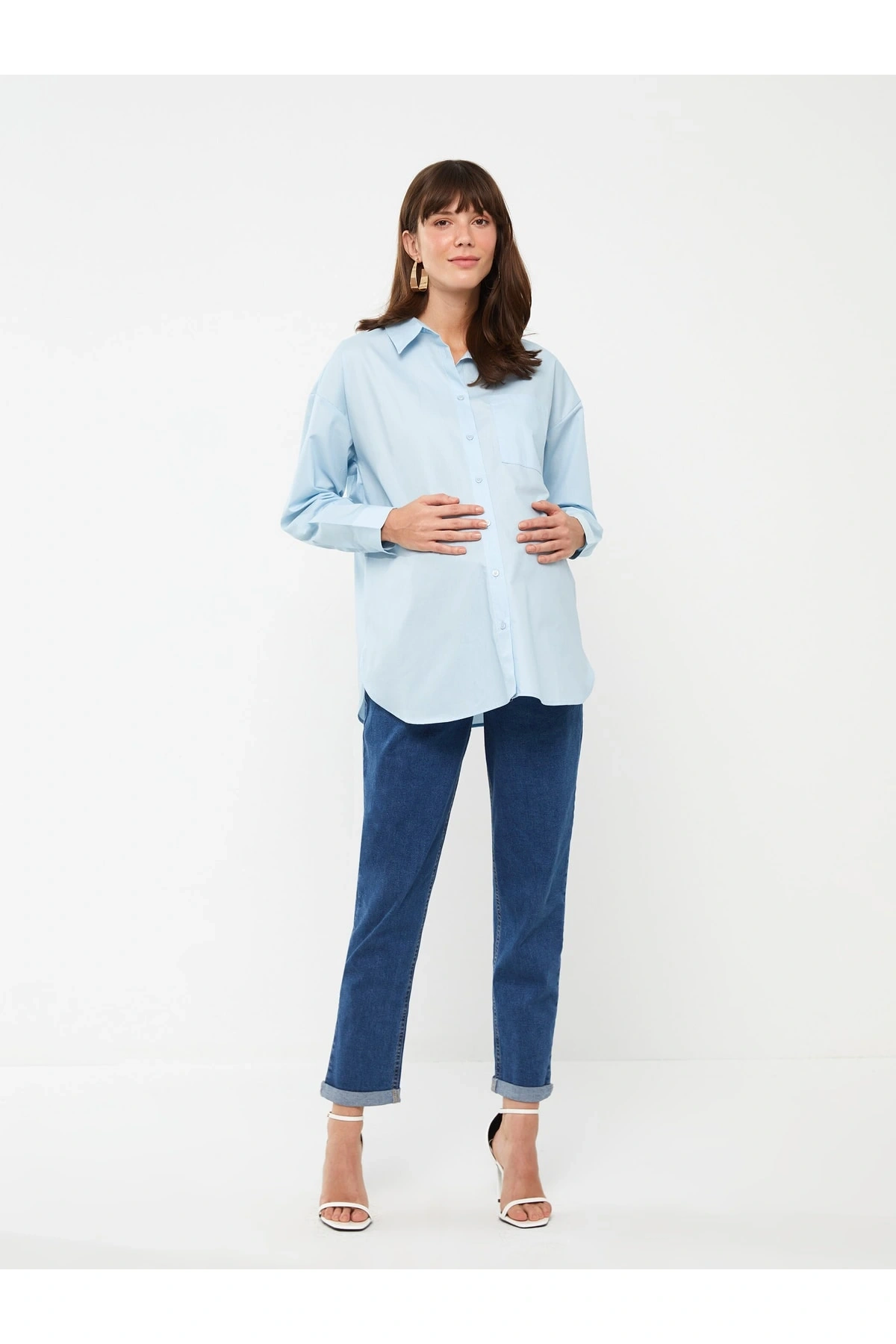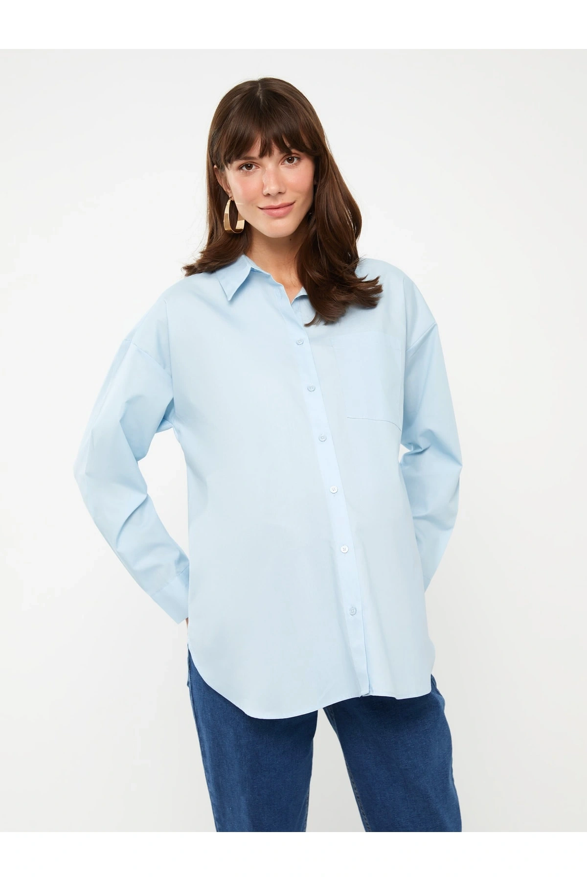Düz Uzun Kollu Poplin Hamile Gömlek