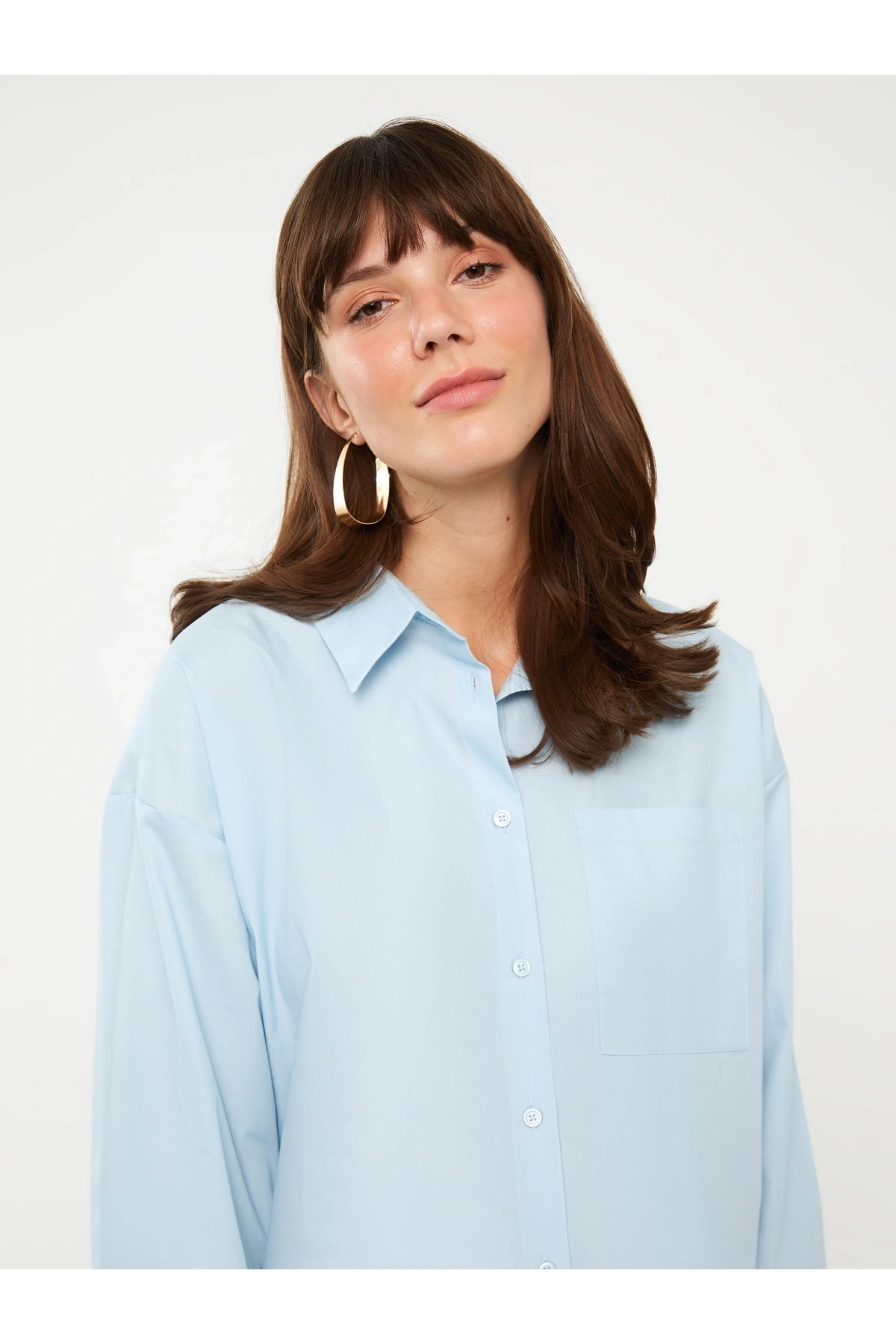 Düz Uzun Kollu Oversize Kadın Gömlek Tunik