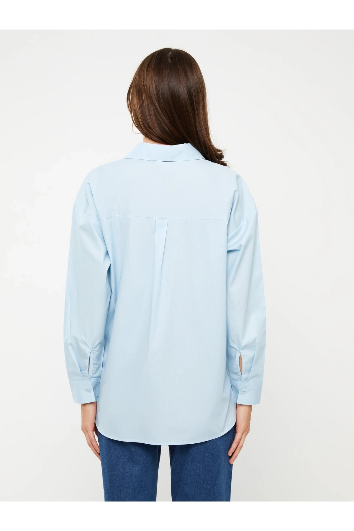 Düz Uzun Kollu Oversize Kadın Jean Gömlek