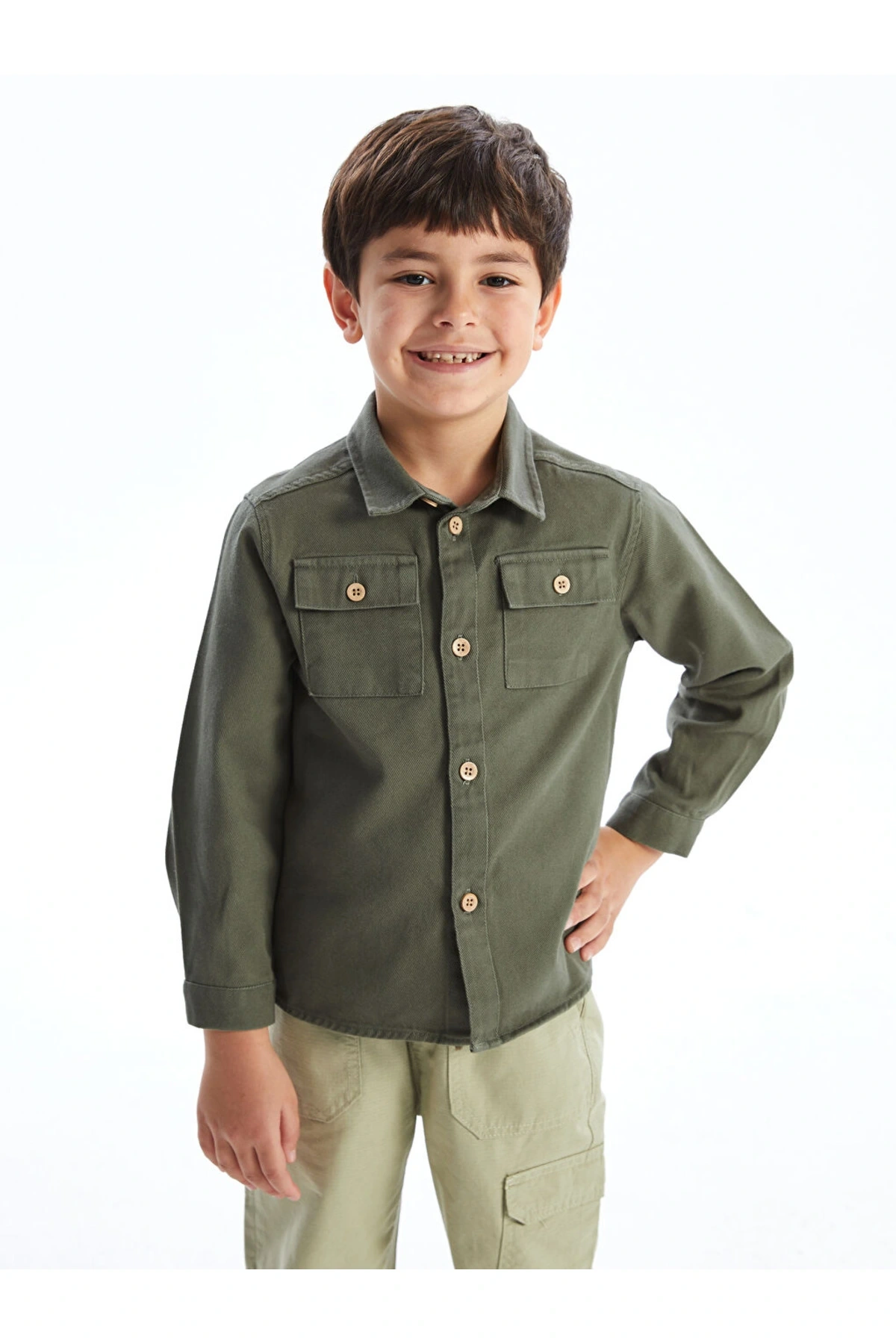 Haki Uzun Kollu Basic Erkek Çocuk Gömlek